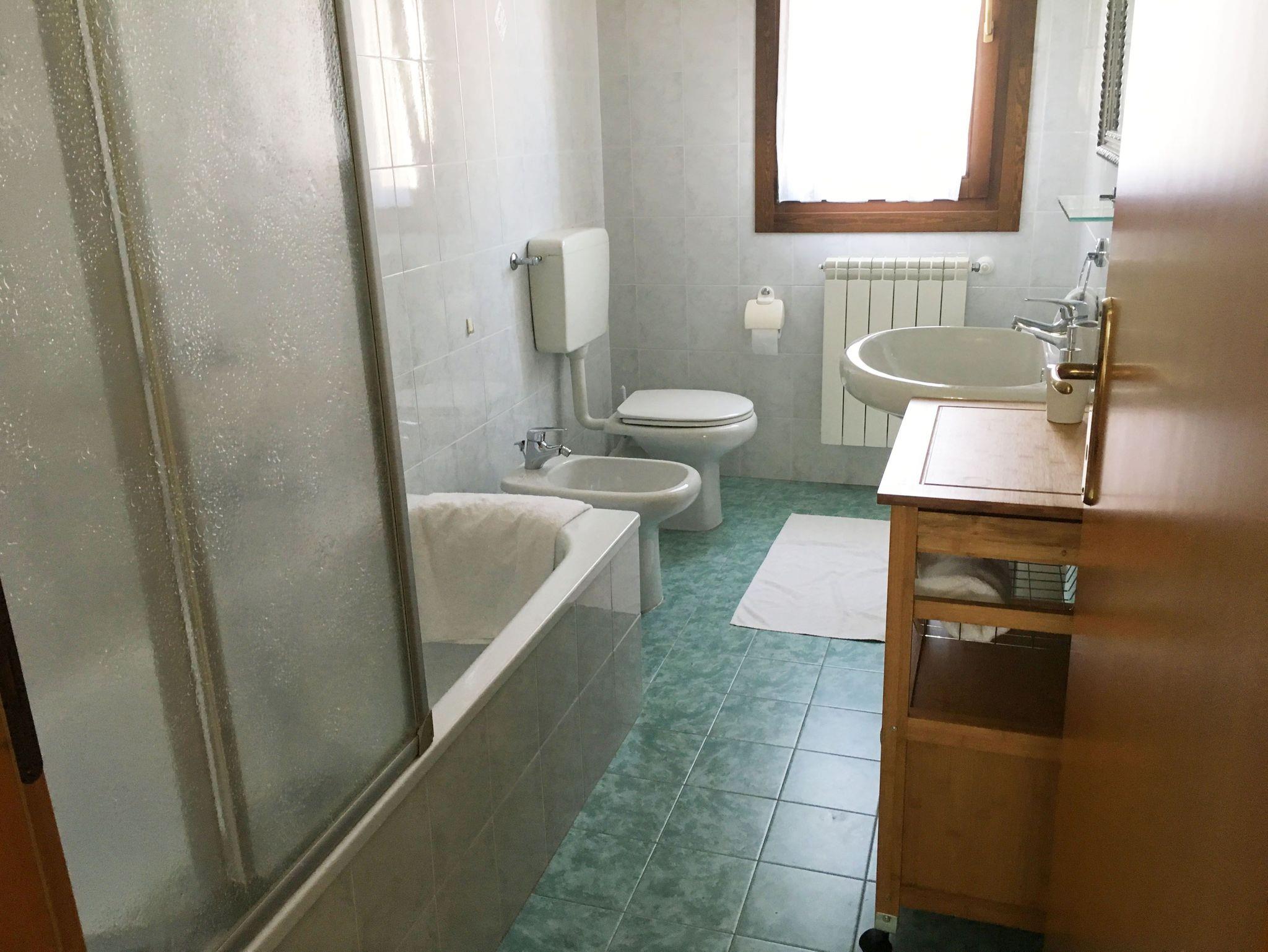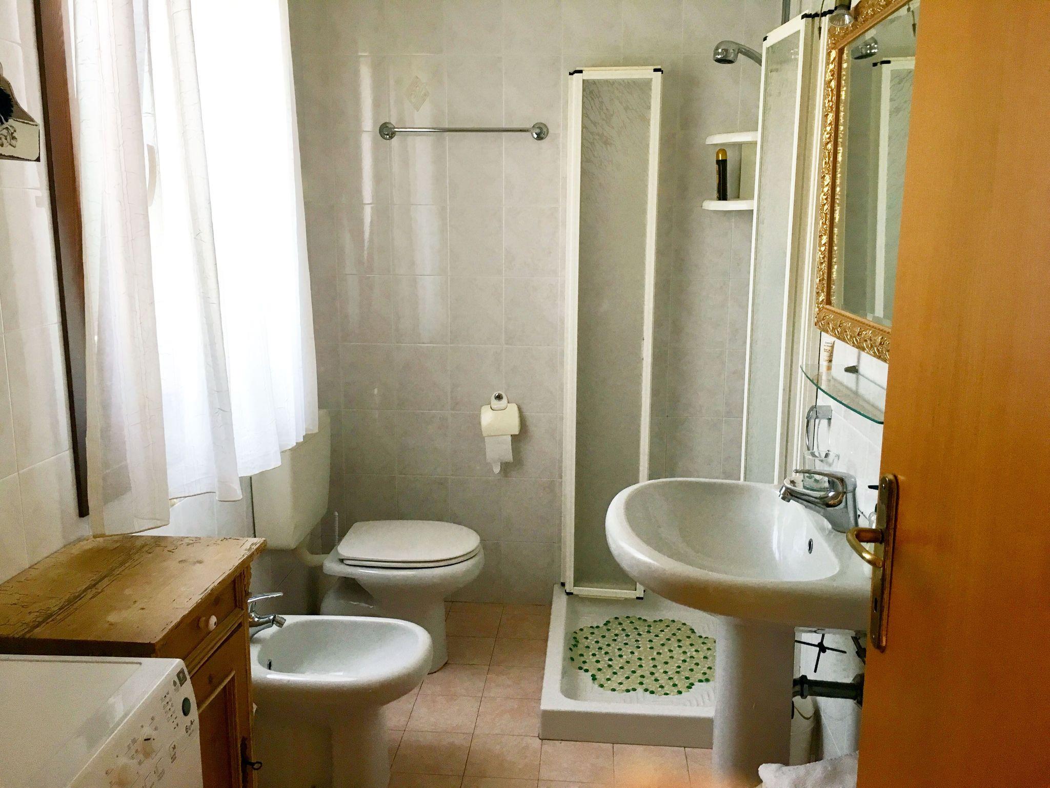 • Ein Bad mit Dusche, Bidet, Waschmaschine und Wc