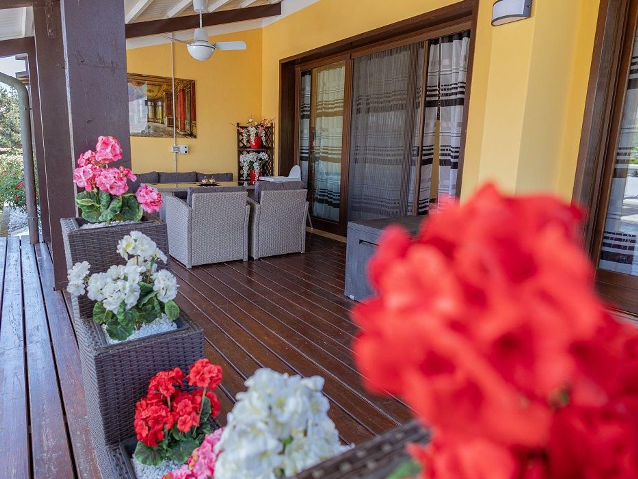 • Wohnzimmer: 4K-TV (55), SAT TV , Musiksystem BOSE; Ausgang zur Pergola und Terrasse und Fliegengitter
