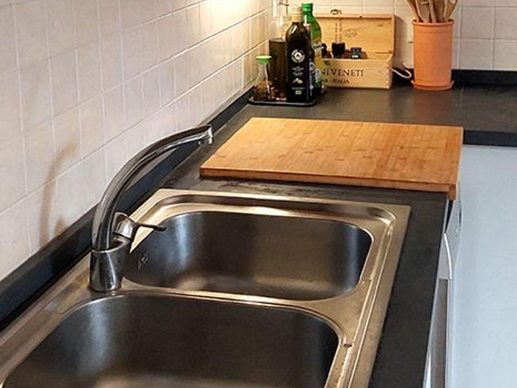 • Großer Speisekammerschrank und ausziehbarer Holztisch.