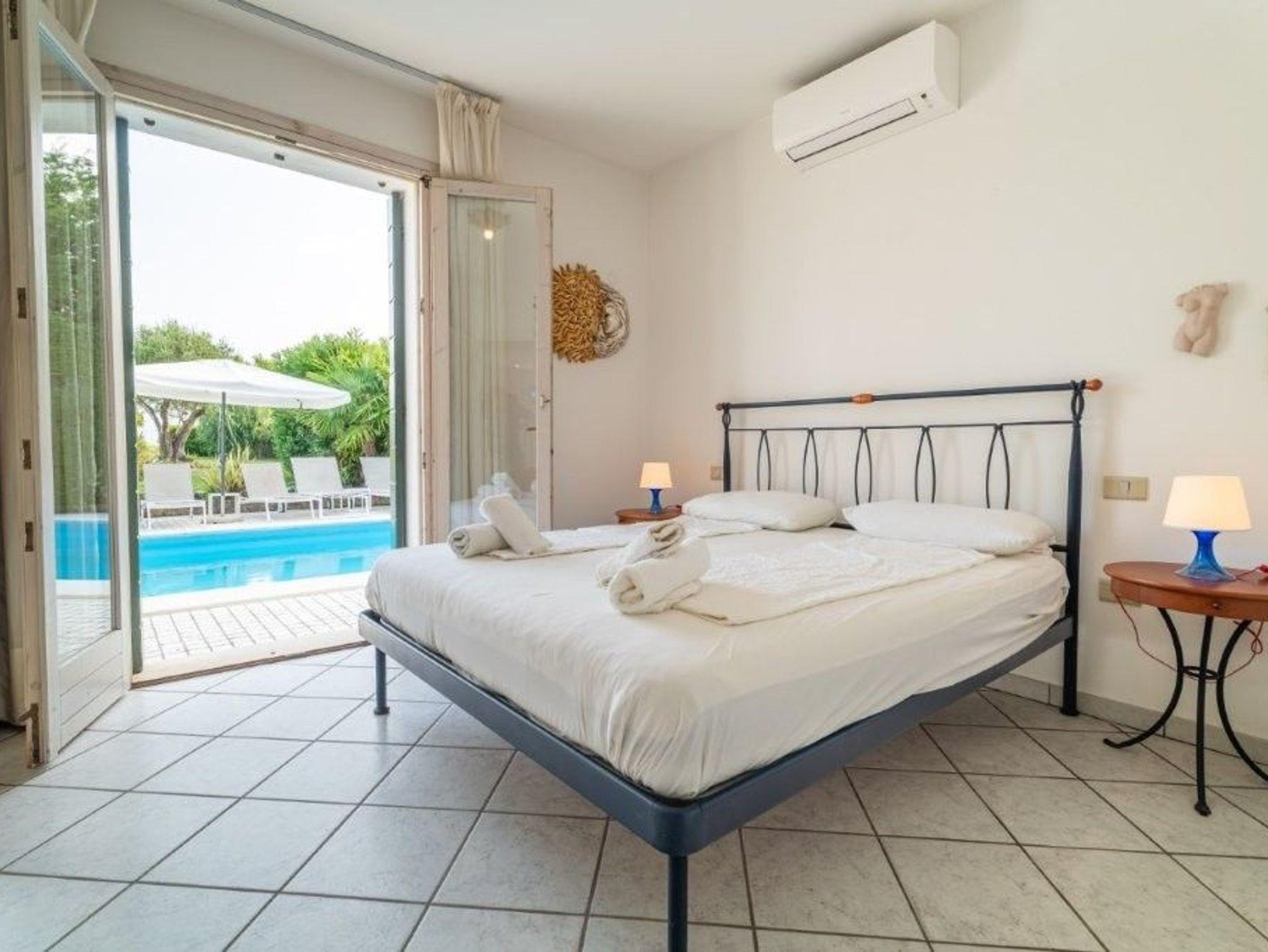 • Ein Schlafzimmer mit Doppelbett und Klimaanlage