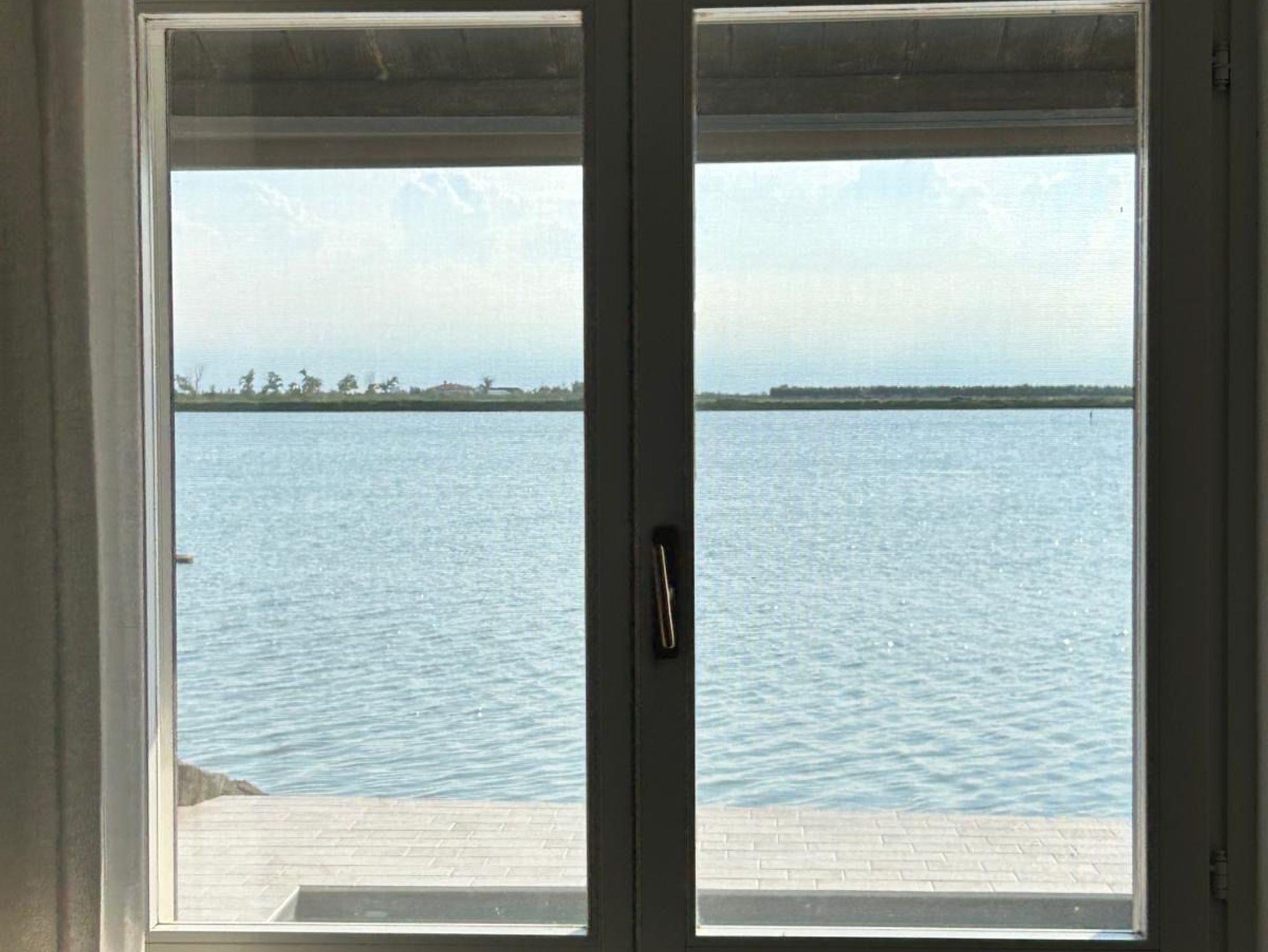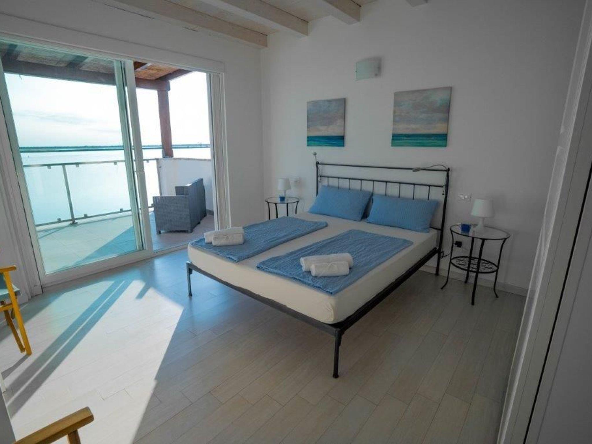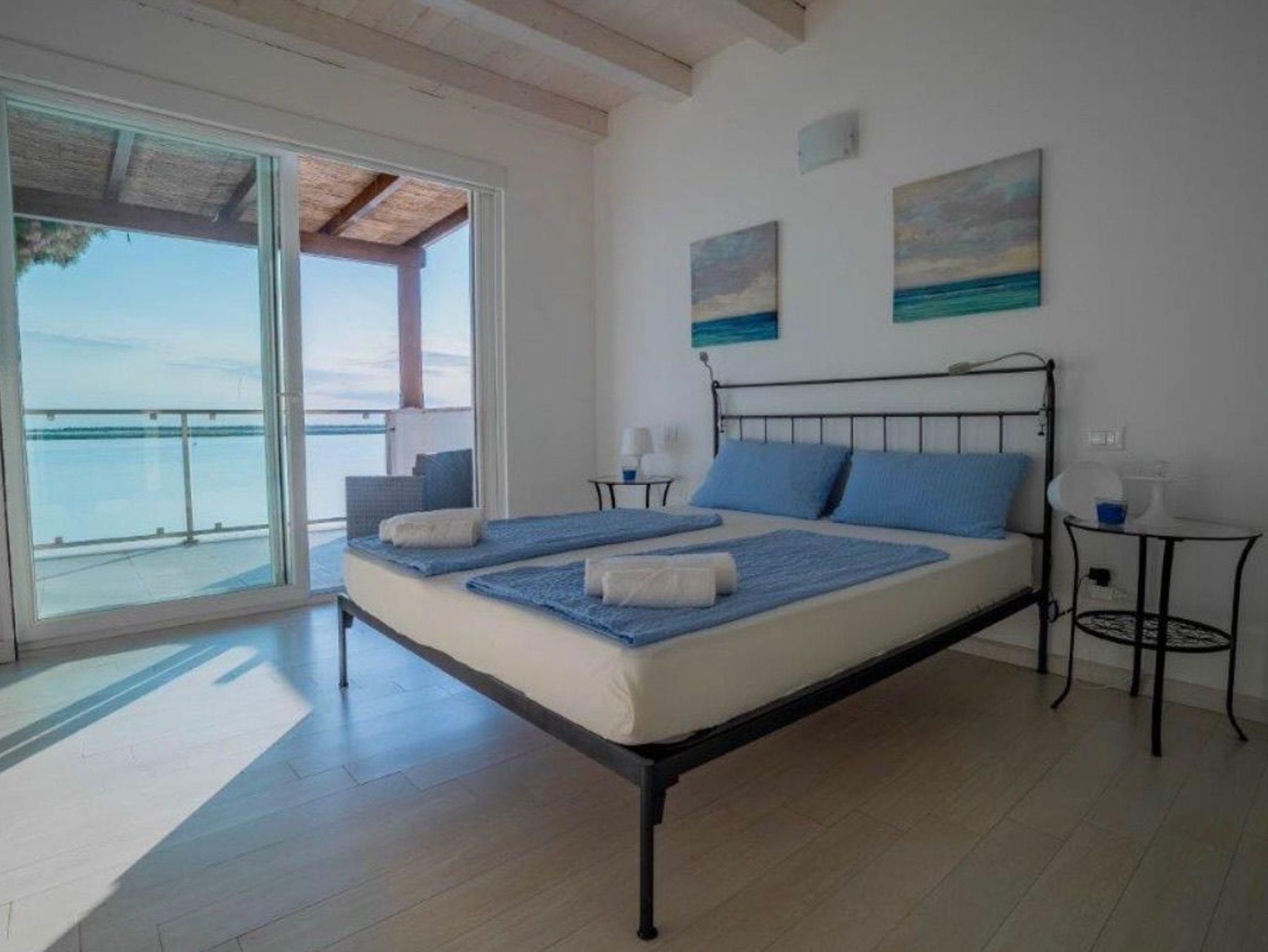 • Ein Schlafzimmer mit Doppelbett und mit Blick auf die Lagune