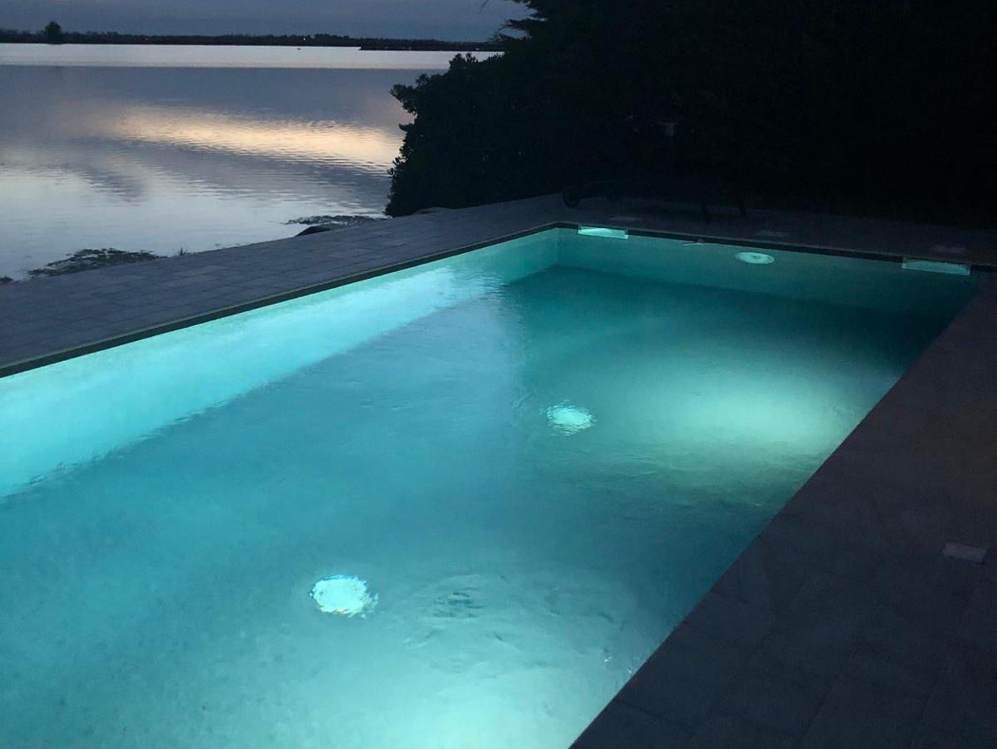 • Beleuchteter Pool mit Wellnessdüsen und Gegenstromanlage, die beheizt werden können