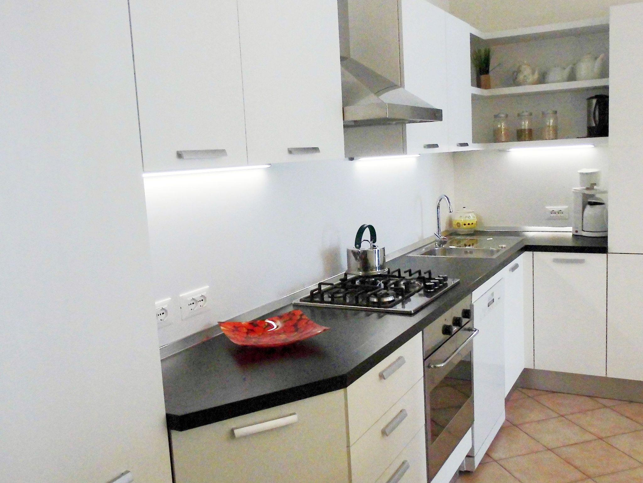 • Gut ausgestattete Küche mit Backofen, Kühlschrank, Tiefkühlschrank Spülmaschine, Kaffeemaschine, Wasserkocher, Toaster und Dunstabzug
