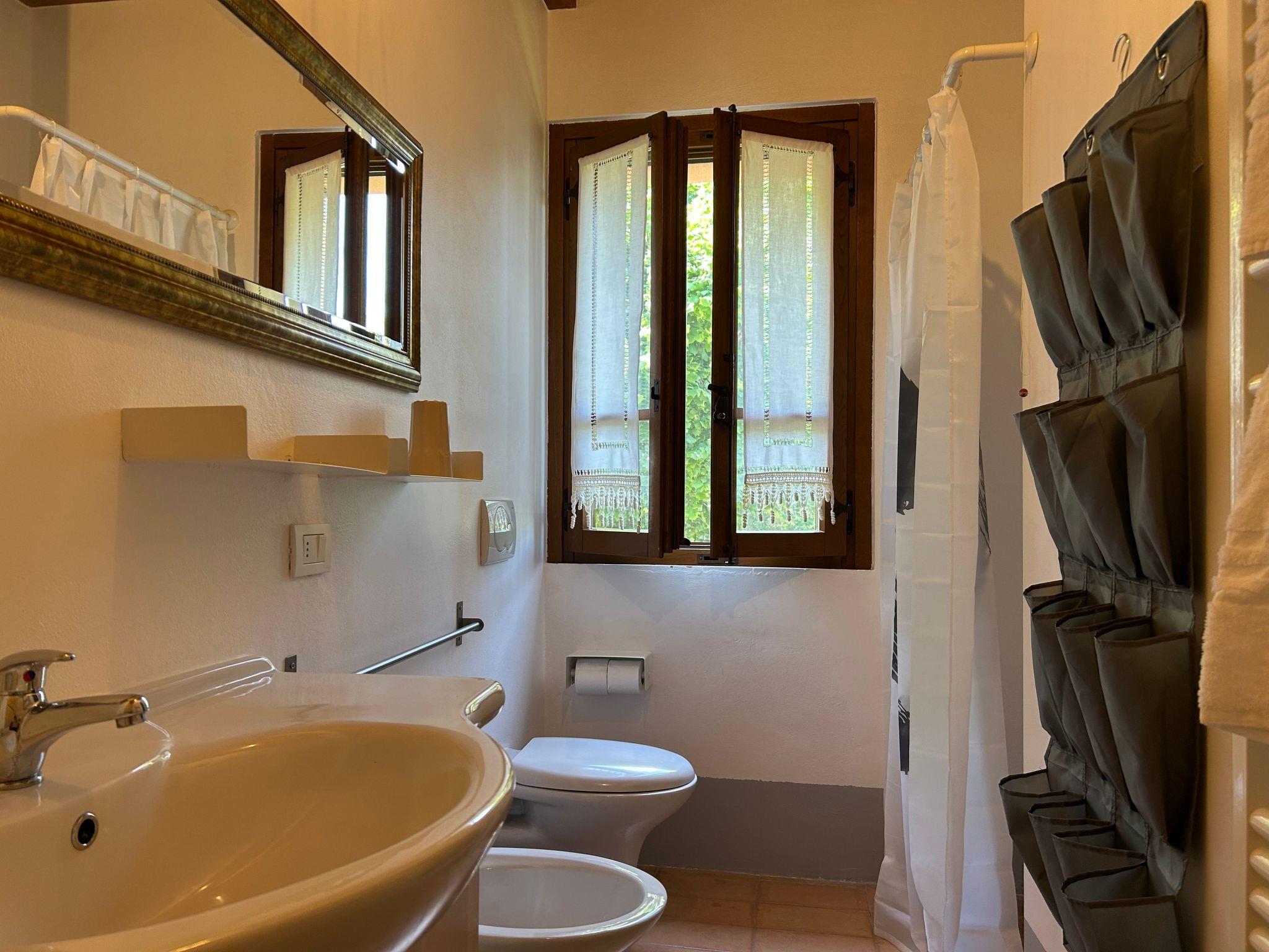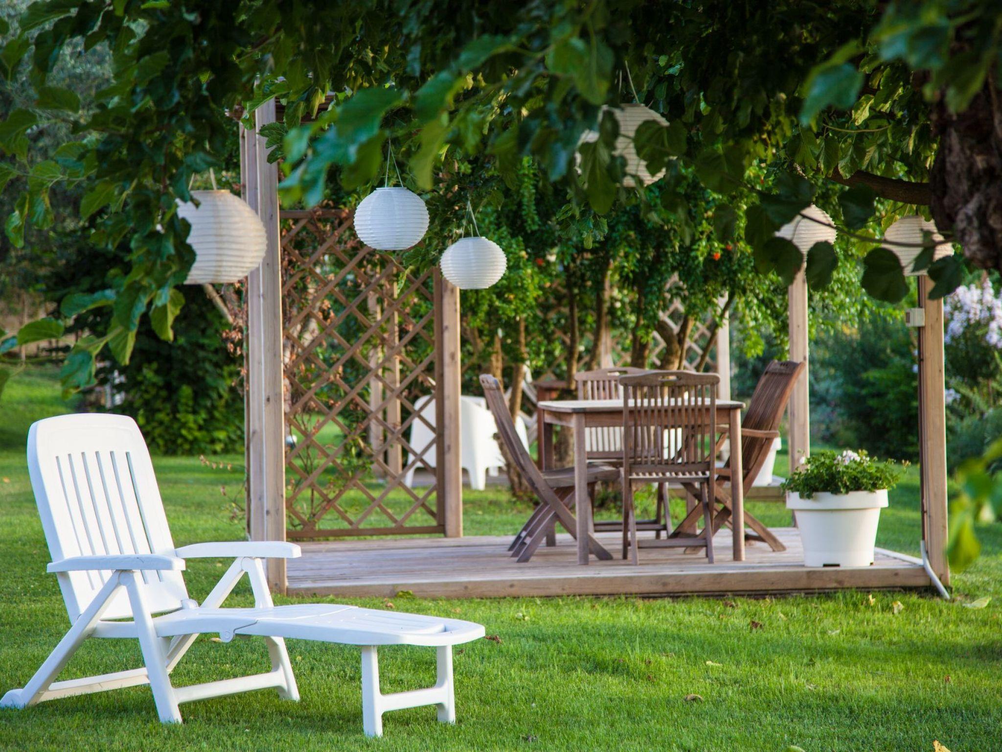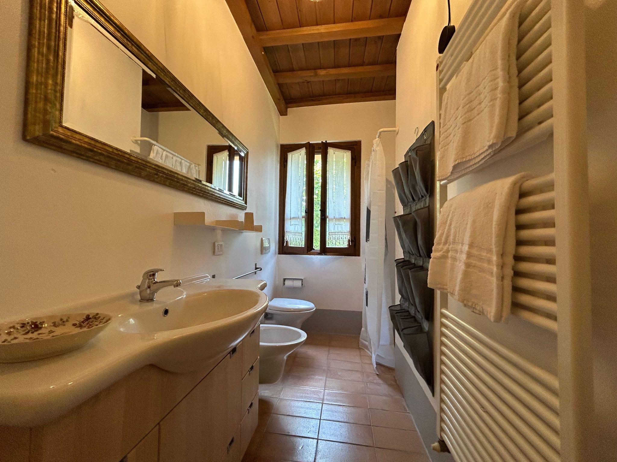 Externally, the flat boasts a beautiful private gazebo, ideal for al fresco dining, equipped with a table and chairs. The property also offers a generously sized swimming pool (10×15 m) with a shallow area safe for children. Guests can relax on comfortable loungers under parasols, immersing themselves in an atmosphere of total serenity. The well-kept garden, which is shared with other guests, invites tranquillity and relaxation, and for the little ones satisfies their need for space to play.