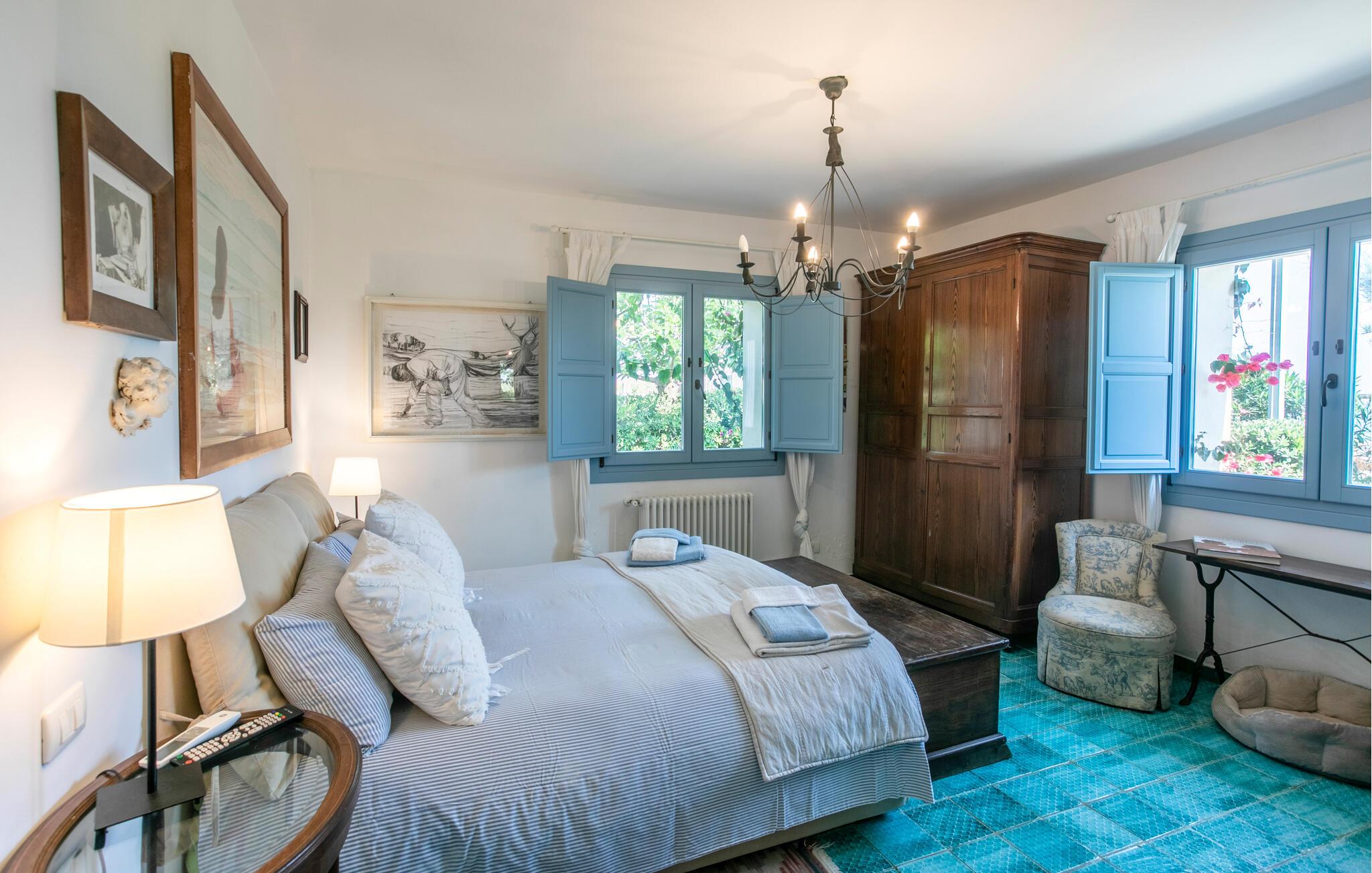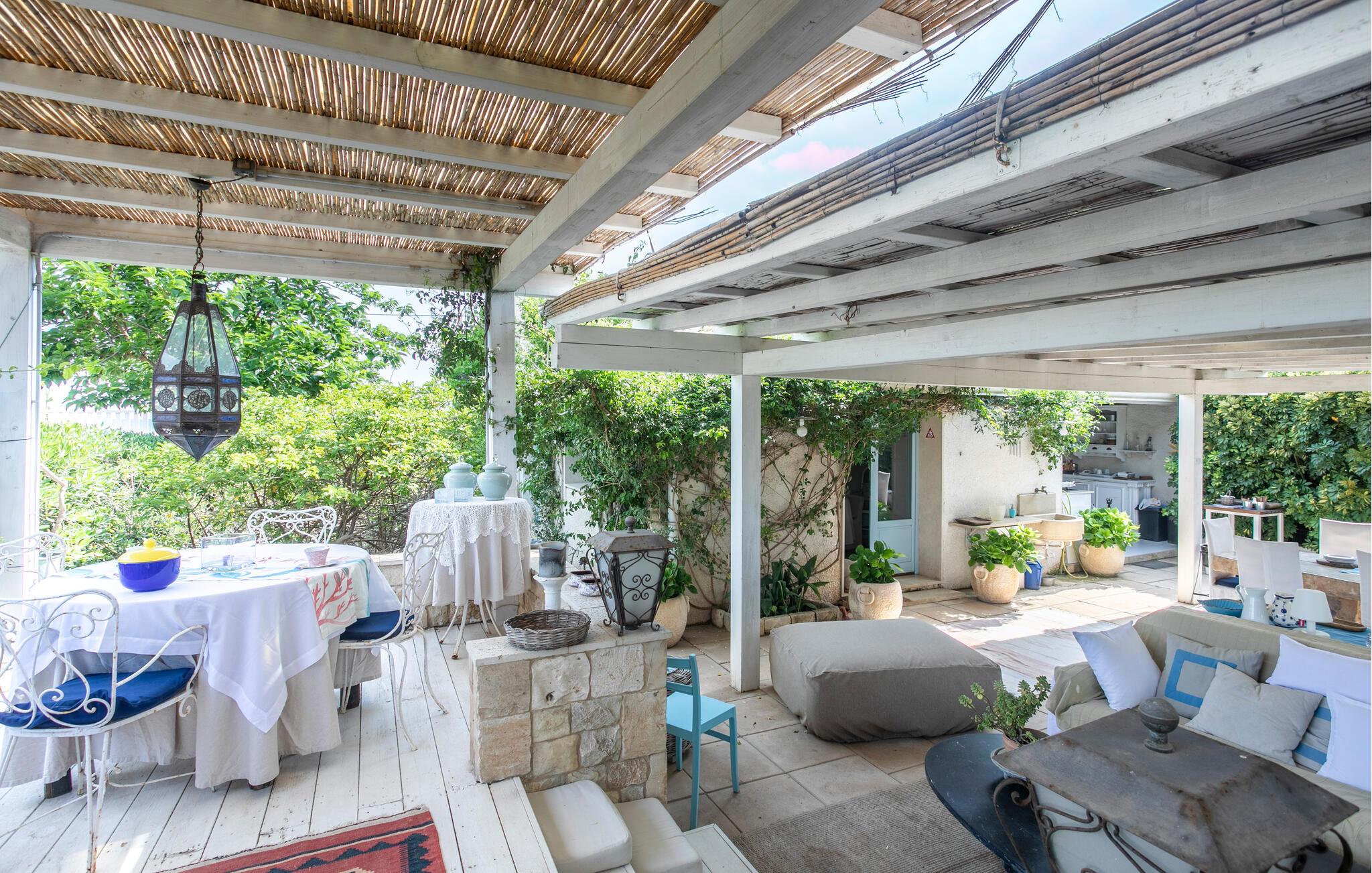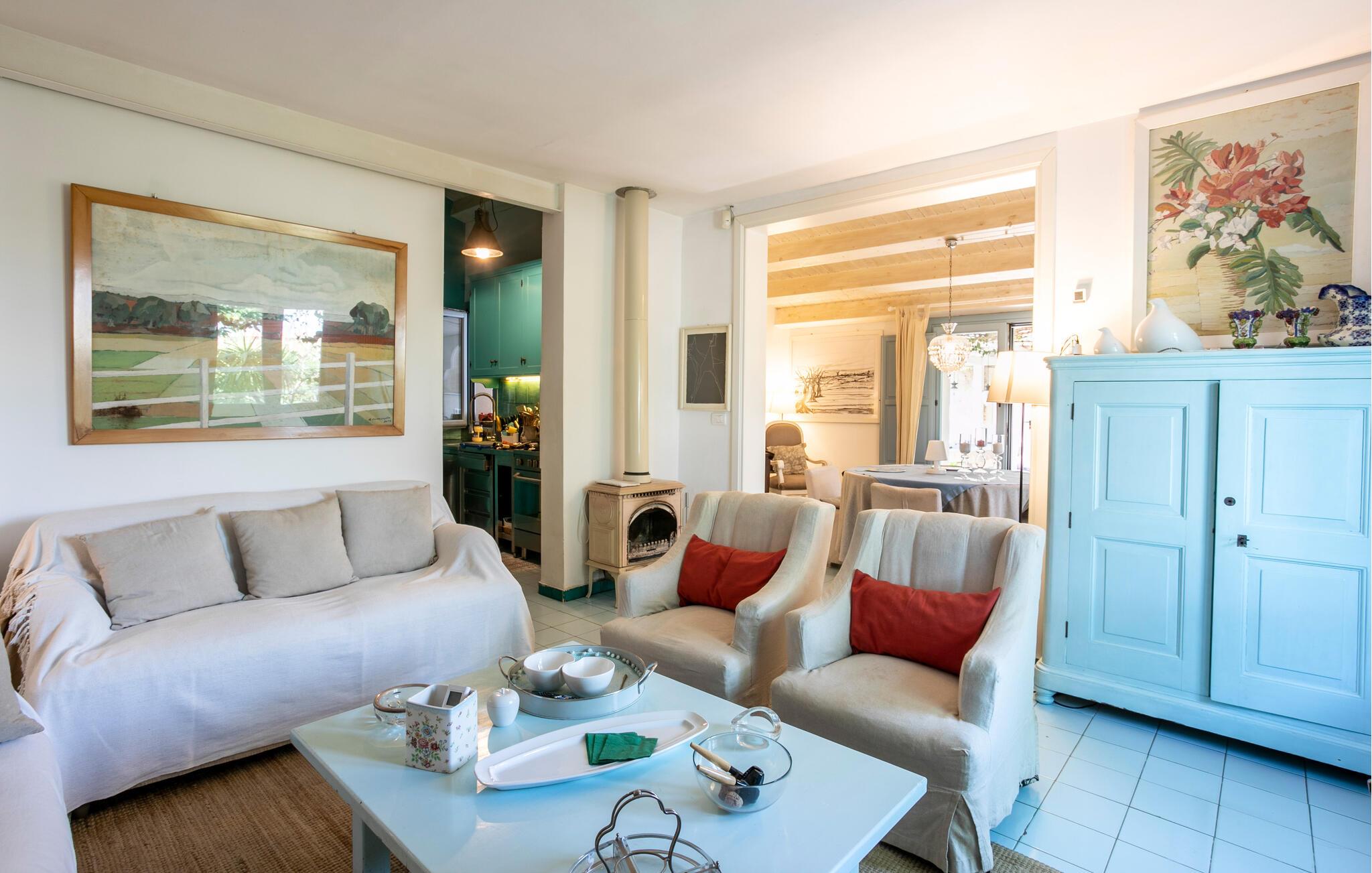 Huset er nydeligt indrettet, og særligt det veludstyrede opholdsområde og det farverige køkken emmer af autenticitet og ro. Den rummelige, overdækkede terrasse og udendørsområdet er særligt indbydende, og her er der lagt op til afslapning og sociale måltider i det fri. I kan også nyde middelhavsstemningen i den grønne have.