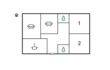 Badeværelse 6m2 (nr. 1) - WC. Varmt og koldt vand. Bruser