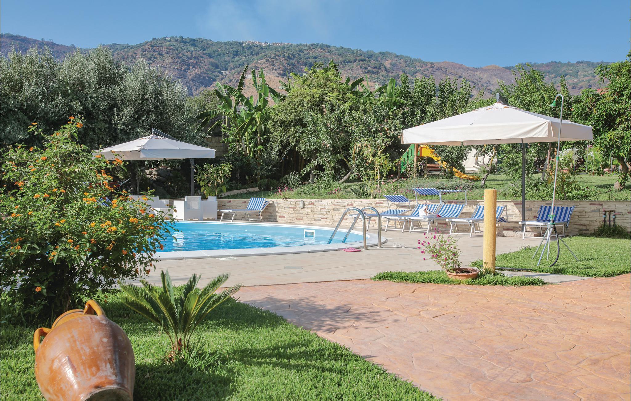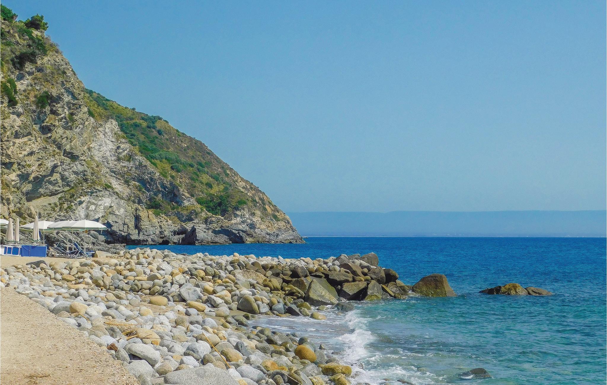 Omgivet af yppig grøn natur og i en have, kun 40 m fra havet og stranden, både med klipper og fint sand, ligger dette feriehus i Joppolo i Vibo Valentiargionen. Huset er lyst og hyggeligt indrettet og ligger i et privat ferieanlæg, med en fælles pool, en fodboldbane, tennisbane, legeplads, grillplads og en have fuld af blomster og planter. Feriehuset er i et plan med tre soveværelser, alle med eget badeværelse, en stor stue med køkken og spisebord, samt en skøn veranda, hvor I kan slappe af og spise dagens måltider. En udendørs trappe fører op til en terrasse på første sal, hvorfra der er udsigt over havet og de Æoliske øer på klare dage. Nær Joppolos historiske centrum, Nicotera (7 km), Tropea (15 km). I nærheden af barer, restauranter og supermarkeder der er åbne året rundt.