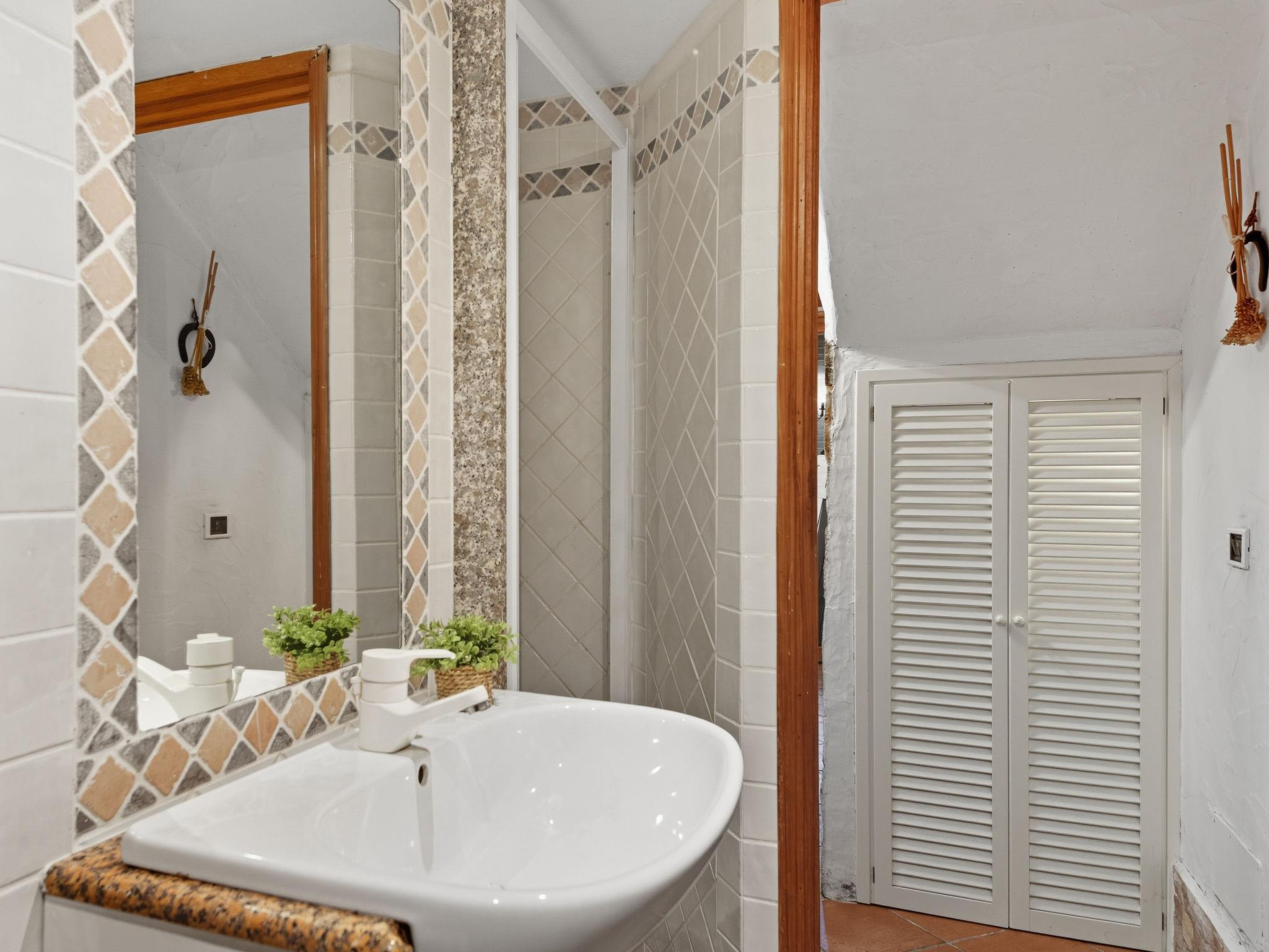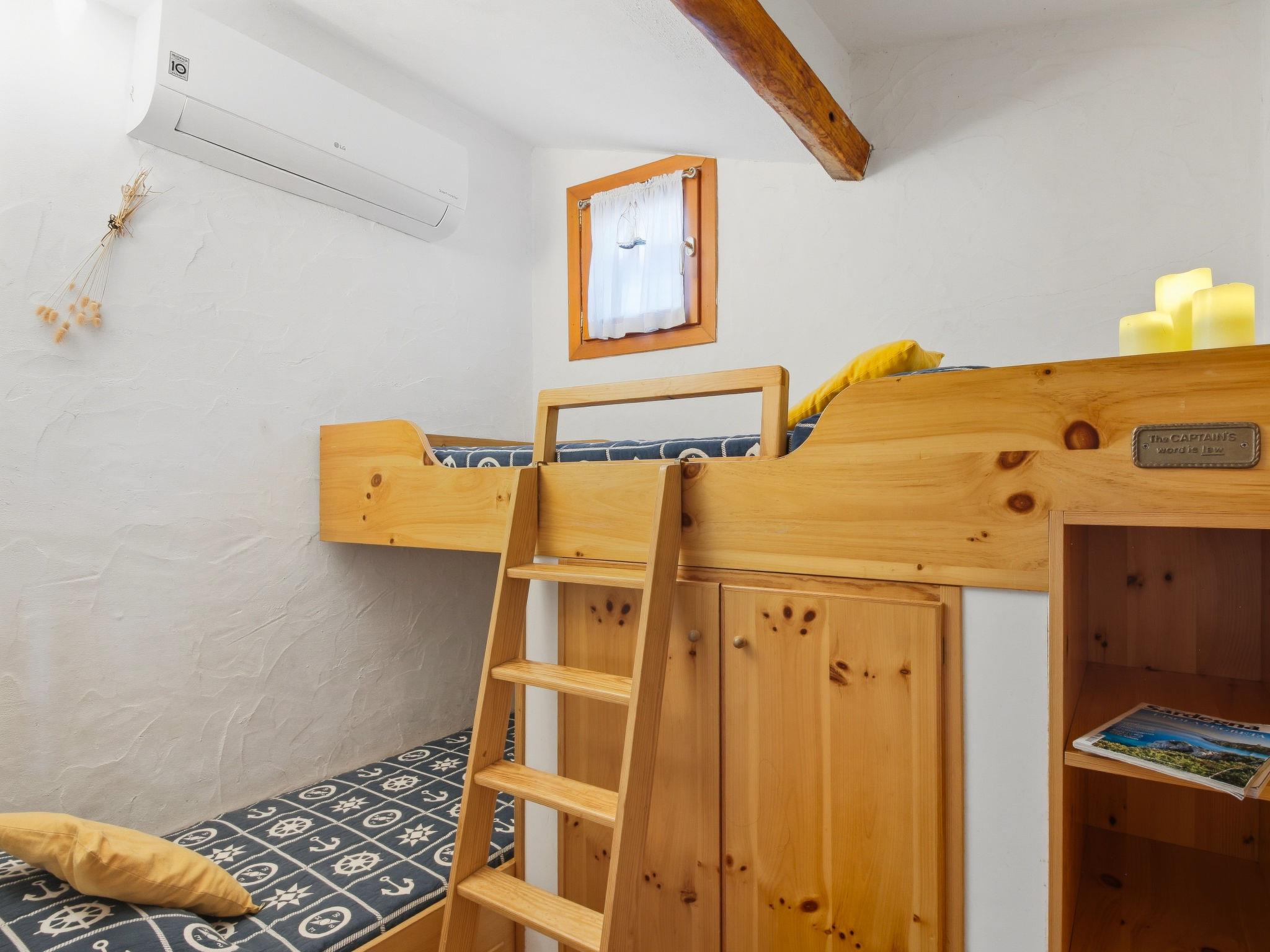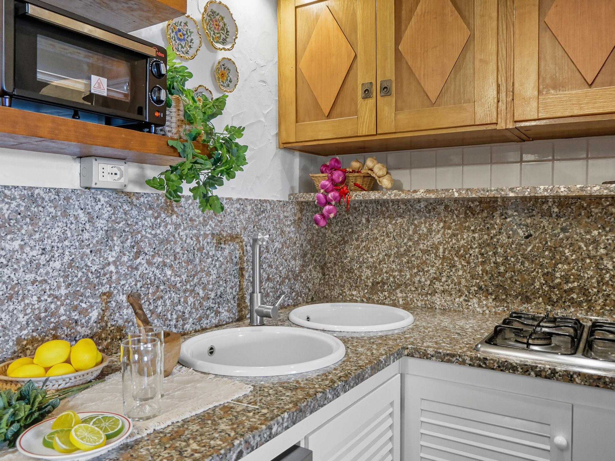 "Ortensia", 4-room house 60 m2. Rustic and cosy furnishings: living/dining room with satellite TV (flat screen), boiler. Exit to the terrace. 1 room with 2 beds. Open kitchen (4 hot plates, oven, dishwasher, microwave). Shower/bidet/WC. Air-conditioning, forced-air heating. Upper floor: 1 room with 1 double bed. 1 room with 1 x 2 bunk beds. Shower/bidet/WC. Large terrace roofed. Terrace furniture, sitting area. Very beautiful, of the sea and the swimming pool. Facilities: washing machine, iron, mosquito net, hair dryer. Internet (WiFi, free). Parking space n 22 (fenced). Maximum 1 pet/ dog allowed. IT090047C2000T0200
