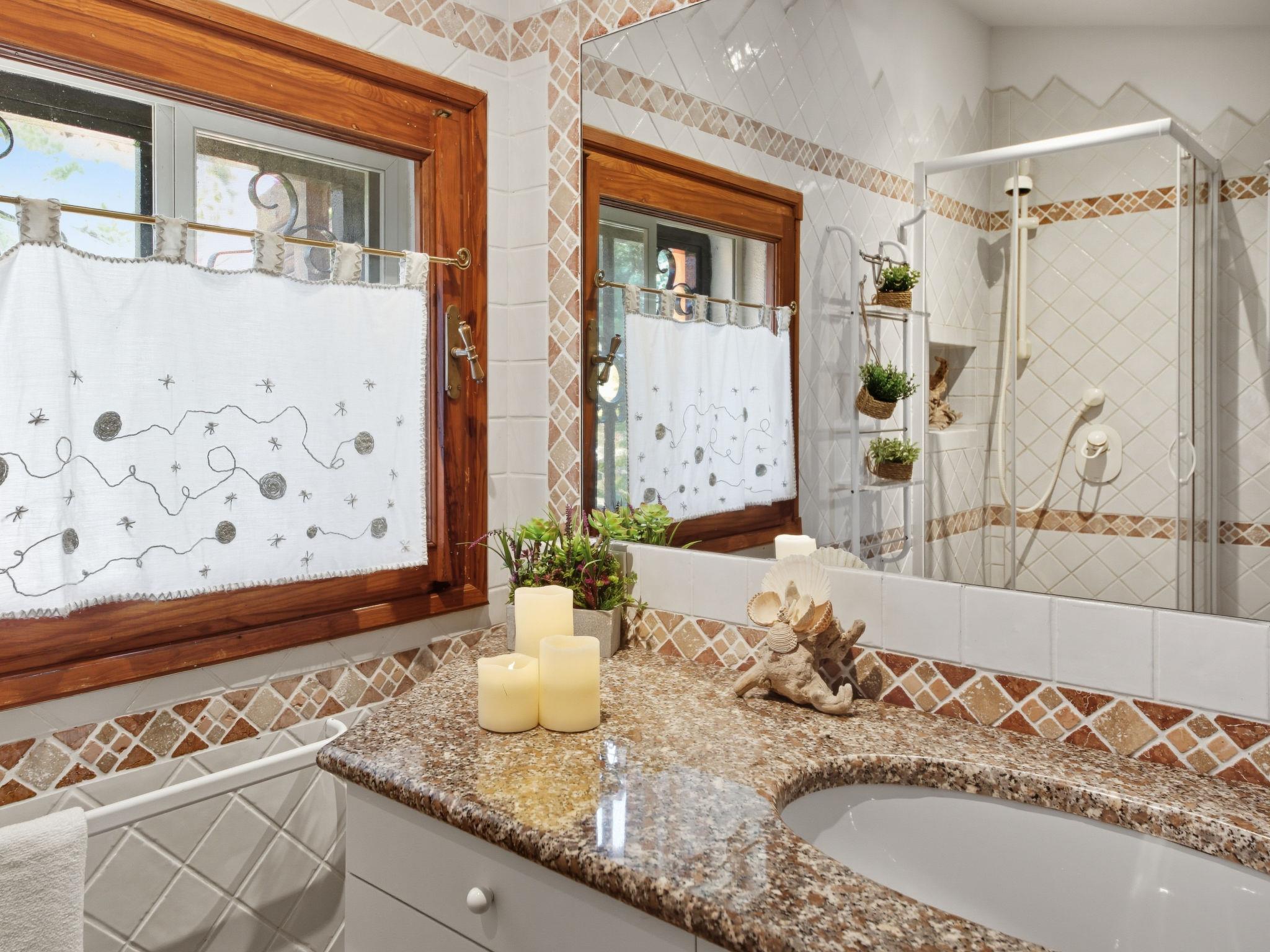 Villaggio Piras: Residence "Sporting House". 3 km from the centre of La Maddalena, in a quiet, sunny position in the residential district, 50 m from the sea, 100 m from the beach. For shared use: park, large, well-kept garden plants and flowers, swimming pool fenced (25 x 10 m, depth 130 - 250 cm, seasonal availability: 15.Jun. - 15.Sep.). Outdoor shower, tennis (1 x hard court), boccia, garden furniture, parking on the premises. Supermarket 2.5 km, restaurant 2 km, bar 2 km, bus stop 5 km, sandy beach "Spalmatore" 4 km. Sports harbour 3 km. Nearby attractions: Palau 6 km, Olbia 45 km, Porto Cervo 37 km, Santa Teresa 31 km. Please note: car recommended.