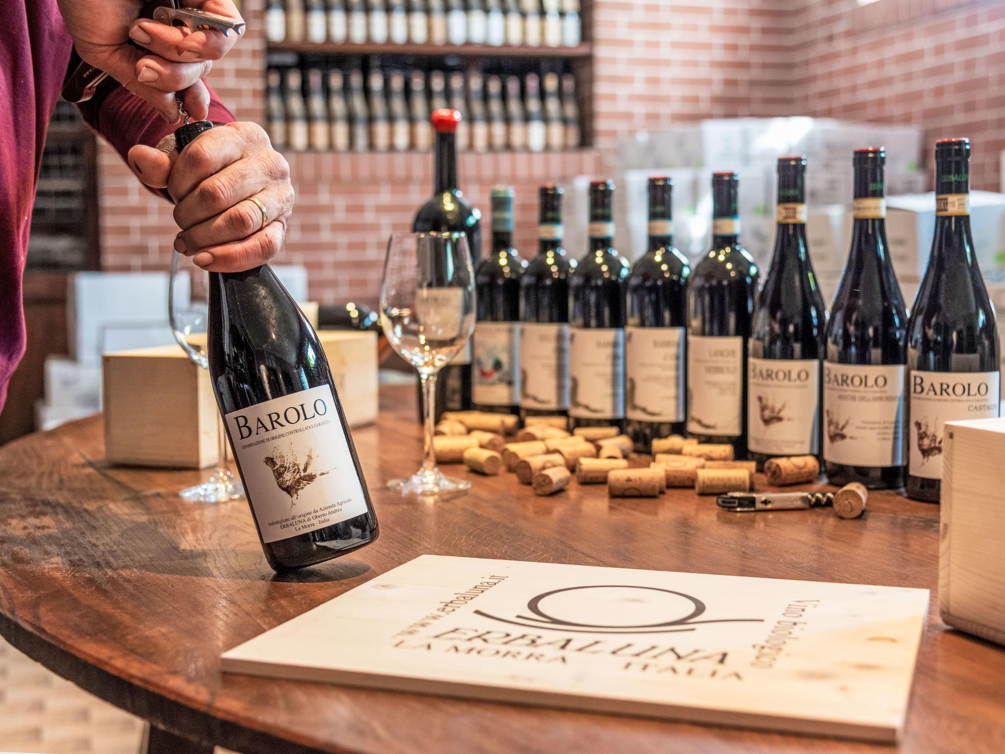 Very cosy on a vinyard "Ca' del Pozzo", surrounded by vineyards. 4 apartments in the residence. In the hamlet Pozzo 1.5 km from the centre of La Morra, 5 km from the centre of Barolo, 15 km from the centre of Alba. For shared use: property 500 m2 (fenced) with natural garden, meadow, swimming pool (above ground) (6 x 3 m, depth 140 cm, seasonal availability: 08.Jun. - 14.Sep.). Patio, terrace, barbecue (swing). In the house: washing machine (for shared use). Breakfast possible on request (extra). Roofed, parking at the house on the premises. Shop 1.5 km, bus stop "La Morra" 300 m, railway station "Alba" 15 km, outdoor swimming pool 5 km. Local sale of farm products.