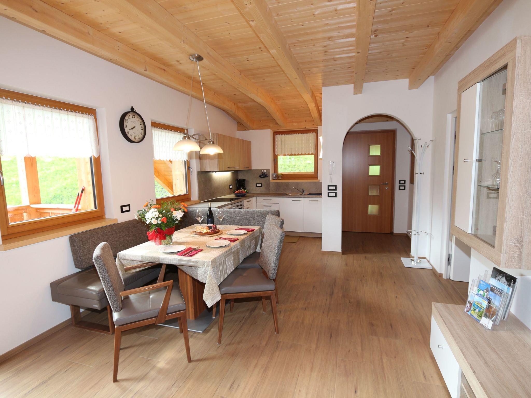 Situated in Longiarù, in the heart of the Dolomites UNESCO World Heritage Site, this cosy flat is the ideal choice for up to 5 persons. Comprising 2 bedrooms capable of offering a peaceful rest, thanks to the possibility of completely darkening them, and a bathroom equipped with shower, the flat stands out for its functionality and comfort and a separate WZ.