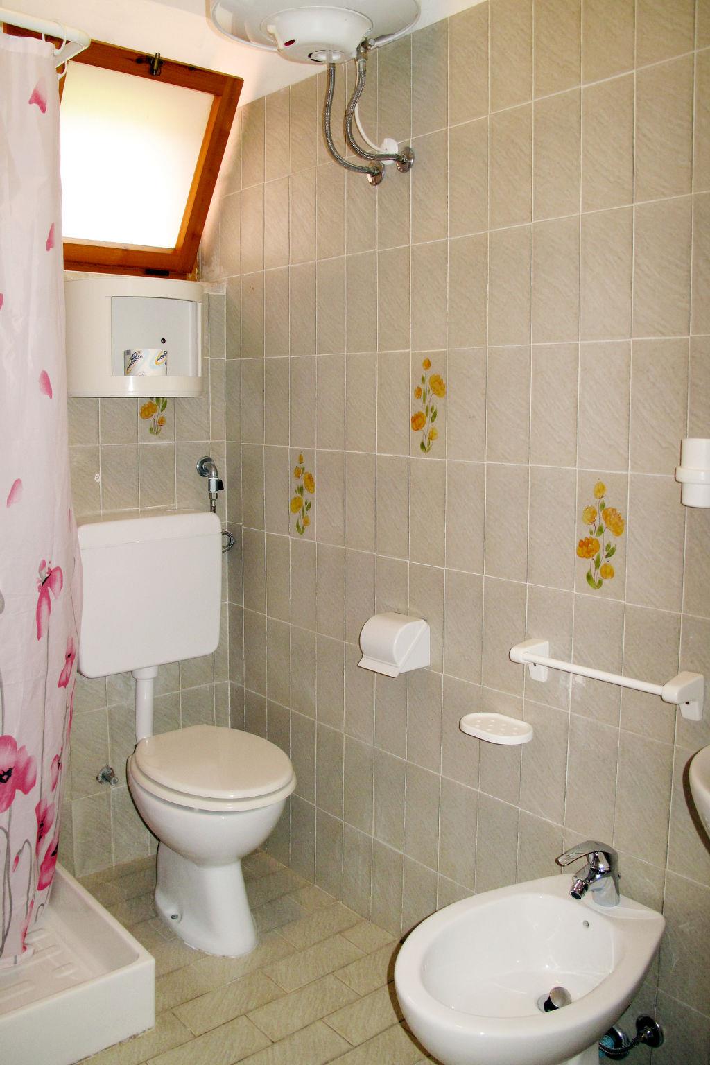 2-room apartment 35 m2. Cosy furnishings: living/sleeping room with 2 sleeping facilities, dining table and TV. 1 double bedroom. Small, open kitchen (4 induction hot plates, kettle, microwave). Shower/bidet/WC. Air-conditioning, forced-air heating. Balcony or terrace. Terrace furniture, balcony furniture. Panoramic view of the sea and the forest. Facilities: baby cot for up to 2 year olds (extra), hair dryer. Internet (WiFi, free). Parking (1 car). Please note: non-smokers only. Private entrance. No mandatory extra charges to be paid on-site. IT049004B4JC3M3VPI