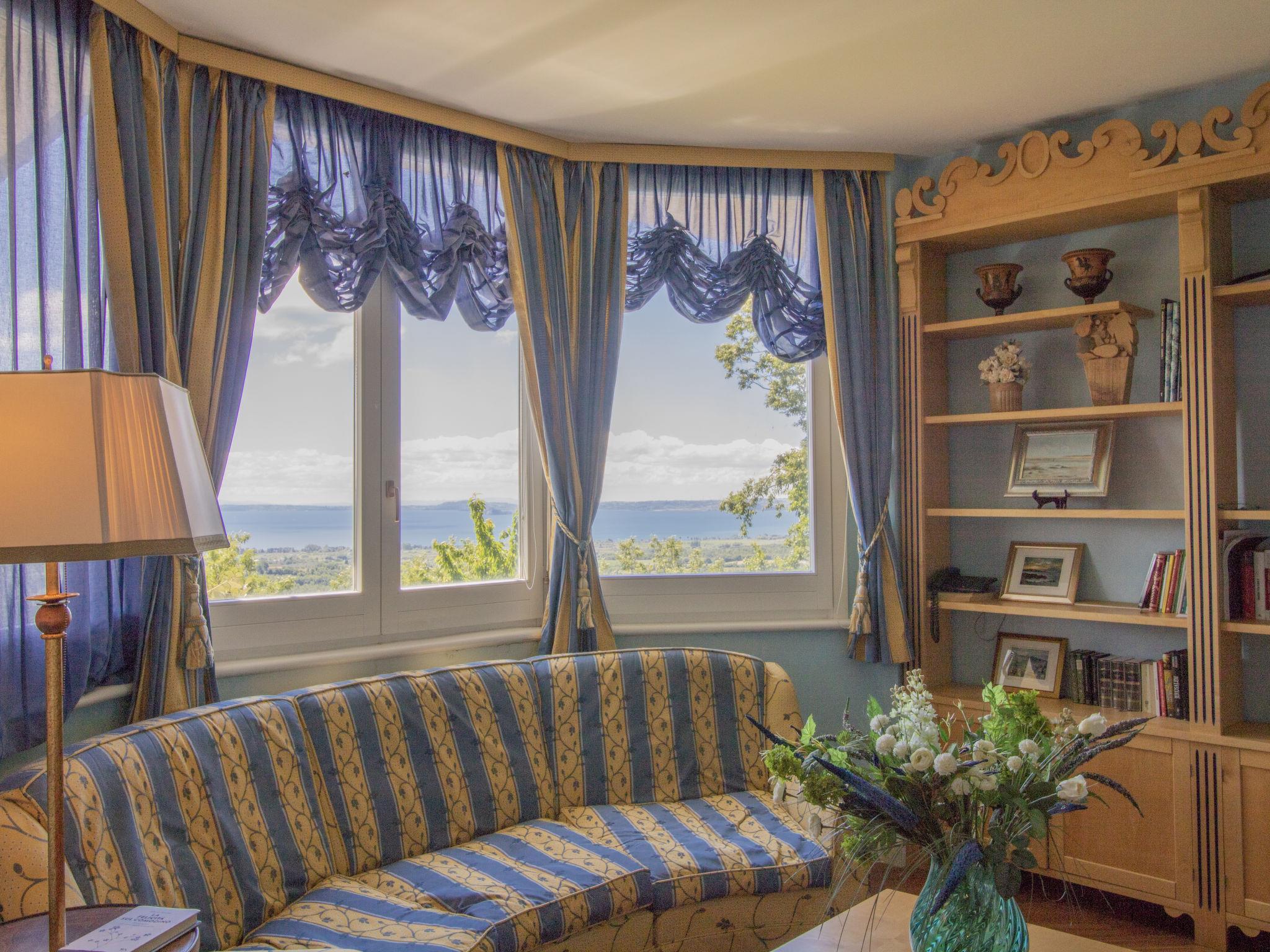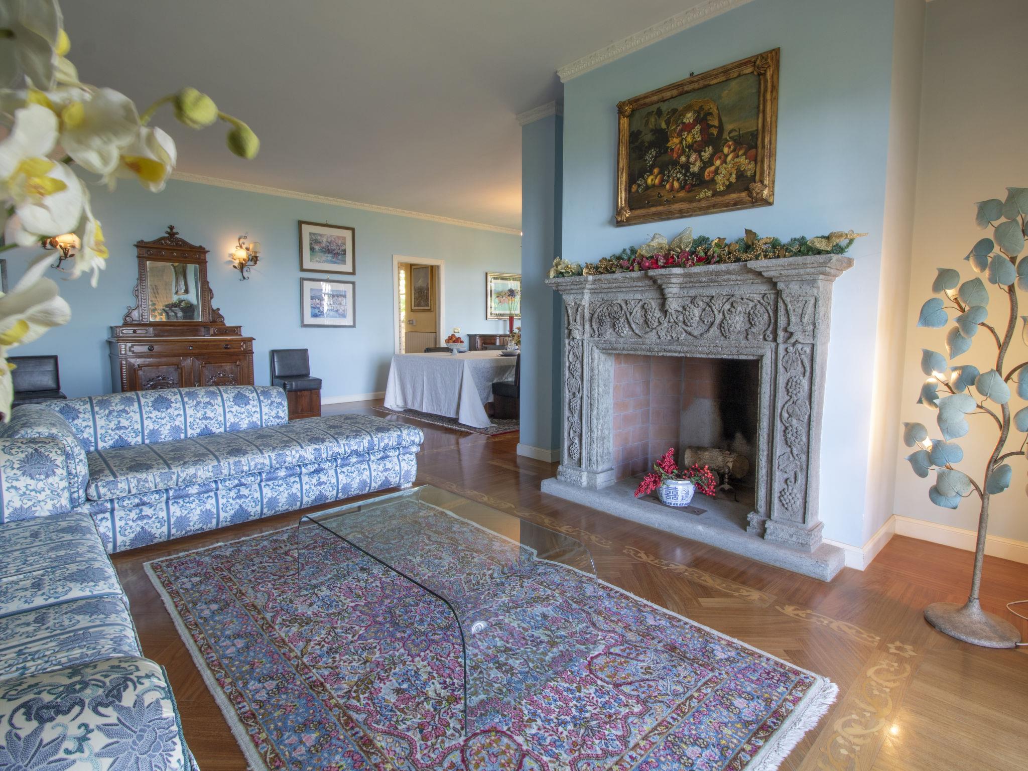 8-room villa 500 m2 on 3 levels. Very beautiful and luxurious furnishings: entrance hall. Open large living/dining room with panoramic window with open-hearth fireplace. Exit to the garden, to the loggia. With panoramic window with open-hearth fireplace. Living room with satellite TV, flat screen, hi-fi system and DVD. 1 double bedroom. Kitchen (5 hot plates, oven, microwave, freezer) with dining table. Exit to the garden. Shower/bidet/WC, sep. WC. On the lower ground floor: large playroom with open-hearth fireplace, dining table, kitchen corner and shower/bidet/WC. Exit to the garden. Upper floor: 1 large double bedroom with panoramic window Dressing room with bath/bidet/WC, double hand-basin, hydro massage bath and air conditioning. Exit to the terrace. 1 double bedroom with panoramic window with air conditioning. 1 room with 1 bed. Shower/bidet/WC. Gas heating. Heating available only from 01.11. to 15.04. Balcony furniture. Marvellous panoramic view of the lake and the valley. Facilities: washing machine, hair dryer. Internet (WiFi). Garage (2 cars). E-charging station. 1 small pet/ dog allowed. Finely furnished and built with quality materials, this house is the ideal home for those in search of beauty, comfort and relaxation. IT056047C2KVY2T62O