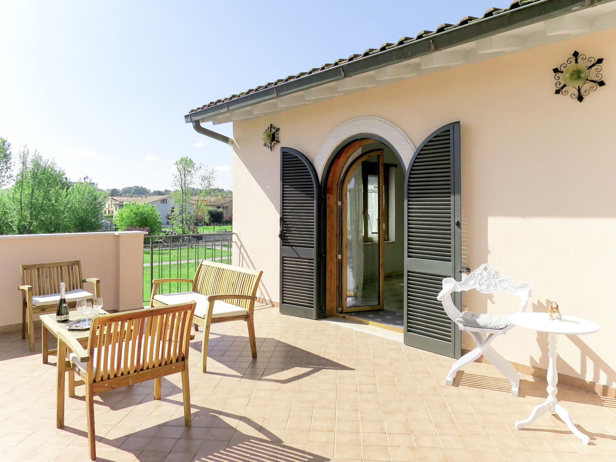 2-family house "Amalasunta". 500 m from the centre of Marta, on the outskirts, 4 km from the centre of Capodimonte, 40 km from the sea, 70 m from the lake. For shared use: property 500 m2 (fenced) with lawn and plants. Arbour, garden furniture, parking on the premises. Grocery 50 m, supermarket 500 m, restaurant 1 km, bus stop 80 m, sandy beach 1 km. Marina 50 m. Nearby attractions: Montefiscone 10 km, Bolsena 14 km, Viterbo 21 km, Sutri 26 km, Cività Di Bagnoregio 40 km. Please note: the owner lives in the same residence.
