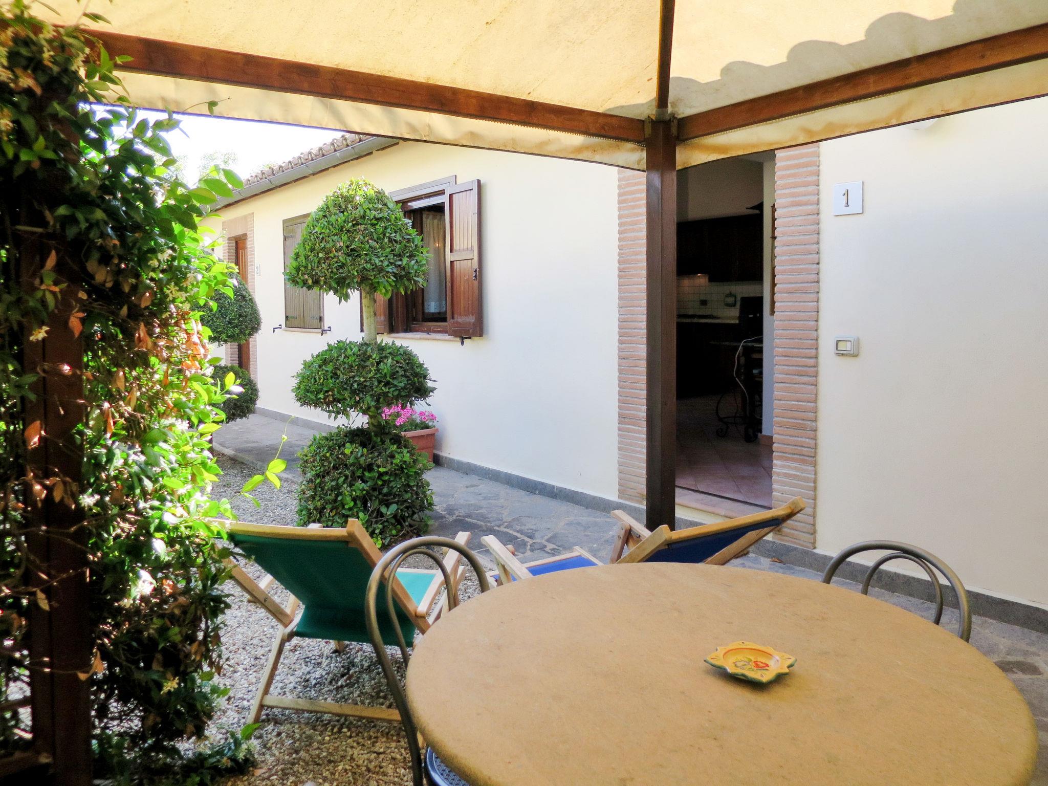 "Dolce Vita", 2-room house 35 m2, on the ground floor. Practical furnishings: living/sleeping room with 1 double sofabed, dining table and satellite TV. 1 room with 1 french bed (160 cm). Kitchenette (4 gas rings, toaster, kettle, freezer, electric coffee machine). Shower/WC. Gas heating (extra). Patio roofed. Terrace furniture. Facilities: washing machine (extra). Mosquito net. Internet (WiFi, free). Please note: suitable for families. Non-smoking house. Maximum 1 pet/ dog allowed. IT056008B5PSCHJCKT