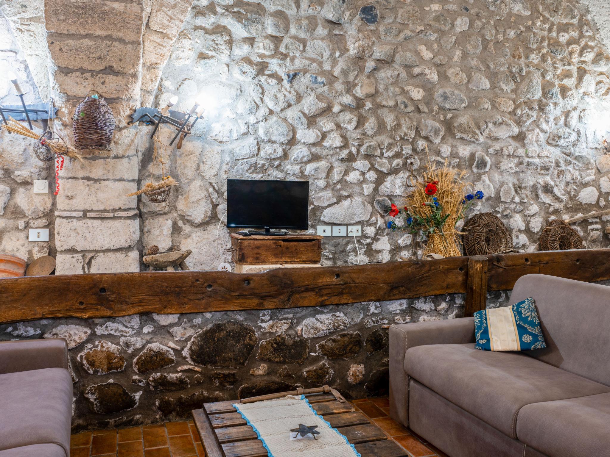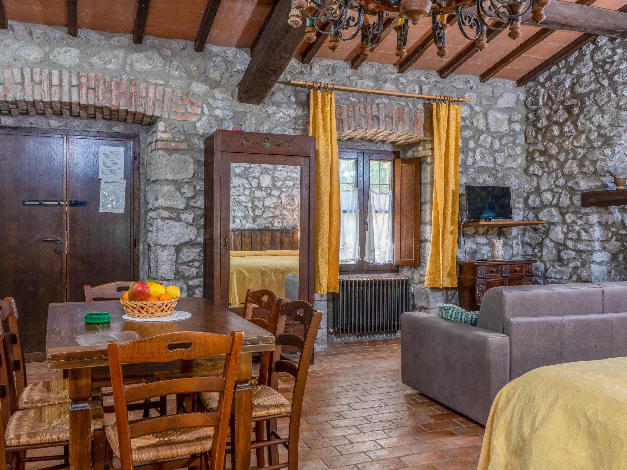 "La Capraccia", 2-room apartment 100 m2, on the ground floor. Renovated, rustic furnishings: living/sleeping room with 2 double sofabeds and 1 french bed (160 cm), dining table and satellite TV. Exit to the garden. Living/sleeping room with 1 double sofabed and 1 french bed (160 cm), dining table, kitchen corner and satellite TV. Exit to the garden. Kitchenette (oven, 4 gas rings, kettle, freezer, electric coffee machine). 2 showers/WC. Gas heating. Patio. Terrace furniture. Facilities: safe, iron. Internet (WiFi, free). Please note: non-smoking house. Maximum 1 pet/ dog allowed. Maximum occupancy: 8 persons. IT056003B55N8AGTOO