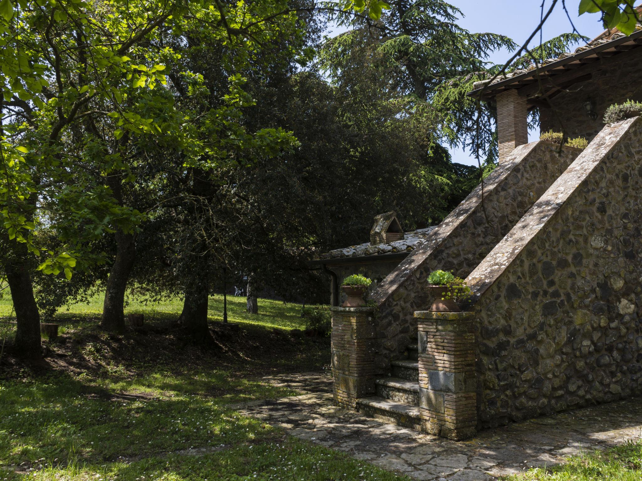 Country house "La Capraccia". 7 apartments in the residence. 10 km from the centre of Bolsena, 3 km from the centre of Bagnoregio, 100 km from the centre of Roma, 11 km from the lake, in the countryside. For shared use: property 20 ha, well-kept garden with lawn and trees, swimming pool (10 x 5 m, depth 120 - 150 cm, seasonal availability: 16.May. - 26.Sep. pool opening hours: 09:00-19:00). Outdoor shower, barbecue. In the house: washing machine (for shared use). 200 m long motor access (via unmade road). Parking on the premises. Shop 3 km, supermarket 3 km, bus stop 3 km, sandy beach "Lago di Bolsena" 12 km. Golf course (9 hole) 18 km. Please note: Additional accommodations can be booked.