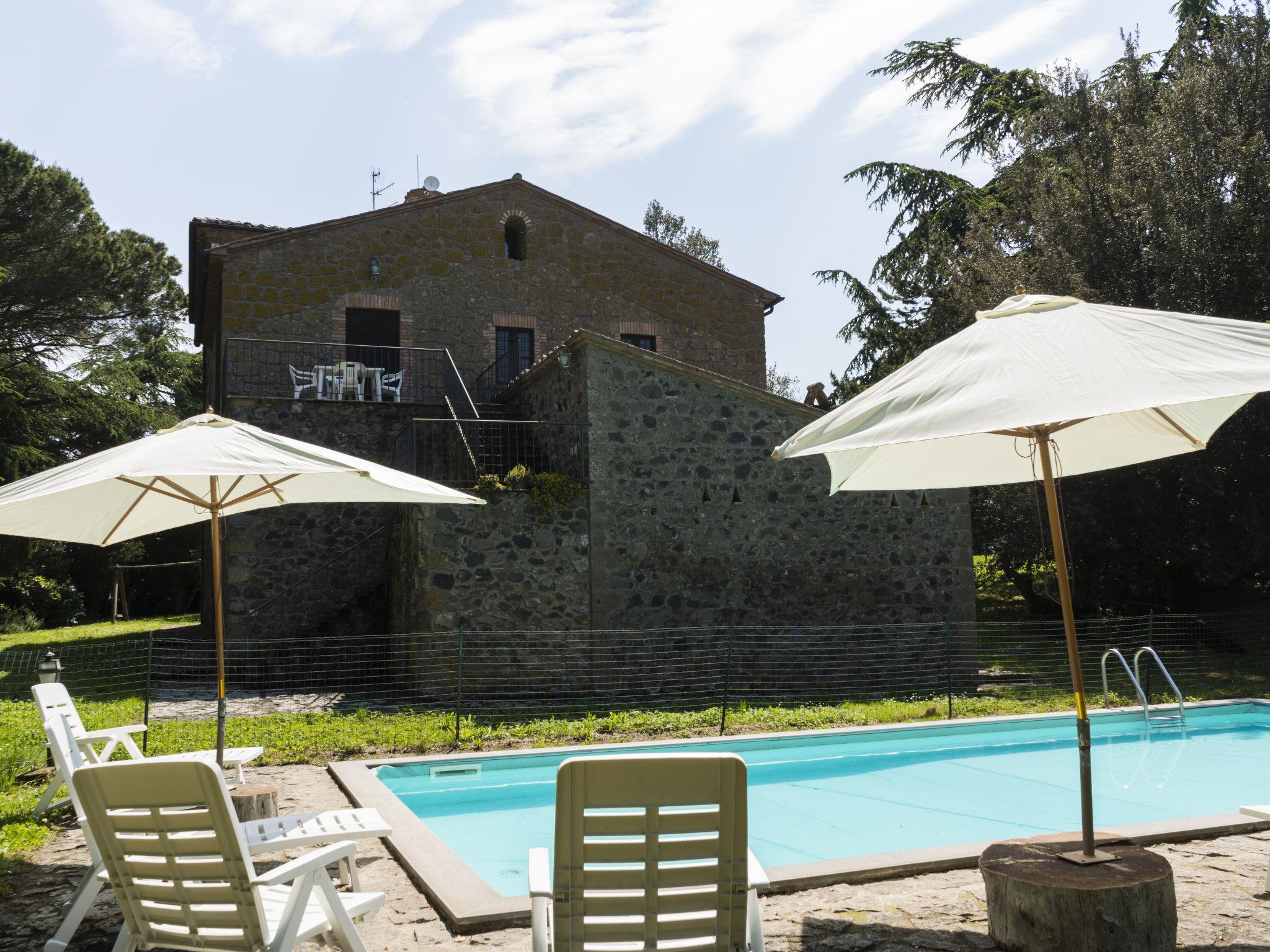 Country house "La Capraccia". 7 apartments in the residence. 10 km from the centre of Bolsena, 3 km from the centre of Bagnoregio, 100 km from the centre of Roma, 11 km from the lake, in the countryside. For shared use: property 20 ha, well-kept garden with lawn and trees, swimming pool (10 x 5 m, depth 120 - 150 cm, seasonal availability: 16.May. - 26.Sep. pool opening hours: 09:00-19:00). Outdoor shower, barbecue. In the house: washing machine (for shared use). 200 m long motor access (via unmade road). Parking on the premises. Shop 3 km, supermarket 3 km, bus stop 3 km, sandy beach "Lago di Bolsena" 12 km. Golf course (9 hole) 18 km. Please note: Additional accommodations can be booked.