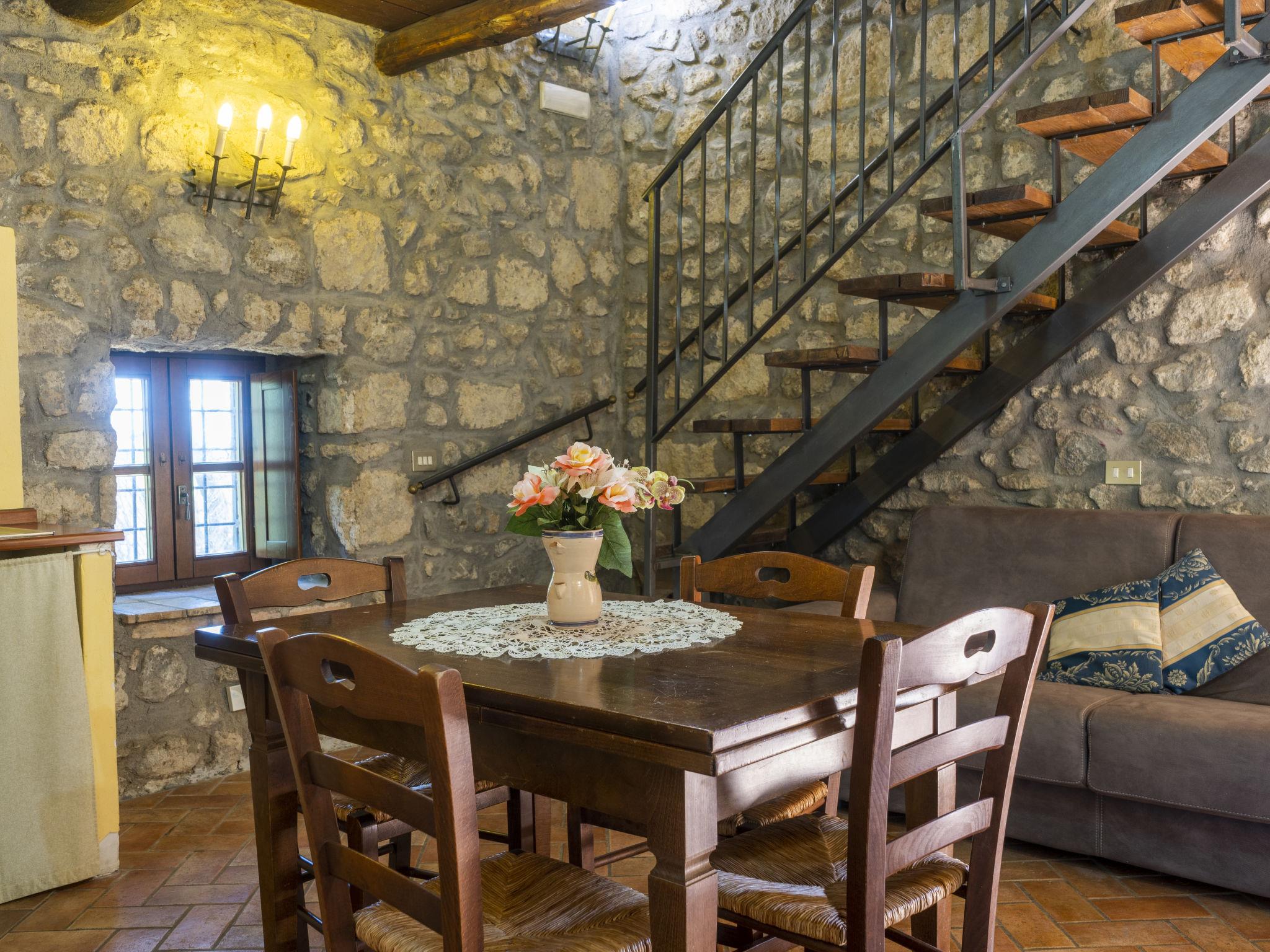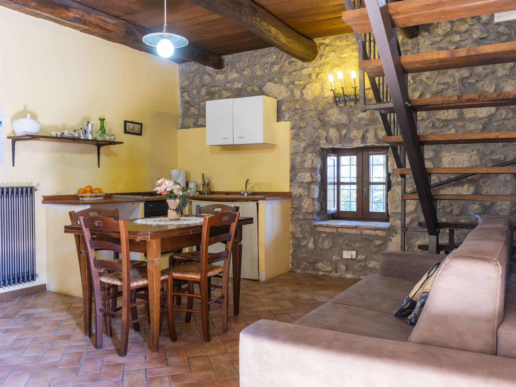 "La Capraccia", 2-room apartment 70 m2 on 2 levels. Renovated, rustic furnishings: upper floor: living/sleeping room with 1 double sofabed, dining table and satellite TV. Kitchenette (oven, 4 gas rings, kettle, freezer, electric coffee machine). Shower/WC. 2nd upper floor: 1 room with 1 double sofabed and 1 french bed (160 cm). Shower/WC. Gas heating. Patio. Terrace furniture. Facilities: safe, iron. Internet (WiFi, free). Please note: non-smoking house. Maximum 1 pet/ dog allowed. IT056003B55N8AGTOO