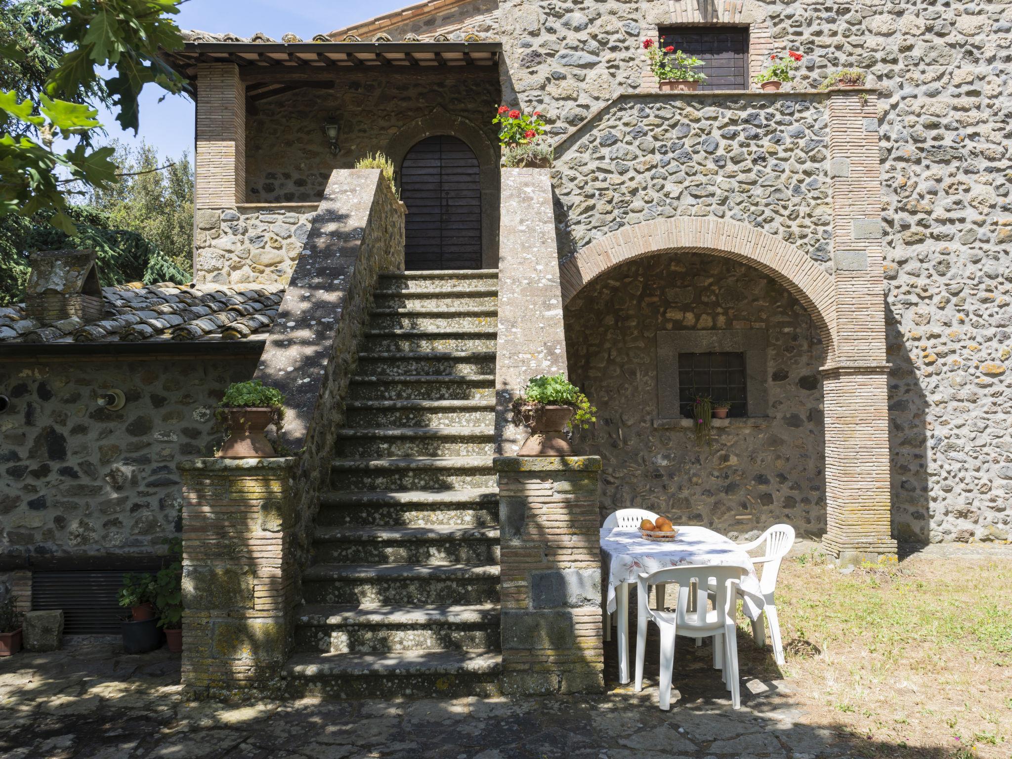 Country house "La Capraccia". 7 apartments in the residence. 10 km from the centre of Bolsena, 3 km from the centre of Bagnoregio, 100 km from the centre of Roma, 11 km from the lake, in the countryside. For shared use: property 20 ha, well-kept garden with lawn and trees, swimming pool (10 x 5 m, depth 120 - 150 cm, seasonal availability: 16.May. - 26.Sep. pool opening hours: 09:00-19:00). Outdoor shower, barbecue. In the house: washing machine (for shared use). 200 m long motor access (via unmade road). Parking on the premises. Shop 3 km, supermarket 3 km, bus stop 3 km, sandy beach "Lago di Bolsena" 12 km. Golf course (9 hole) 18 km. Please note: Additional accommodations can be booked.