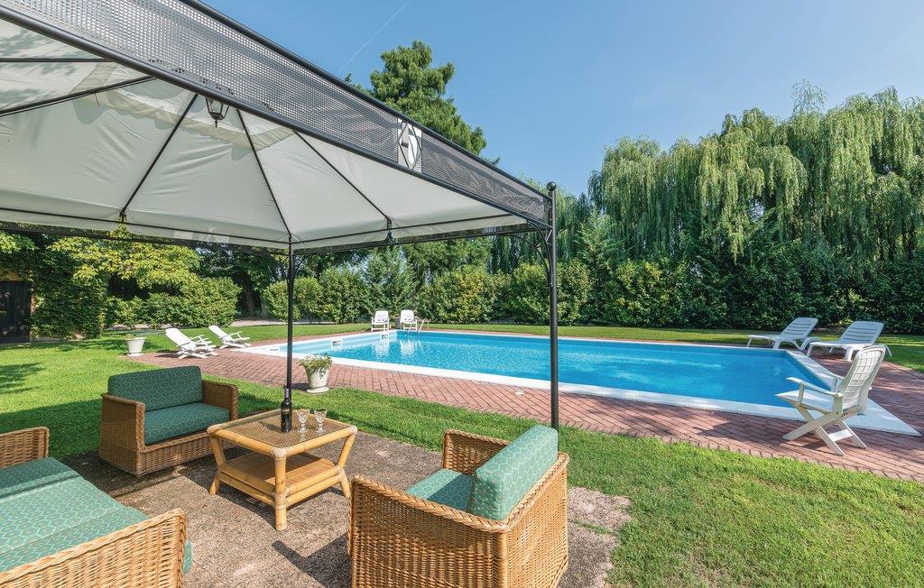 Karakteristisk landhus i Lombardiet, ca. 4 km fra Goito og 15 km fra Mantova, midt i en naturpark blandt marker, hvor I stadig kan iagttage mange fuglearter, f.eks. hejrer. Den smukke by Mantova er et besøg værd, og Gardasøen er nemt at nå i bil. På grunden med en græsplæne findes en swimmingpool og en møbleret pavillon, der står ved siden af poolen. I en separat fløj af bygningen bor viceværten. Indretningen er enkel, og rummer delvist stadig antikviteter. Afstande og tips til udflugter: Goito 4 km (butikker af alle slags), Mantova 15 km, golfbane 26 km, Peschiera del Garda og flere steder ved Gardasøen 28 km, Verona (amfiteater, Piazza Erbe) 30 km, Padua (Sankt Antonius’ basilica) 92 km. Der er 120 km til den vidunderlige, romantiske by Venedig.