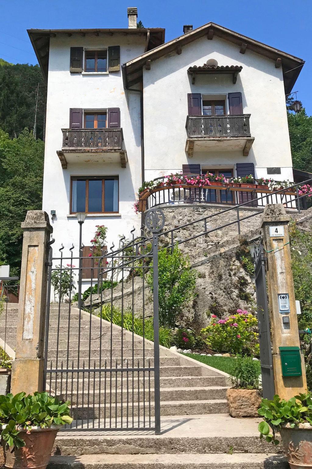 Old single-family house "Gemma", from the 19th century. In the hamlet Pieve, in a sunny position, traffic calmed area, 300 m from the lake. Private: property with trees. Stepped path (38 steps) to the house. Public parking 50 m. Supermarket, restaurant, bar 400 m, bicycle rental 500 m, bus stop 550 m, shingle beach 400 m. Cycle lane 500 m. Well-known lakes can easily be reached: Garda 17 km, Idro 26 km. Please note: car recommended. The keys‘ handover takes place by the agency Ledro in Molina, 6 km.