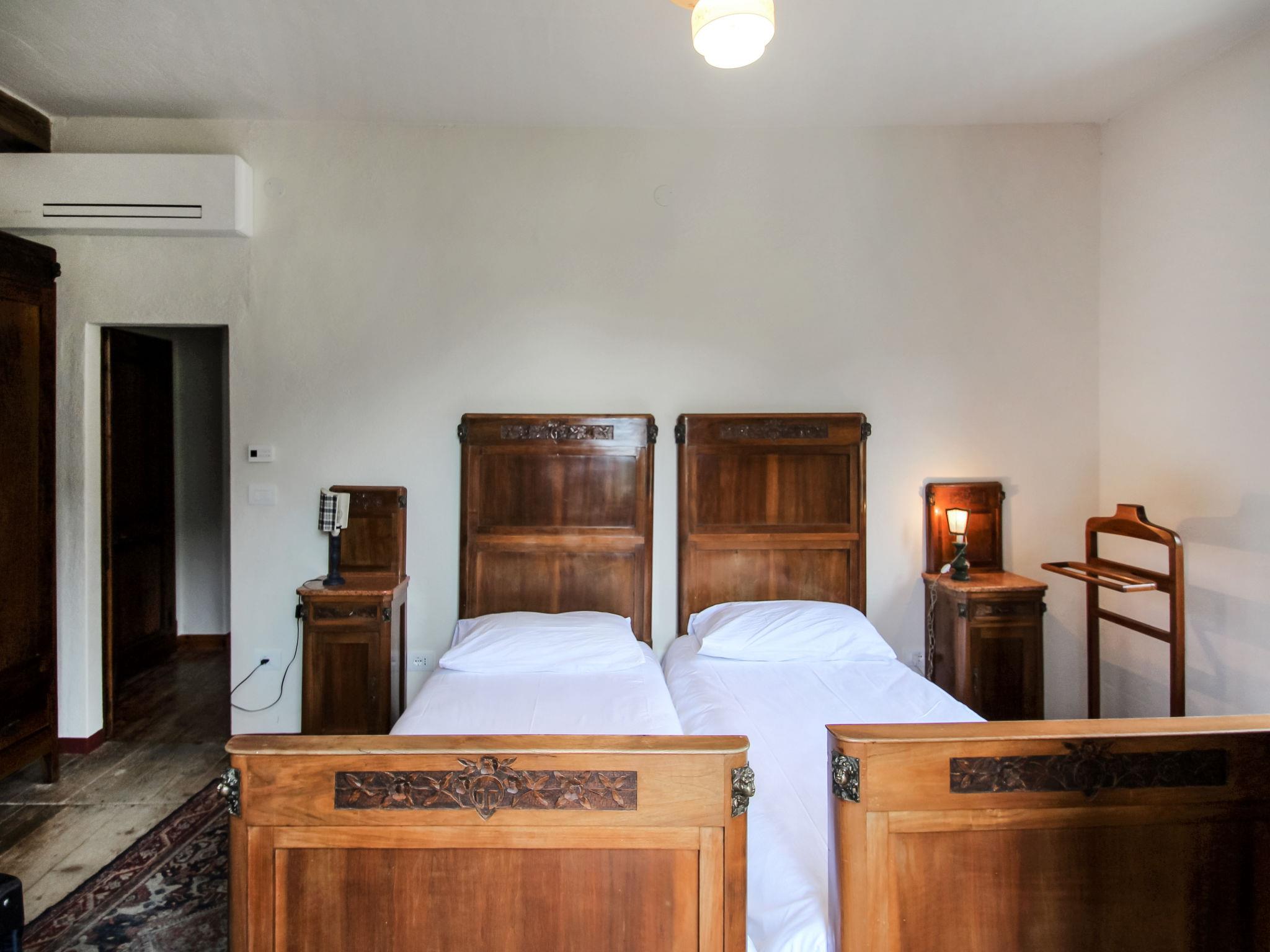7-room house 200 m2 on 3 levels. Rustic and antique furnishings: large living/dining room with 1 sleeping facility (length 180 cm), TV. Exit to the terrace. Kitchen (oven, 4 induction hot plates, microwave, freezer). Sep. WC. Upper floor: 2 small rooms, each room with 1 bed. 3 rooms, each room with 2 beds. 2 showers/bidet/WC. 2nd upper floor: 1 double bedroom with shower/WC. Heating (extra). Wooden floors. 2 balconies, large terrace 40 m2. Terrace furniture, barbecue. Beautiful view of the lake and the mountains. Facilities: baby cot for up to 3 year olds. Internet (WiFi, free). Maximum 2 pets/ dogs allowed. IT022229C2RRSNK7SF