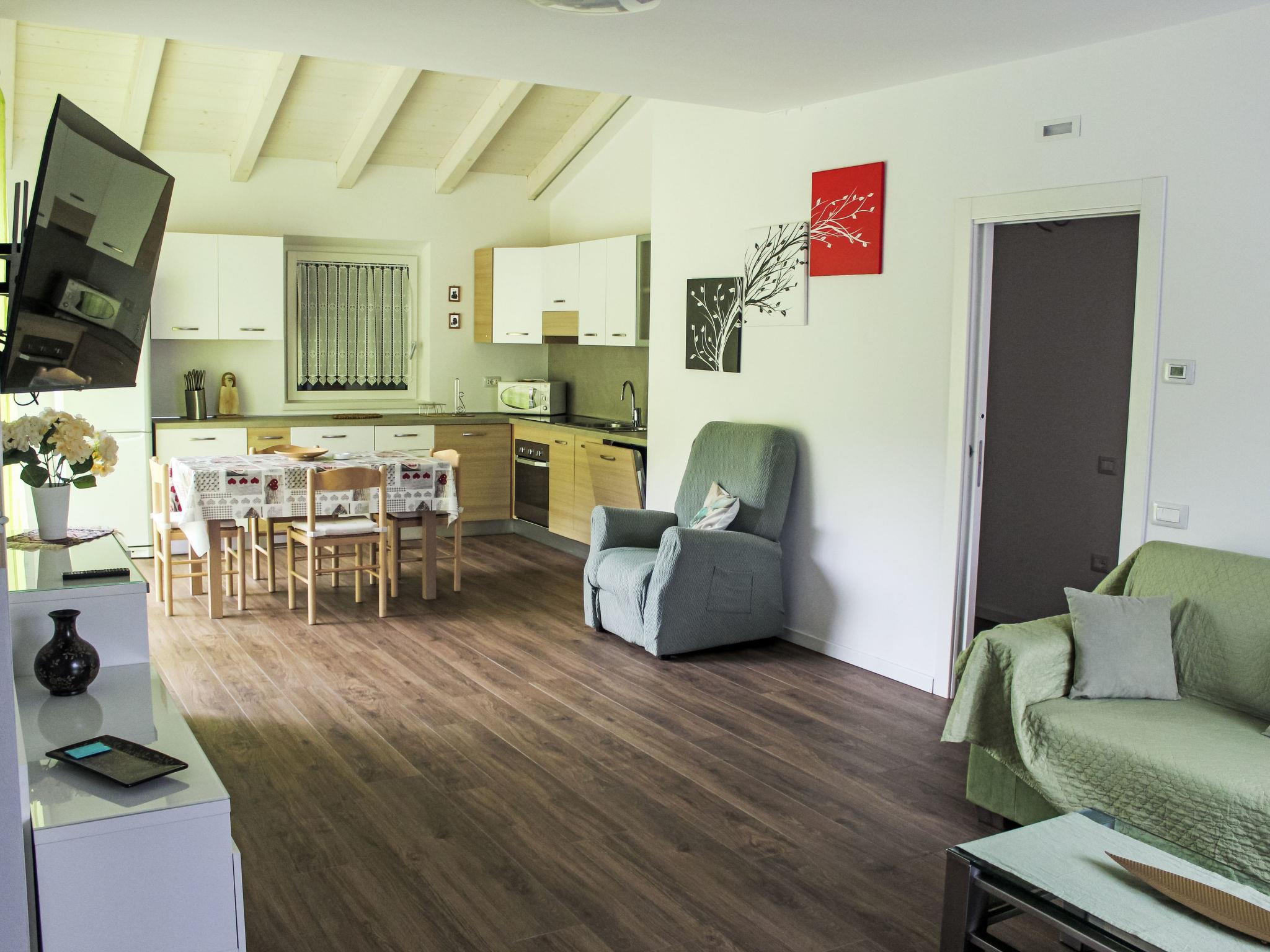 "Appartamenti Lilia n°6", 3-room apartment 100 m2 on 2 levels on 1st floor. Stylish furnishings: living/sleeping room with dining table and TV. Exit to the balcony. 1 room with 1 double bed and TV. 1 room with 2 beds. Open kitchen (oven, dishwasher, 4 induction hot plates, kettle, microwave, freezer, electric coffee machine). 2 showers/bidet/WC. Underfloor heating. Upper floor: (steep stair) open gallery with sloping ceilings with rooflight with 2 beds. Balcony. Balcony furniture. Beautiful view of the mountains and the swimming pool. Facilities: washing machine, children's high chair, baby cot, hair dryer. Internet (WiFi, free). Please note: non-smokers only. Maximum 2 pets/ dogs allowed. Smoke alarm, fire extinguisher. IT022229C2L8QSKY79