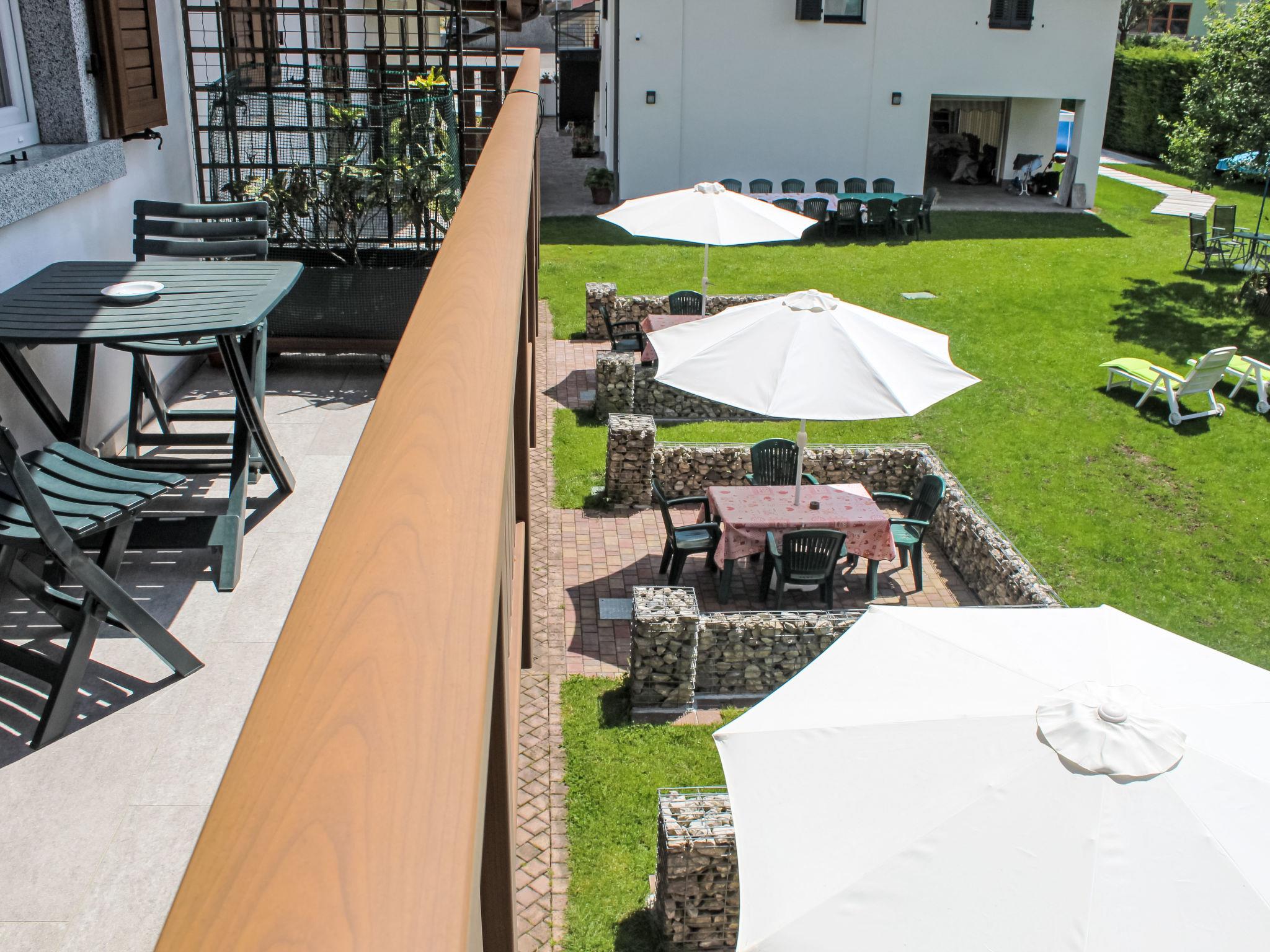 "Appartamenti Lilia n°4", 3-room apartment 70 m2 on 1st floor. Stylish furnishings: living/dining room with sloping ceilings with dining table and TV. With sloping ceilings, 1 room with 1 bed and 1 x 2 bunk beds. With sloping ceilings, 1 room with 1 double bed. Open kitchen (oven, dishwasher, Gas stove, 4 gas rings, kettle, microwave, freezer, electric coffee machine). Shower/bidet/WC. Underfloor heating. Balcony. Balcony furniture. Beautiful view of the mountains and the garden. Facilities: washing machine, children's high chair, baby cot, hair dryer. Internet (WiFi, free). Please note: non-smokers only. Maximum 2 pets/ dogs allowed. Smoke alarm, fire extinguisher. Bed layout is flexible. There are more sleeping options available than the maximum number of people allowed which may, however, not be exceeded. IT022229C24HGBK5S9