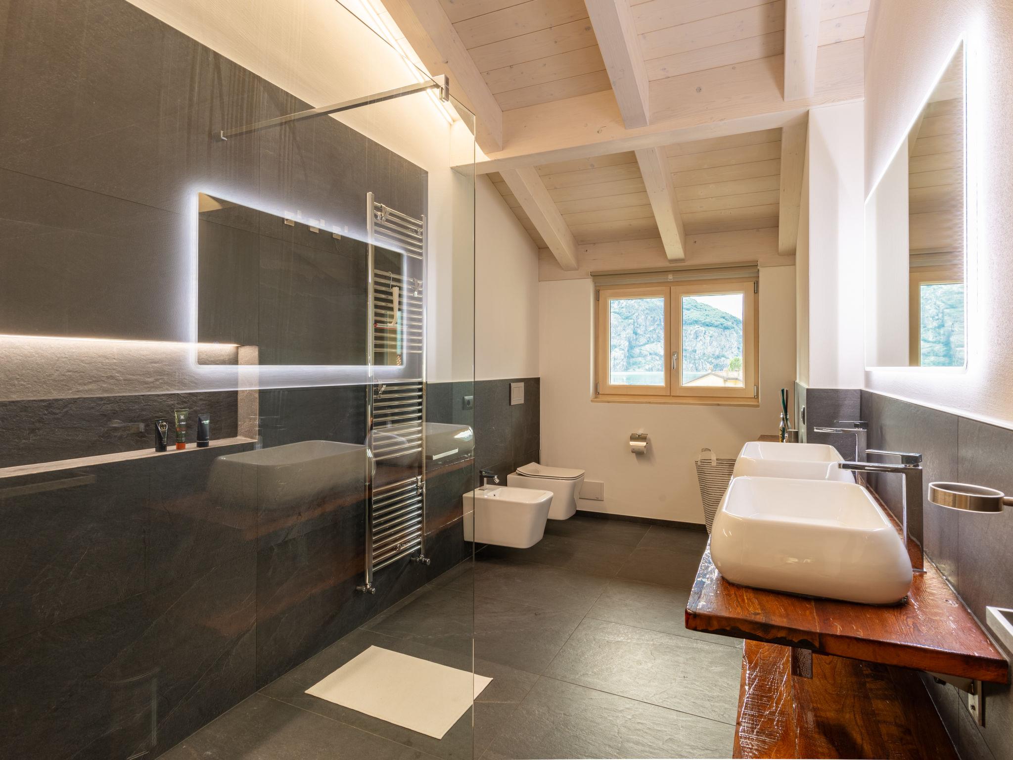 4-room apartment 100 m2 on 2nd floor. Comfortable and modern furnishings: open living/sleeping room with 1 double sofabed, dining table and digital TV. Exit to the garden, to the balcony. 1 double bedroom. Exit to the balcony. 1 large double bedroom. 1 room with 1 bed and 1 pull-out bed. Open kitchen (oven, dishwasher, 4 induction hot plates, toaster, kettle, electric coffee machine, Capsules for coffee machine (Nespresso) extra). 2 showers/bidet/WC. Gas heating, floor heating. Heating available only from 15.10. to 15.04. 3 balconies, patio. Terrace furniture, balcony furniture, barbecue, deck chairs (2). Beautiful view of the lake, the mountains and the resort. Facilities: children's high chair, baby cot for up to 2 year olds, hair dryer. Internet (WiFi, free). Parking (3 cars) at the house. Please note: non-smokers only. Private entrance, smoke alarm, fire extinguisher. IT014075C2P5GZ337D