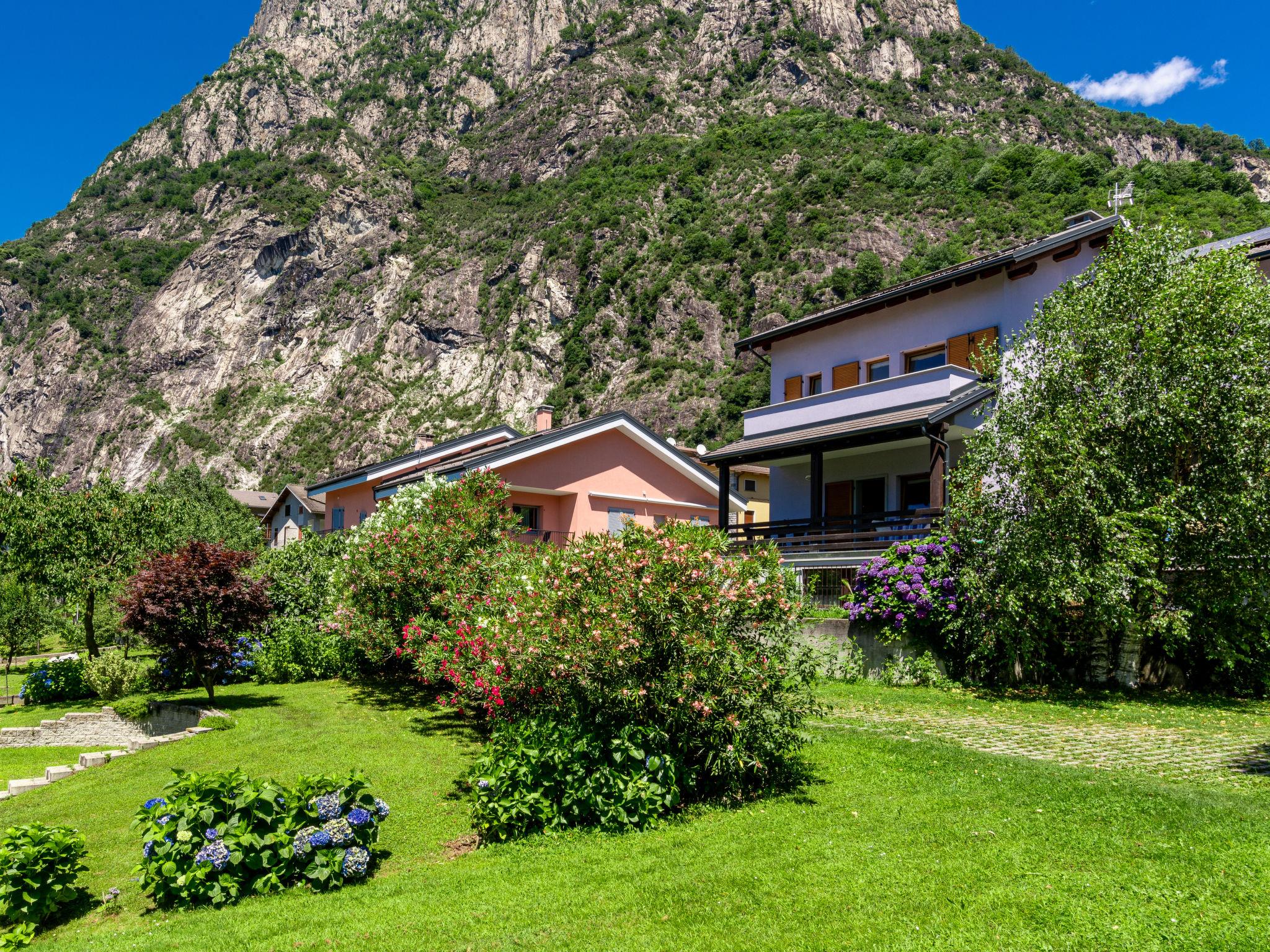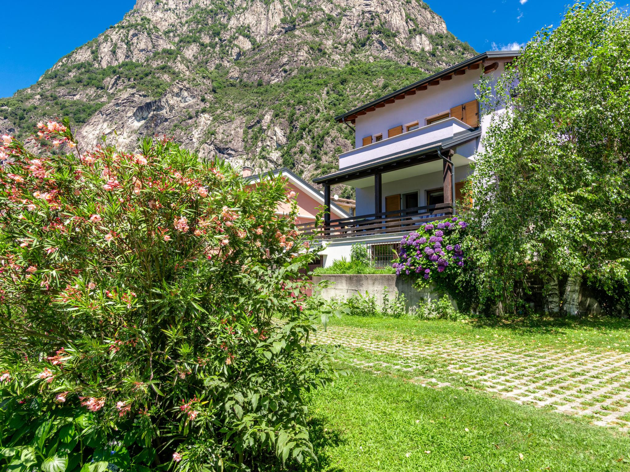 2-family house "Angelina House", 2 storeys, semi-detached, renovated. In the district of Mezzolpiano 1 km from the centre of Novate, 13.5 km from the centre of Chiavenna, 70 km from the centre of Como, residential area (villas), 1.5 km from the lake, 80 m from the river. Private: property 100 m2 with lawn and flowers, parking on the premises, public parking on the road. Supermarket 350 m, bus stop 1 km, railway station "Novate Mezzola" 1 km, sandy beach "Lido di Novate" 1.5 km pebble beach "La Punta (Lago di Como)" 12 km, indoor swimming pool 13 km. Marina 1.5 km, golf course (18 hole) 45 km, children's playground 1.9 km, fishing possibilities 1.5 km. Nearby attractions: Chiesa di San Giorgio di Cola, Tempieto di San Fedelino. Well-known ski regions can easily be reached: Madesimo. Well-known lakes can easily be reached: Lago di Como. Hiking paths: Tracciolino, Val Codera, Monte Berlinghera. Please note: car recommended.