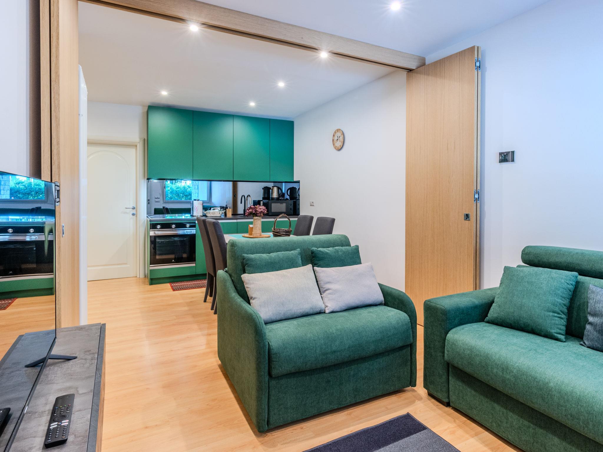 2-room apartment 50 m2, on the ground floor. Comfortable furnishings: living/sleeping room with 1 double sofabed and TV. Exit to the terrace. 1 room with 1 double bed. Open kitchen (oven, dishwasher, 4 induction hot plates, toaster) with dining table. Shower/bidet/WC. Gas heating. Heating available only from 15.10. to 15.04. Patio. Terrace furniture, barbecue, deck chairs (2). Facilities: washing machine, hair dryer. Internet (WiFi, free). Parking (2 cars). Please note: non-smokers only. Maximum 1 pet/ dog allowed. Private entrance, fire extinguisher. IT014075C2ZMSCYVNP