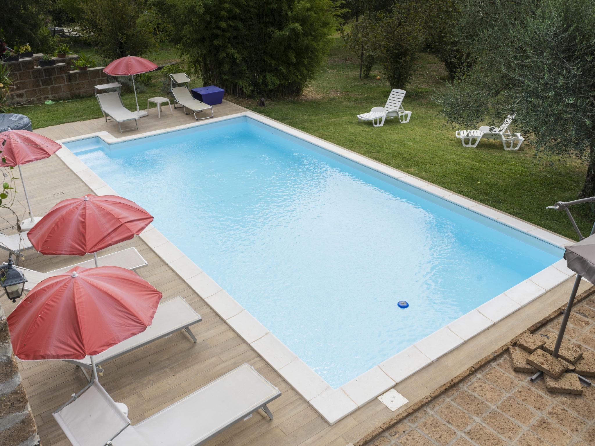 Cottage "Casale Ai Noccioli", detached. 2 km from the centre of Corchiano, 30 km from the centre of Viterbo, 65 km from the centre of Roma, 20 km from the lake, in the countryside. For shared use: natural state property 18'000 m2, terraced garden with trees, meadow, swimming pool (11 x 5 m, depth 150 cm, seasonal availability: 23.May. - 03.Oct.) with salt-electrolysis pool-cleaning system. Outdoor shower, table tennis, pool maintenance by the owner/gardener. In the house: table football. 250 m long narrow motor access (via unmade road). Parking at the house. Supermarket 2 km, bus stop 700 m, sandy beach "Lago di Vico" 20 km. Please note: the owner lives on the same property.