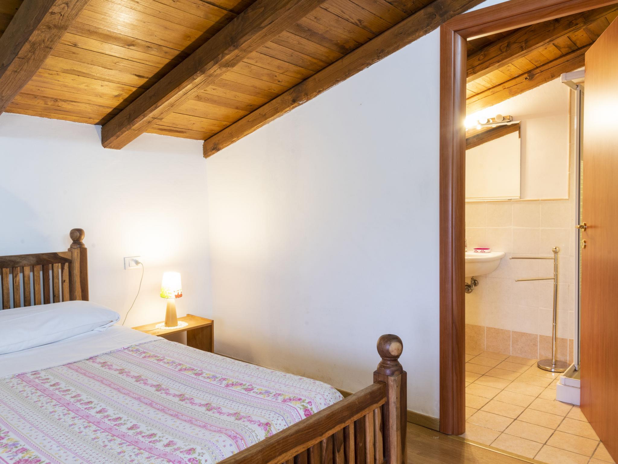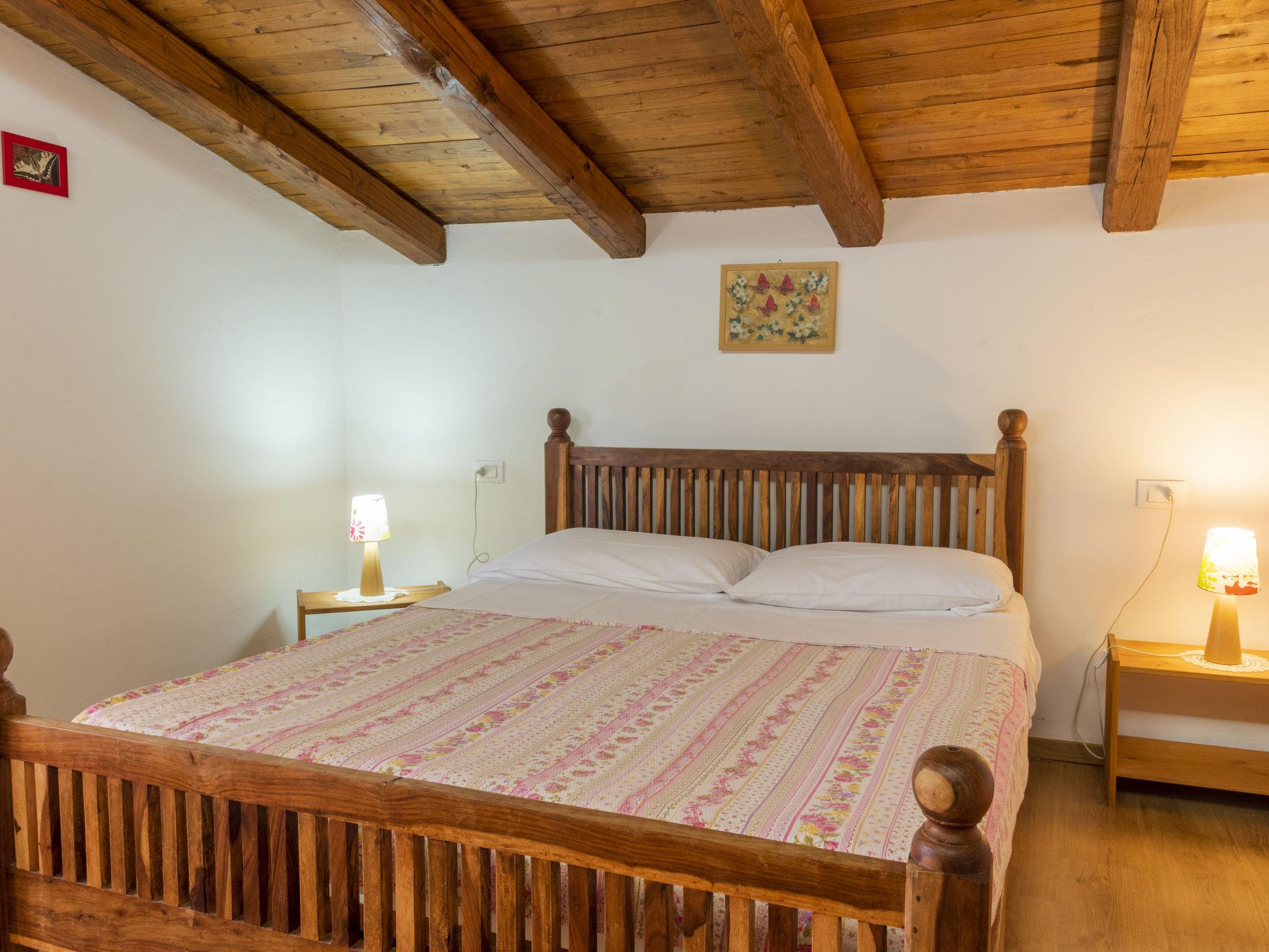 "Il Nocciolo 2", 5-room apartment 100 m2 on 1st floor. Bright, simple and comfortable furnishings: living/dining room with open-hearth fireplace, kitchen corner, TV and flat screen. 4 rooms with sloping ceilings, each room with 1 french bed (length 160 cm), shower/bidet/WC and gas heating. Exit to the garden. 1 room with sloping ceilings with 1 bed (length 120 cm), shower/bidet/WC. Kitchenette (oven, 4 gas rings, freezer). Facilities: children's high chair, baby cot, hair dryer. Internet (WiFi, free). Please note: non-smoking house. Maximum 1 pet/ dog allowed. IT056023B4F3JCHH9J