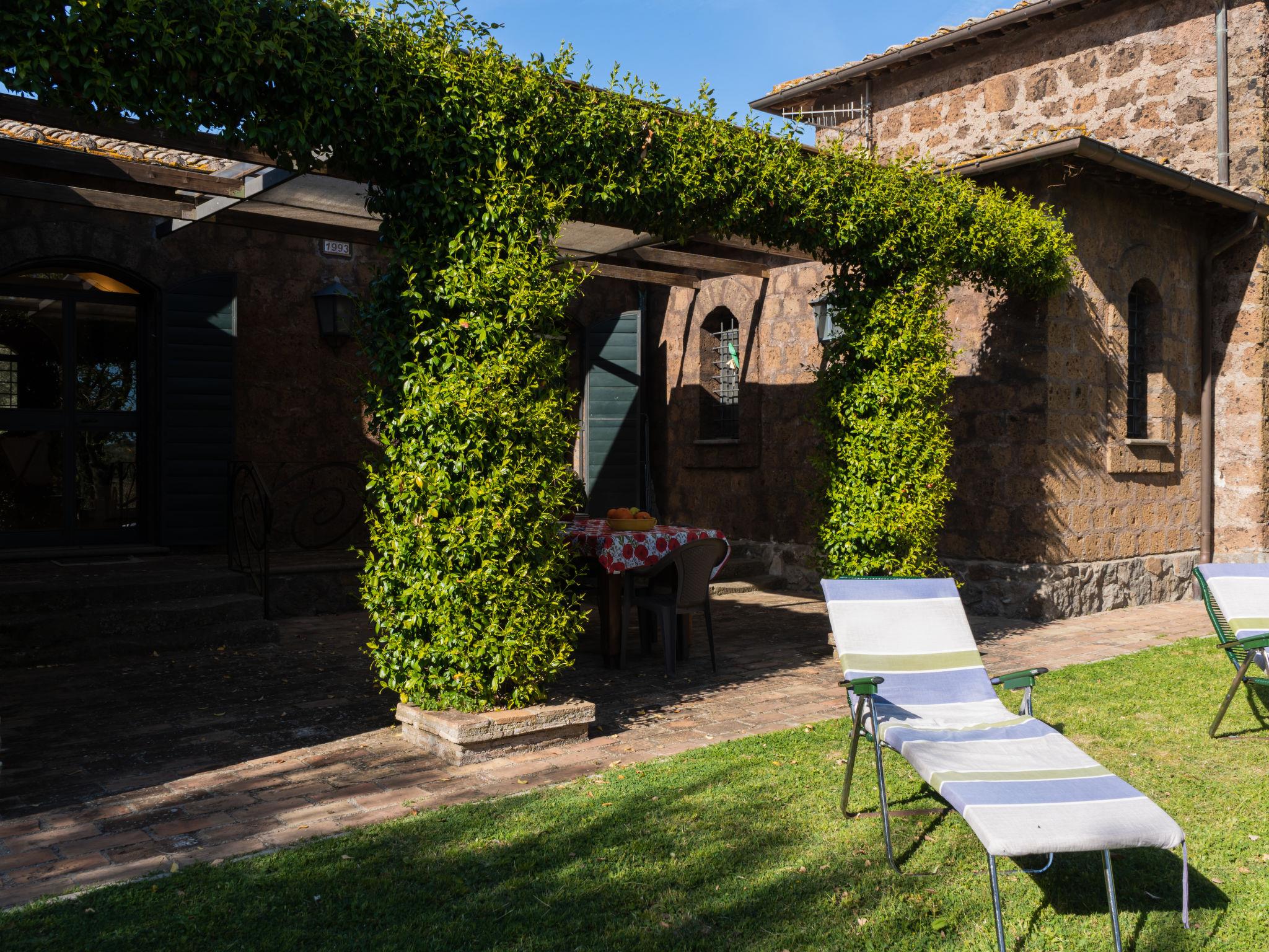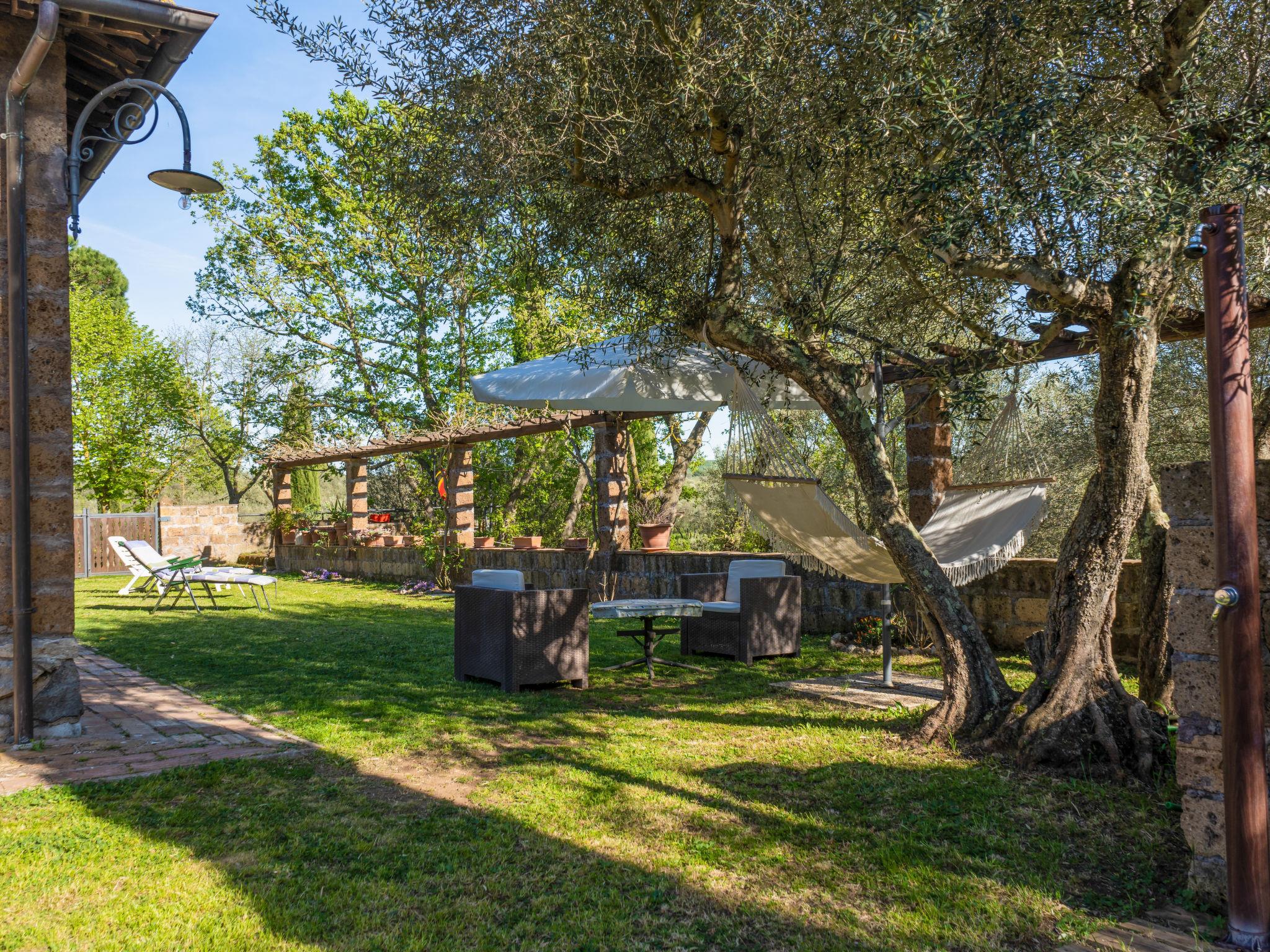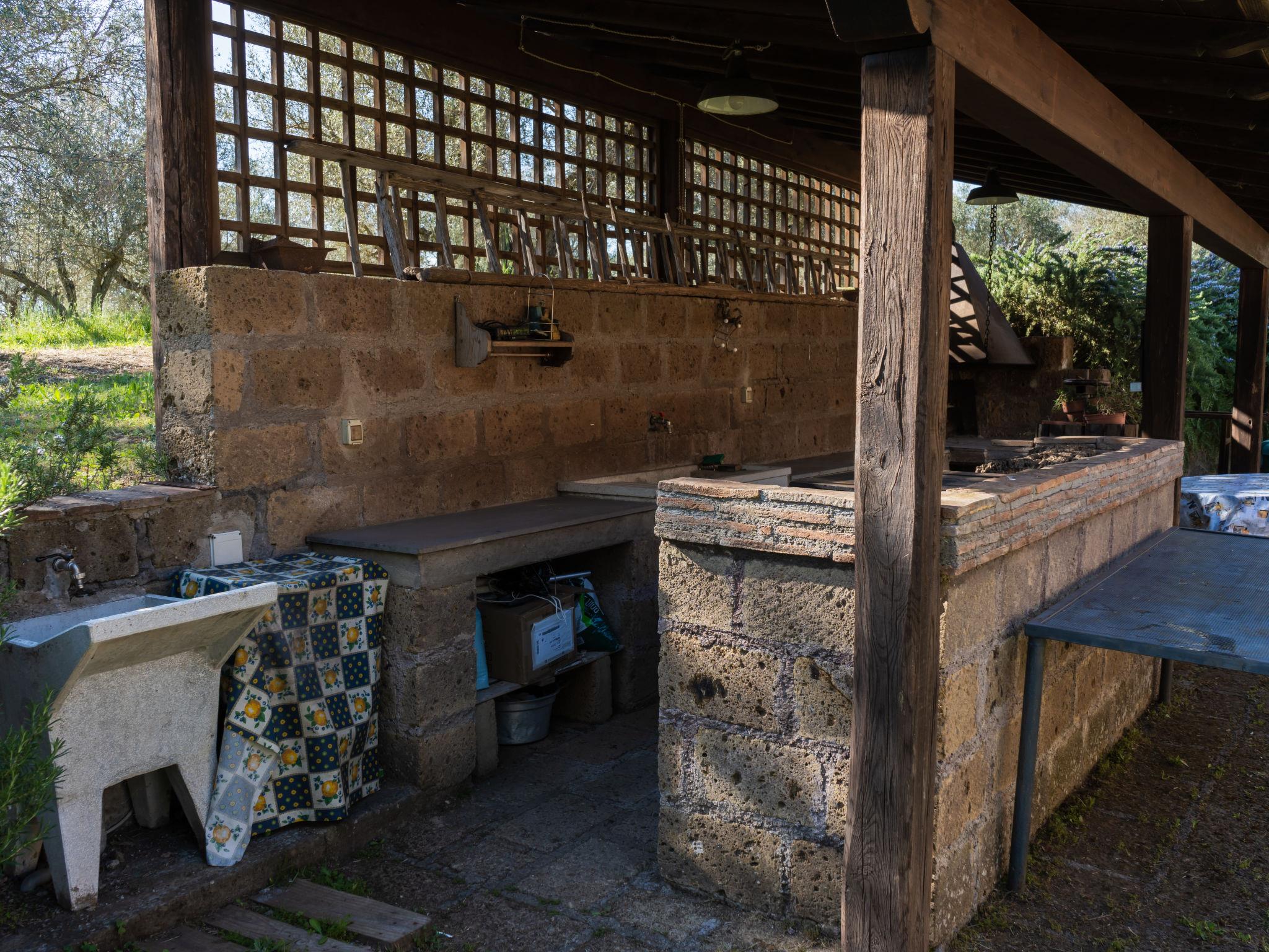 Cosy, comfortable country house "Casale Di Befania", detached, surrounded by trees and fields. 5 km from the centre of Vetralla, in a secluded position, 35 km from the sea, 15 km from the lake. For shared use: property 3 ha. Private: garden 700 m2 (fenced), swimming pool (above ground) round (3,66 m diameter, depth 100 - 100 cm, seasonal availability: 01.Jun. - 01.Oct.). Outdoor shower, garden furniture, barbecue house. In the house: massage (extra). Motor access (100 m via unmade road). Parking on the premises. Grocery 5 km, supermarket 5 km, restaurant 5 km, bus stop 3 km, thermal baths "Terme dei Papi" 17 km, lake Bracciano/Bolsena 35 km. Nearby attractions: Viterbo 18 km, Sutri 20 km, Tarquinia 28 km. Please note: car recommended. The owner does not accept any youth groups. The tap water has no drinking water quality.