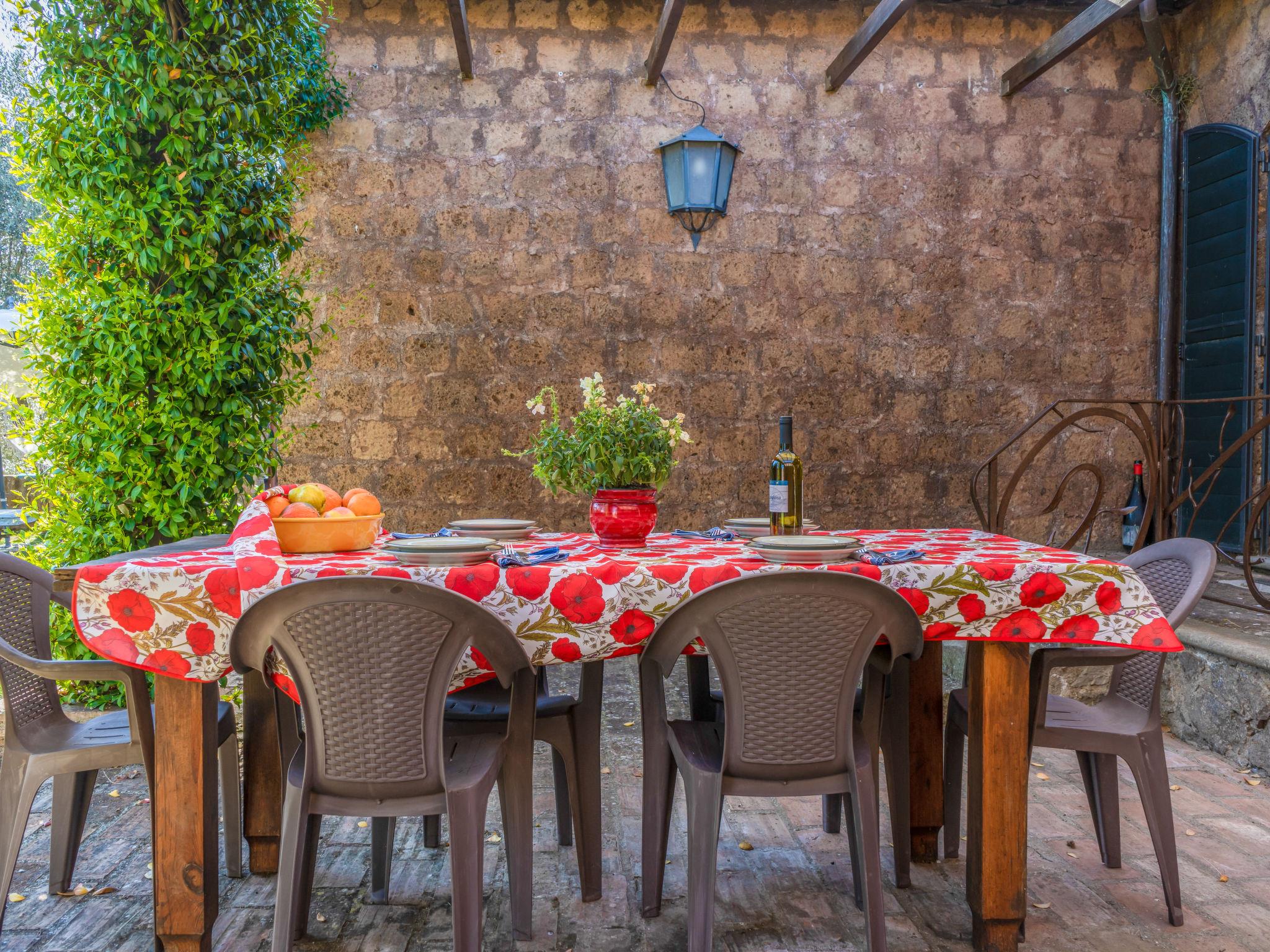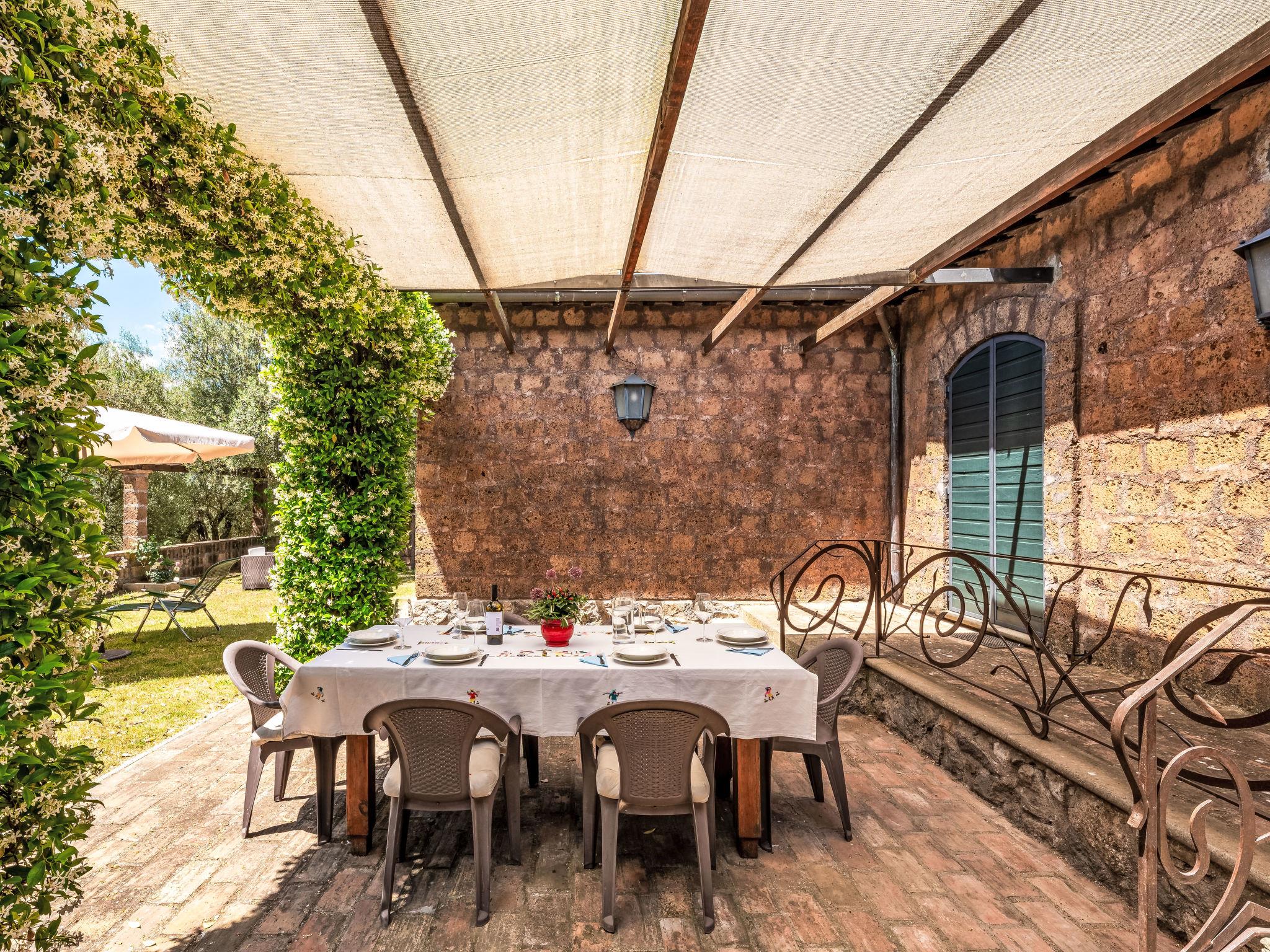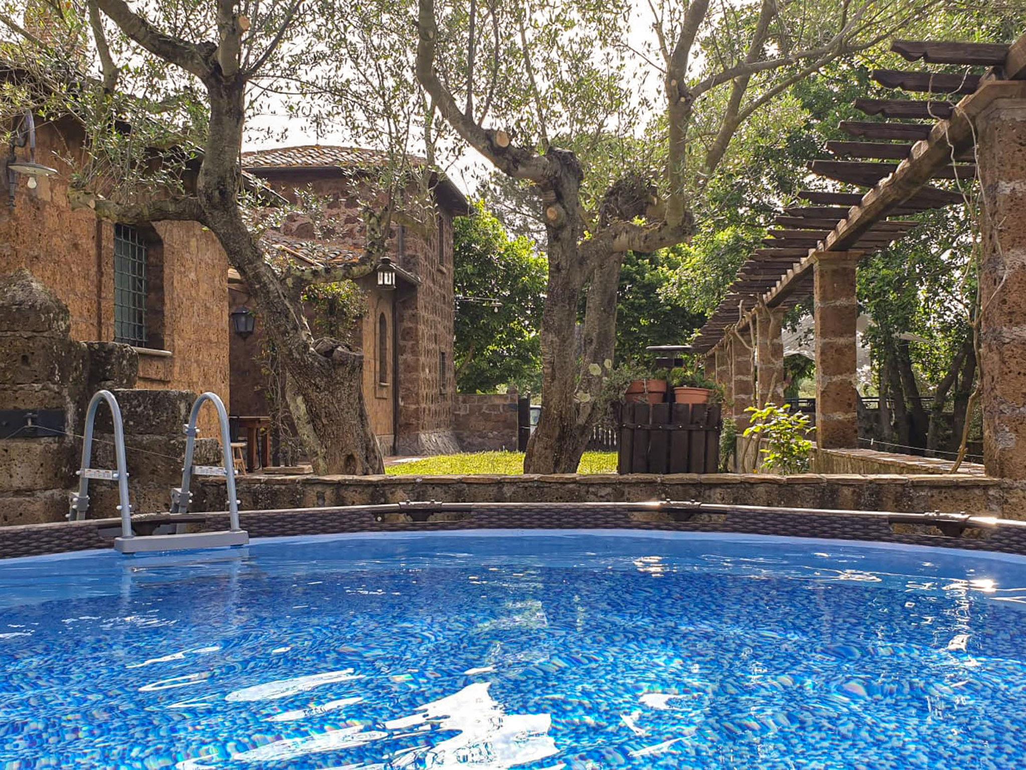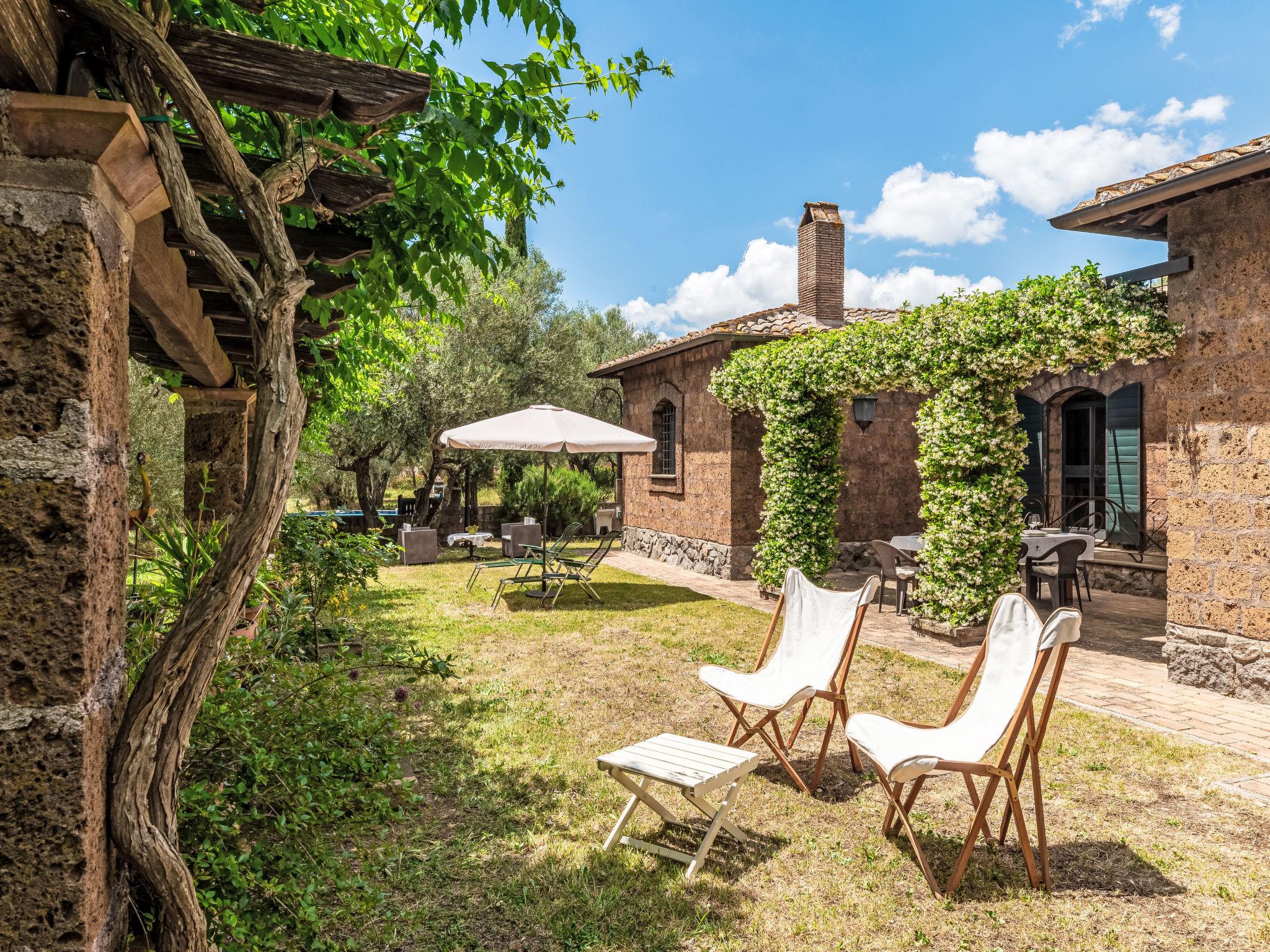 Cosy, comfortable country house "Casale Di Befania", detached, surrounded by trees and fields. 5 km from the centre of Vetralla, in a secluded position, 35 km from the sea, 15 km from the lake. For shared use: property 3 ha. Private: garden 700 m2 (fenced), swimming pool (above ground) round (3,66 m diameter, depth 100 - 100 cm, seasonal availability: 01.Jun. - 01.Oct.). Outdoor shower, garden furniture, barbecue house. In the house: massage (extra). Motor access (100 m via unmade road). Parking on the premises. Grocery 5 km, supermarket 5 km, restaurant 5 km, bus stop 3 km, thermal baths "Terme dei Papi" 17 km, lake Bracciano/Bolsena 35 km. Nearby attractions: Viterbo 18 km, Sutri 20 km, Tarquinia 28 km. Please note: car recommended. The owner does not accept any youth groups. The tap water has no drinking water quality.