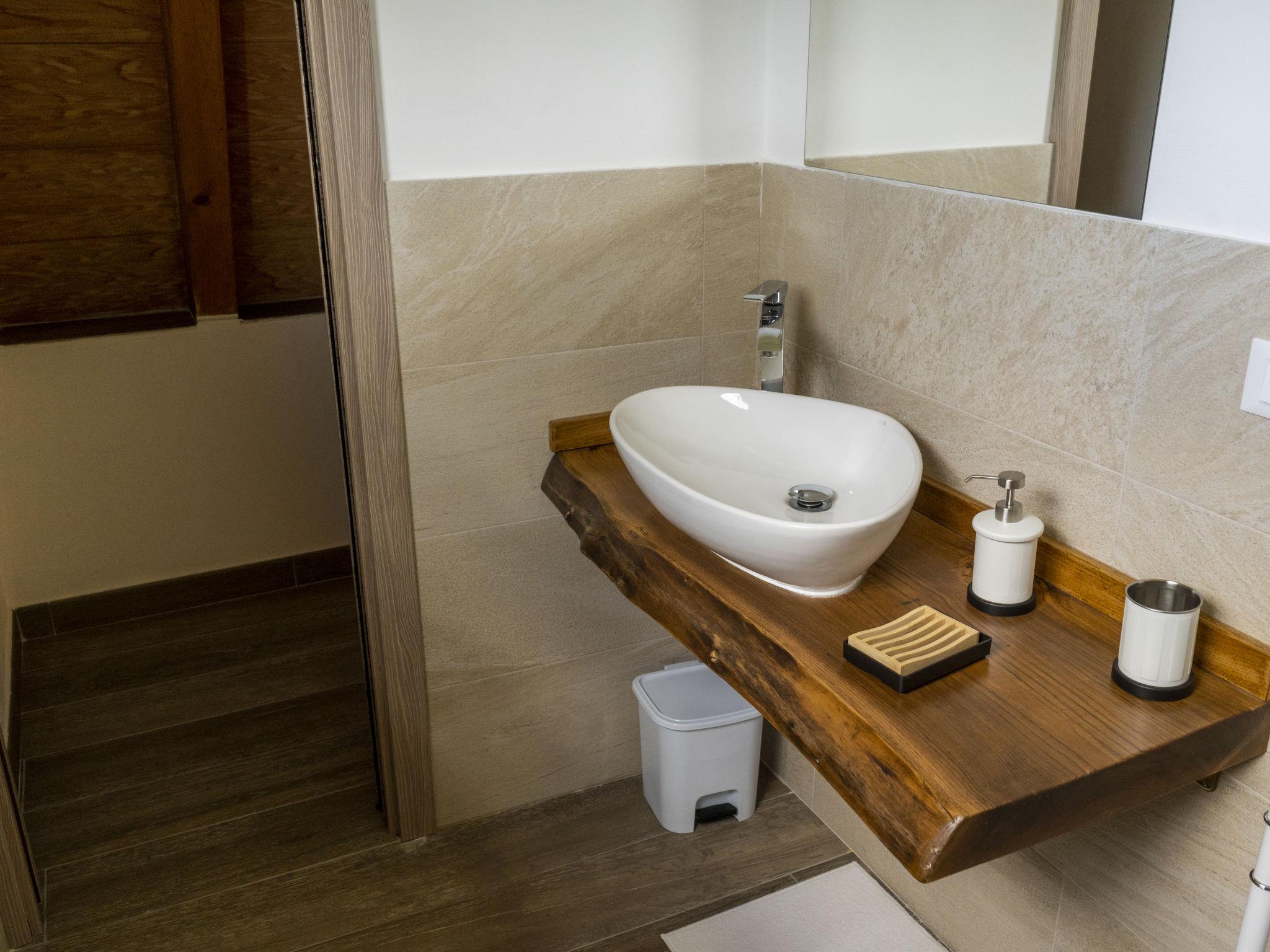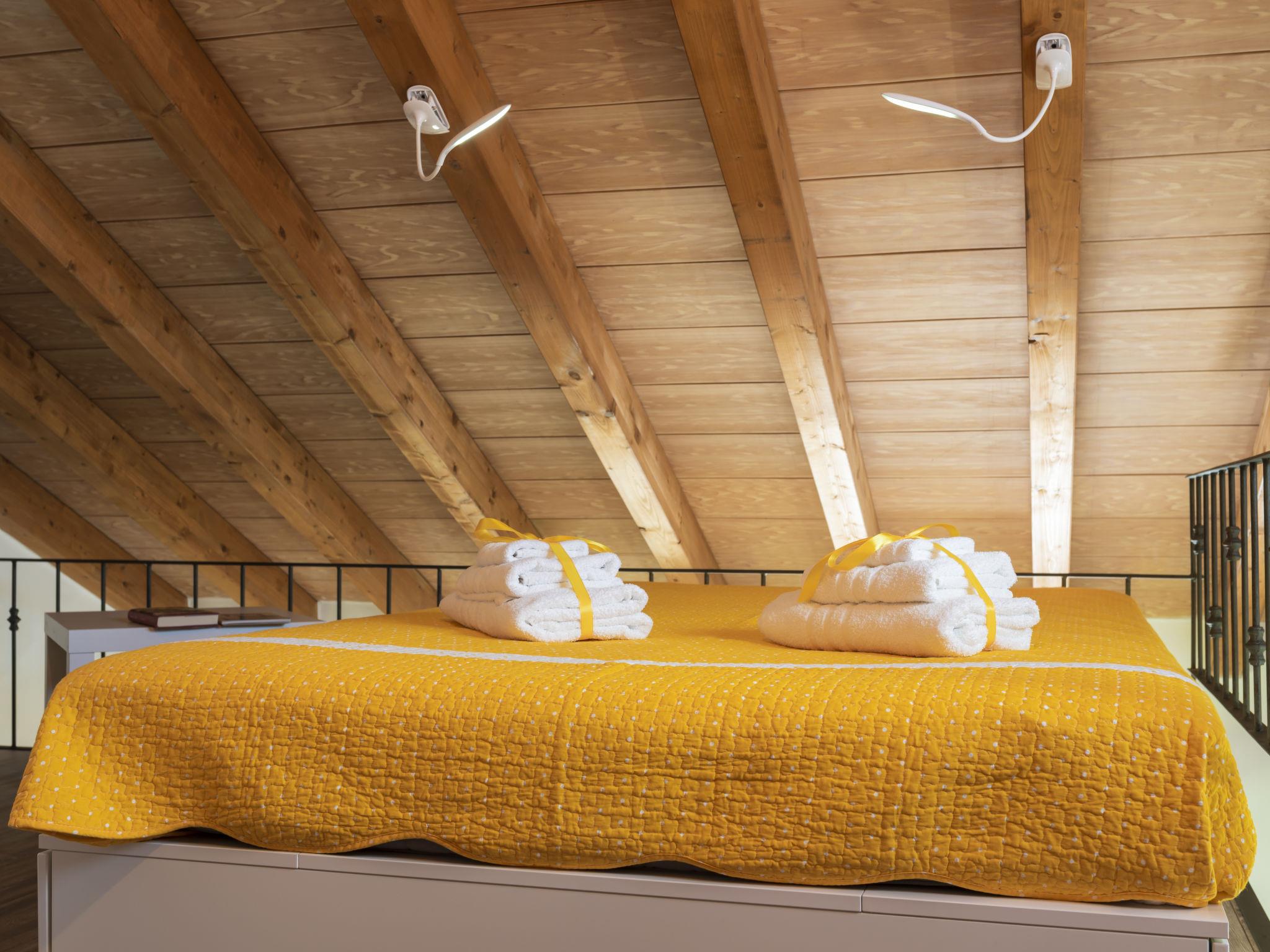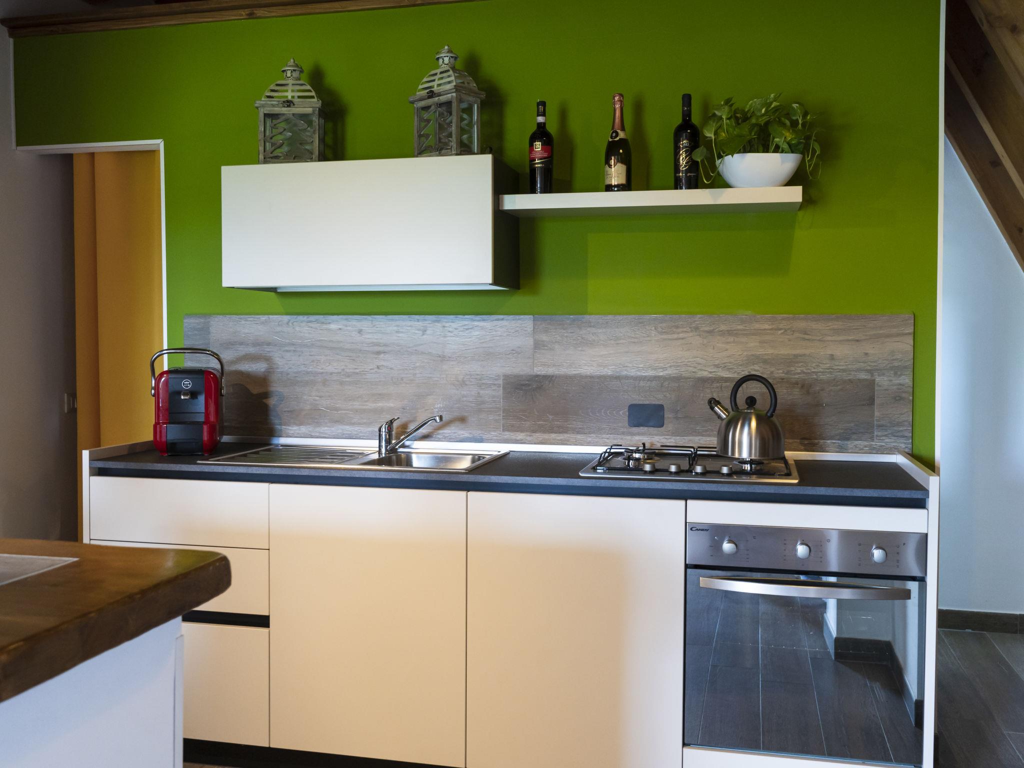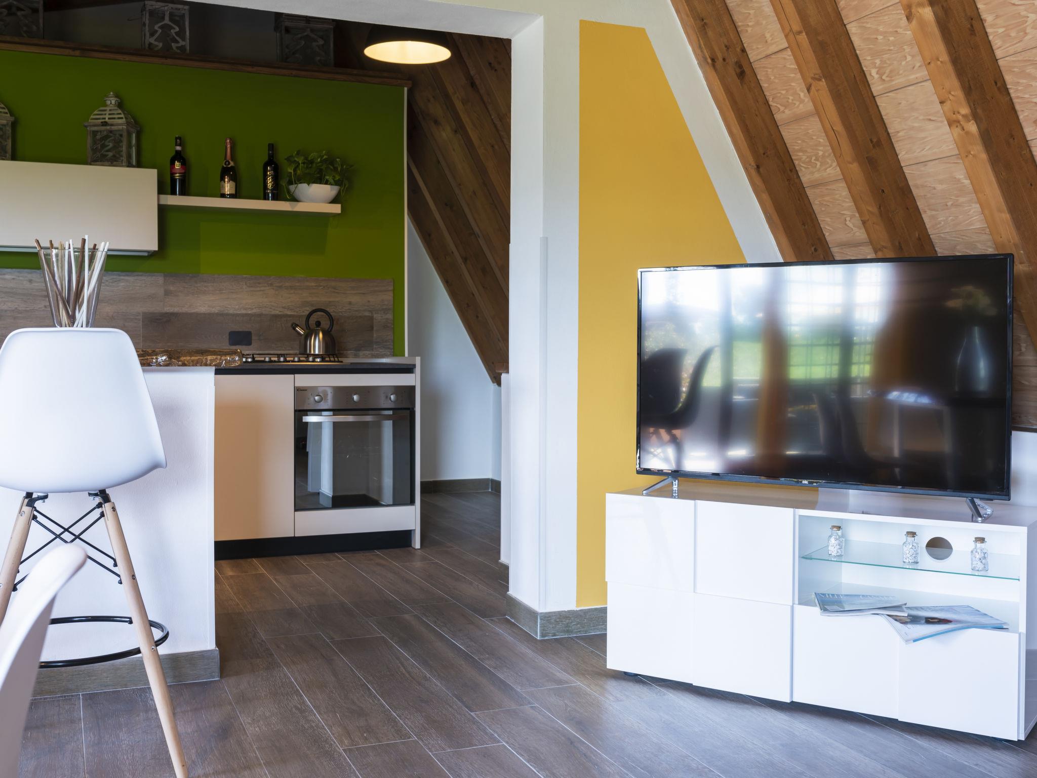 2-room chalet 60 m2 on 2 levels, on the upper ground floor. Modern and stylish furnishings: open living/dining room with 1 double sofabed and TV (flat screen). Exit to the terrace. Open kitchen (oven, dishwasher, 4 gas rings, toaster, freezer, electric coffee machine). Exit to the terrace. Shower/WC. Electric heating, air-conditioning. Upper floor: open gallery with sloping ceilings with 1 double bed (140 cm). Shower/bidet/WC. Terrace 45 m2. Terrace furniture. Beautiful, of the countryside. Facilities: Internet (WiFi). IT056049B5B0XKDC8M