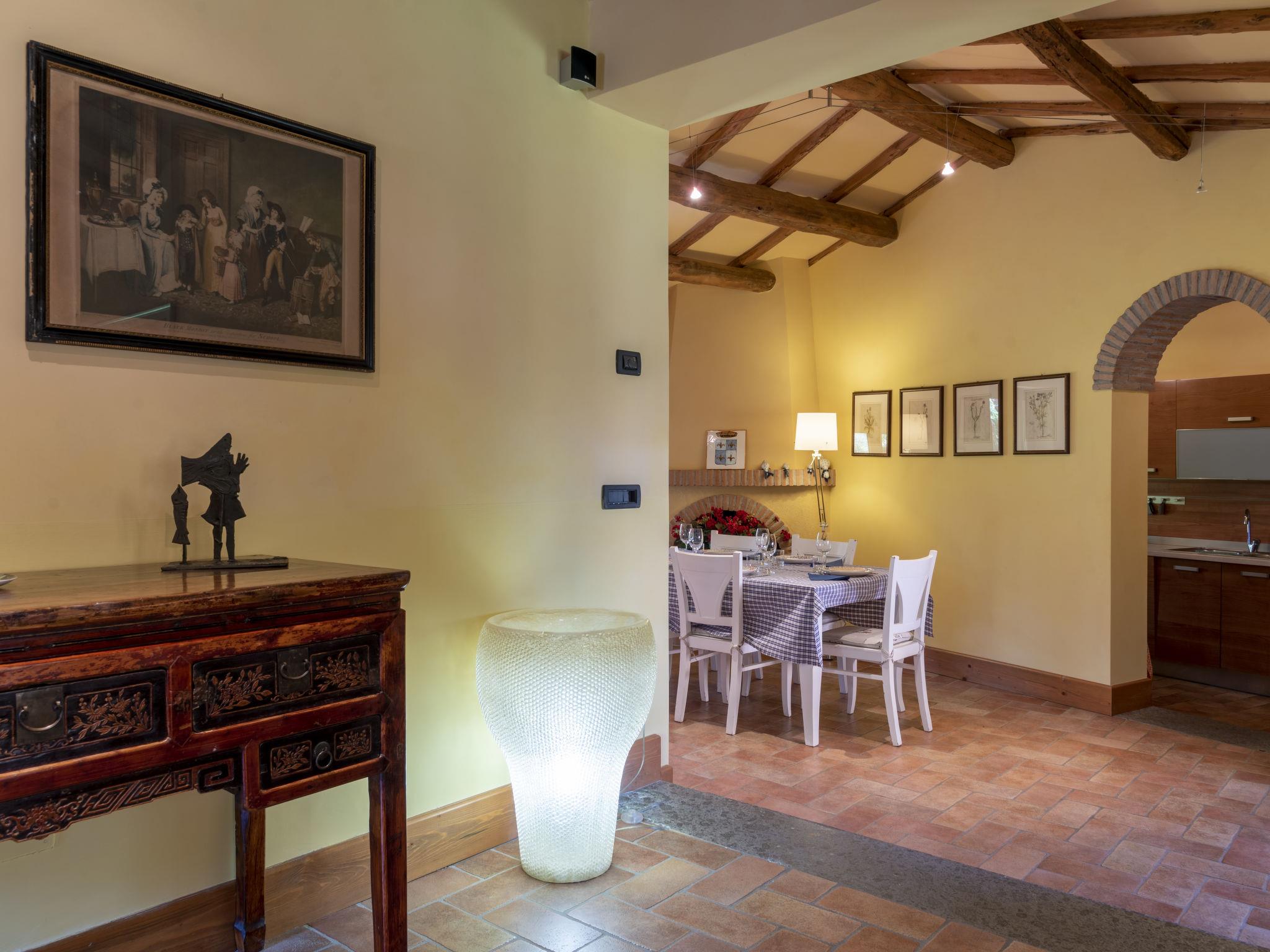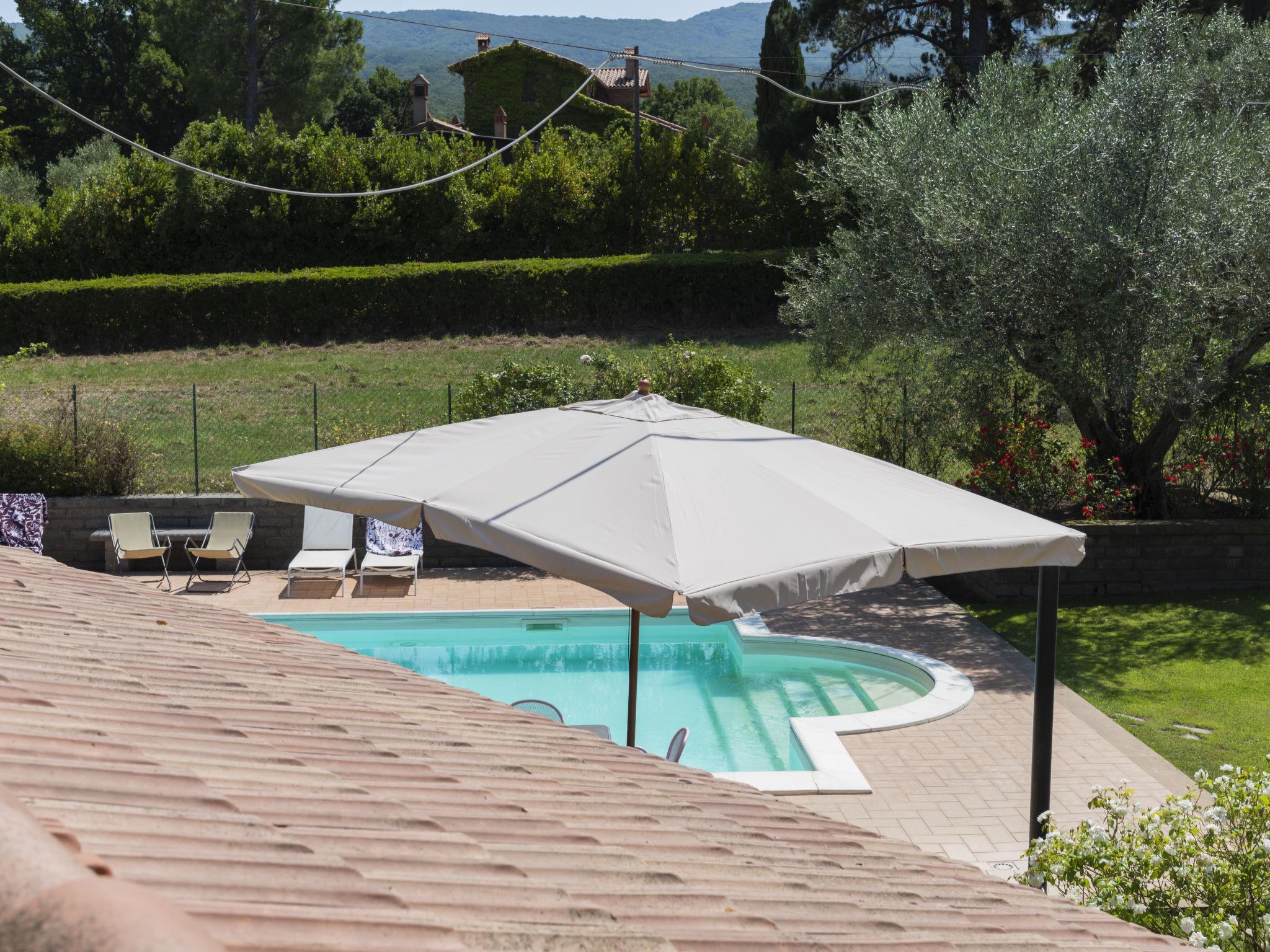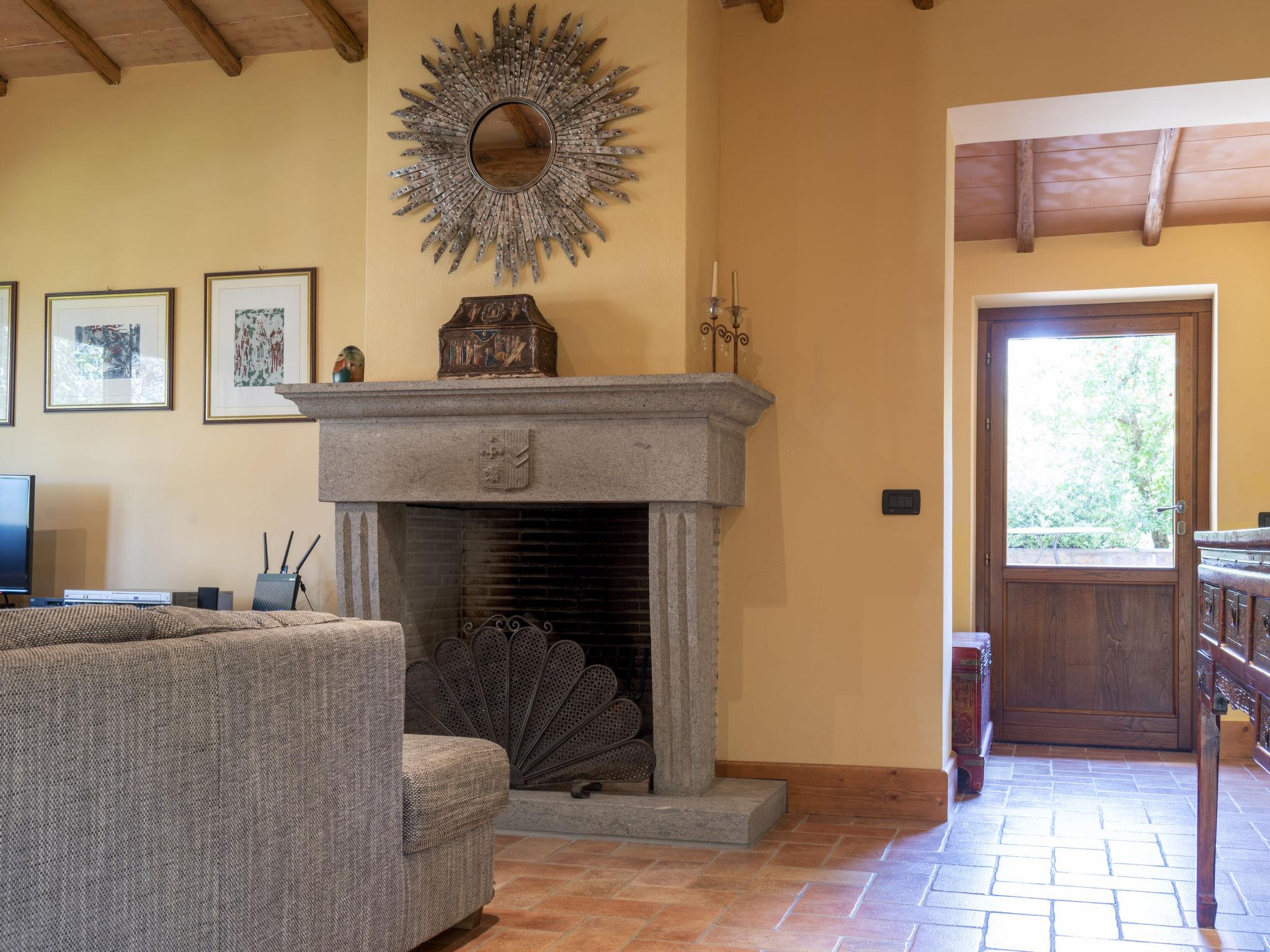 Beautiful, comfortable villa "Casal di Yuri", detached, surrounded by trees. In the district of Tre Croci 5 km from the centre of Vetralla, 16 km from the centre of Viterbo, 70 km from the centre of Roma, 13 km from the lake. Private: well-kept garden 1'500 m2 (fenced) with lawn and wildlife garden, swimming pool (12 x 6 m, seasonal availability: 23.May. - 03.Oct.). Outdoor shower, garden furniture, barbecue, parking at the house on the premises. Shop 100 m, supermarket 4 km, bus stop 1.2 km, railway station "Vetralla" 4 km, sandy beach "Lido di Tarquinia" 40 km, lake Vico 13 km. Golf course (18 hole) 26 km. Nearby attractions: Sutri 20 km, San Martino In Cimino 6 km. Well-known lakes can easily be reached: Bolsena 38 km, Bracciano 31 km. Please note: car recommended. Groups of teenagers on request only. The owner does not accept any youth groups. The owner lives on the same property.