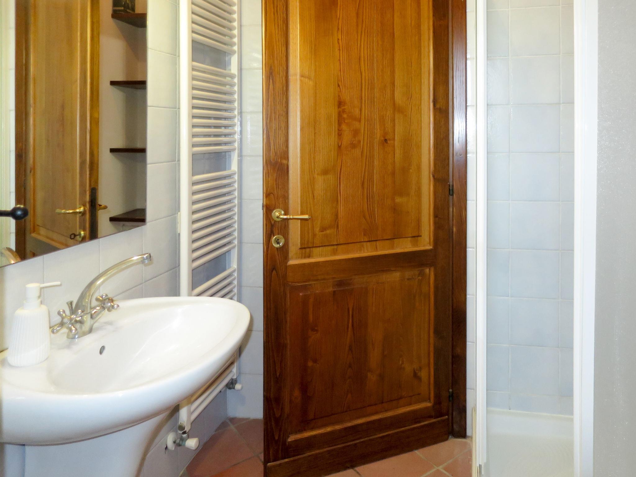 "La Collina Fiorita", 14-room house 550 m2 on 3 levels. Comfortable and rustic furnishings: 1 double bedroom with shower/WC. Living/dining room with kitchen corner, TV and flat screen. Exit to the garden. 3 double bedrooms. Kitchen (oven, dishwasher, 4 gas rings, toaster, microwave, freezer, electric coffee machine, pizza oven). Shower/bidet/WC. Gas heating (extra). Upper floor: living room with kitchen corner and TV (flat screen). Exit to the terrace. 2 double bedrooms. Living room with open-hearth fireplace and kitchen corner. Exit to the terrace. 1 double bedroom. 1 room with 2 beds. 2 showers/bidet/WC. 2nd upper floor: living room with kitchen corner. 1 double bedroom. 1 room with 2 beds. Shower/bidet/WC. Very beautiful, of the countryside. Facilities: washing machine (extra). Maximum 3 pets/ dogs allowed. When there are less than the maximum number of guests staying at the property, not all of the bedrooms will be available for use. IT054040B404006854