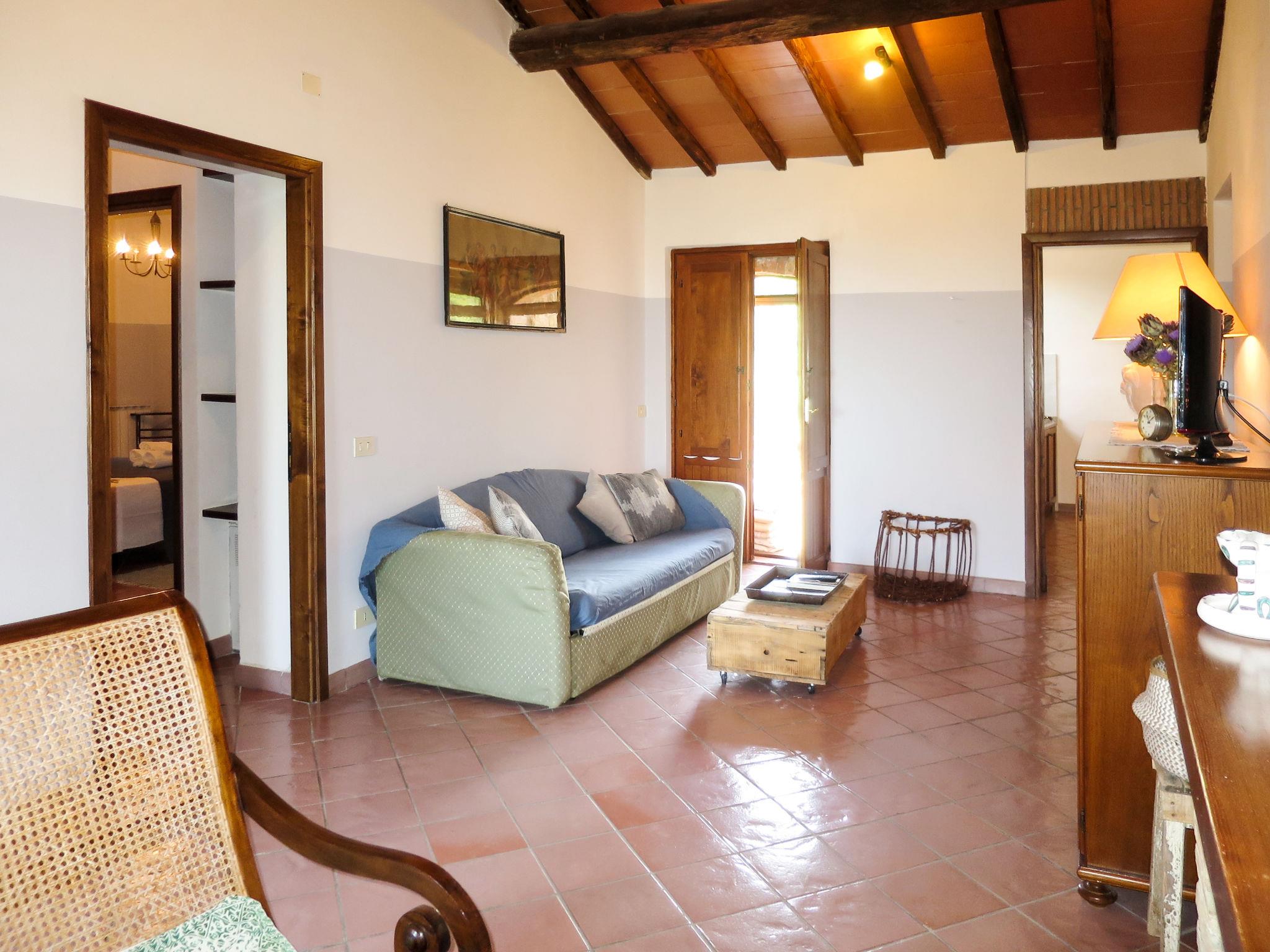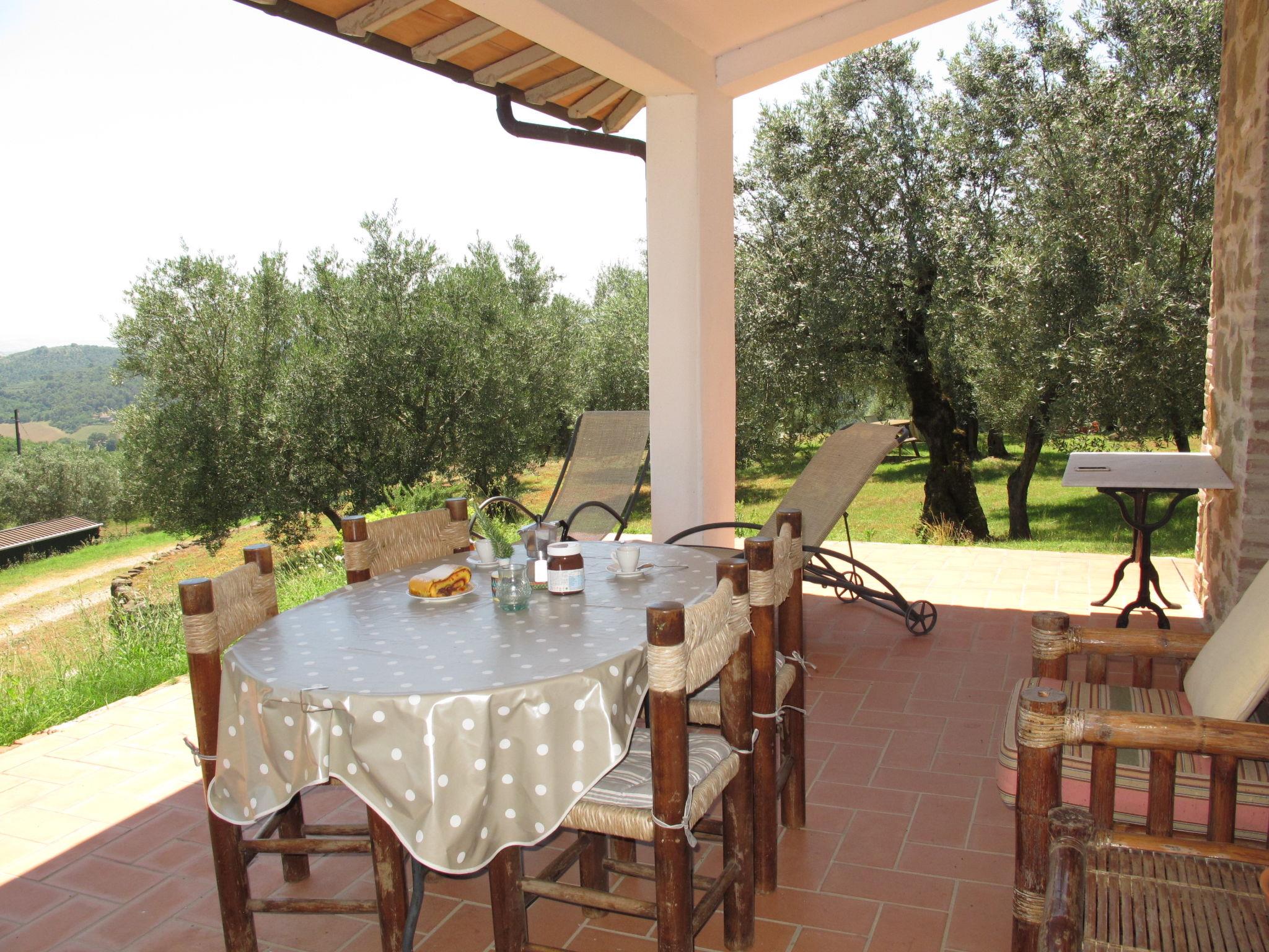 Rustic, comfortable country house "La Collina Fiorita", 400 m a.s.l., surrounded by trees and fields. 12 km from the centre of Tavernelle di Panicale, 18 km from the centre of Perugia, on top of a hill, 32 km from the lake, in the countryside. Private: property 5 ha, garden 2 ha (fenced), meadow, swimming pool (10 x 5 m, seasonal availability: 16.May. - 26.Sep.). Table tennis, patio, garden furniture, barbecue. In the house: WiFi, billiard table, table football, washing machine (for shared use, extra). Bread roll service. Motor access (100 m via unmade road). Parking on the premises. Shop 4 km, bus stop 2.5 km, railway station "Chiusi" 33 km, grass beach "Castiglione del Lago" 32 km, thermal baths "Chianciano" 45 km, bathing lake "Trasimeno" 17 km. Nearby attractions: Città Della Pieve 25 km, Todi 33 km, Cetona 40 km, San Casciano Dei Bagni 44 km, Assisi 45 km, Cortona 47 km. Please note: car recommended. The owner does not accept any youth groups. The owner lives on the same property.