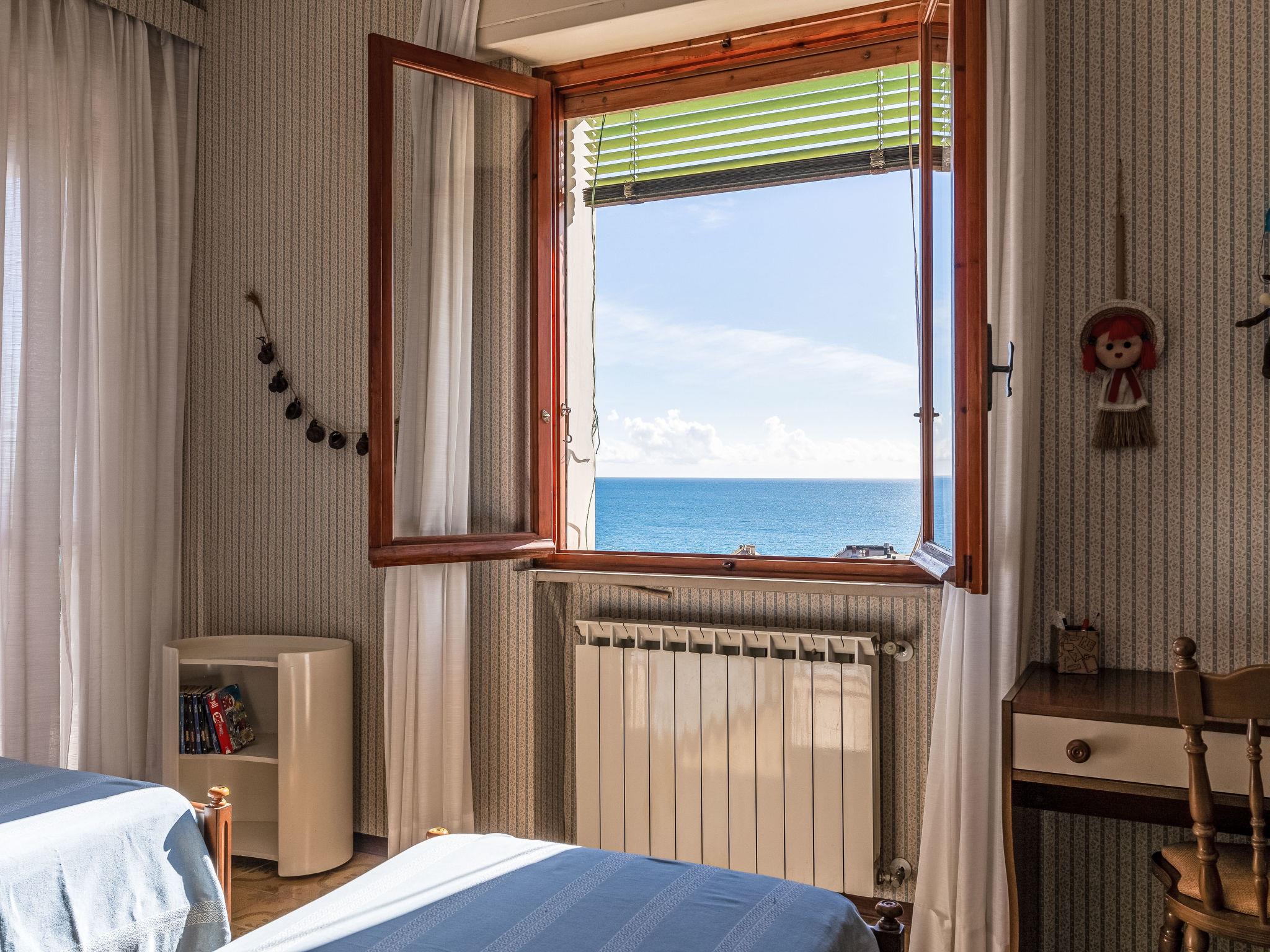 "Garden an Seaview", 3-room apartment 100 m2 on 2nd floor. Practical furnishings: living/dining room with 1 double sofabed (160 cm, length 200 cm), air conditioning. Exit to the balcony. 1 double bedroom with air conditioning. Exit to the balcony. 1 room with 2 beds (80 cm, length 190 cm), air conditioning. Exit to the balcony. Kitchen-/living room (oven, dishwasher, 4 gas rings, toaster, kettle, microwave, electric coffee machine). Exit to the balcony. Bath/shower/bidet/WC, double hand-basin. Gas heating. Heating available only from 15.11. to 31.03. Balcony 20 m2, large terrace 50 m2, garden. Terrace furniture. Beautiful panoramic view of the sea and the countryside. Facilities: washing machine, children's high chair, baby cot for up to 2 year olds, hair dryer. Internet (WiFi, free). Please note: maximum 1 pet/ dog allowed. Private entrance. Private Roof Terrace. IT009033C23UTEBOXA