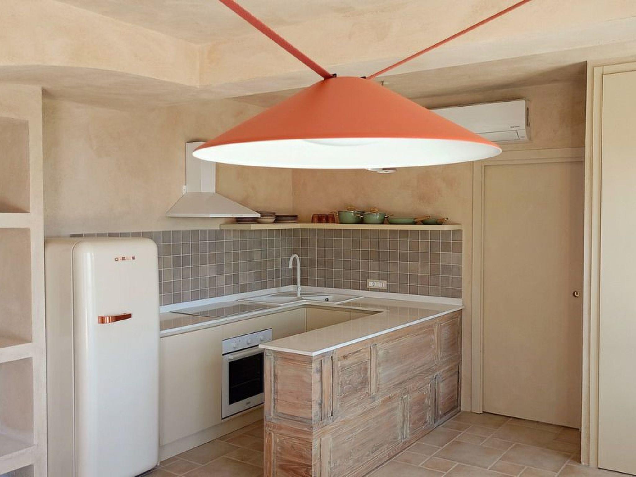 The interior of Villa Brezza boasts a splendid dining room adorned with a refined design table, perfectly complementing the fully equipped kitchen that includes 4 stoves, an oven, dishwasher, fridge, kettle, and toaster. Comfort is paramount in the spacious double bedded room with air conditioning, designed for restful nights. The villa also features a shower room with double services and hydromassage, ensuring a relaxing and rejuvenating stay. Every detail inside Villa Brezza speaks of high standards and meticulous care in crafting a commodious and appealing living space.