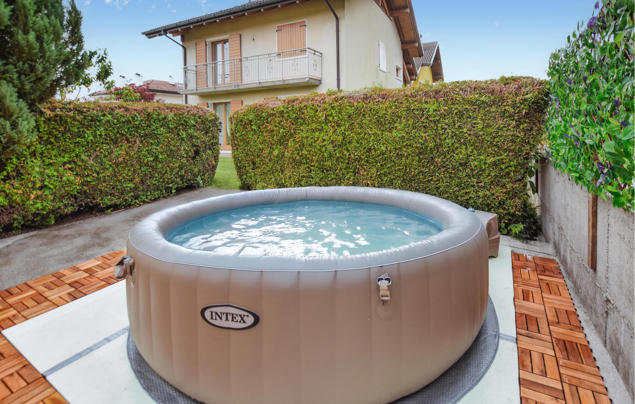Tilbring en afslappende ferie i denne rummelige ferielejlighed med spabad og panoramaudsigt over bjergene.