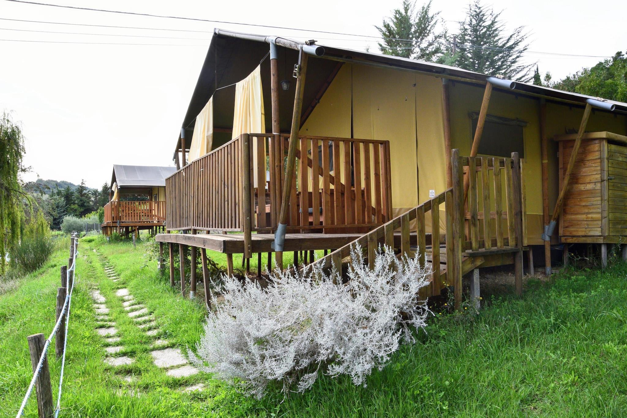 Hvordan kan man nyde naturen uden at give afkald på komfort? Den bedste måde er at prøve et Glamping ophold. Teltet kan rumme op til 5 personer, med 2 soveværelser og badeværelse med hydromassagebruser. Klimaanlægget holder dig kølig selv på de varmeste dage. Teltet har en stor veranda med bord, stole og sofa til at nyde lækre middage i det fri. Stuehuset tilbyder gæsterne en stor swimmingpool med liggestole. Der er også et udendørs fitnesscenter og et legeområde for børn. De lange sandstrande ved Adriaterhavet kan nås i bil på mindre end 10 minutter, mens der i det omkringliggende område er snesevis af små historiske landsbyer at besøge og opdage.