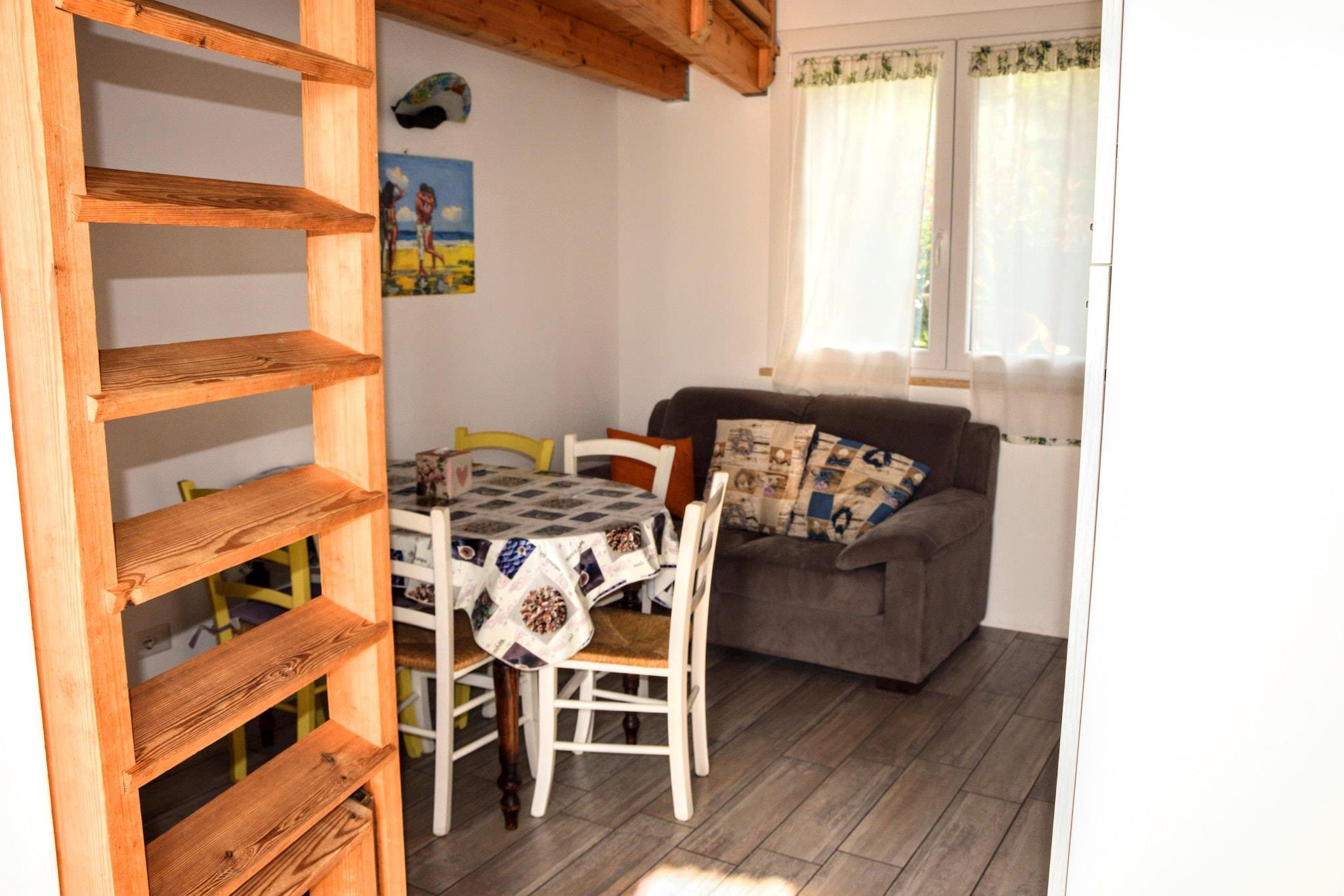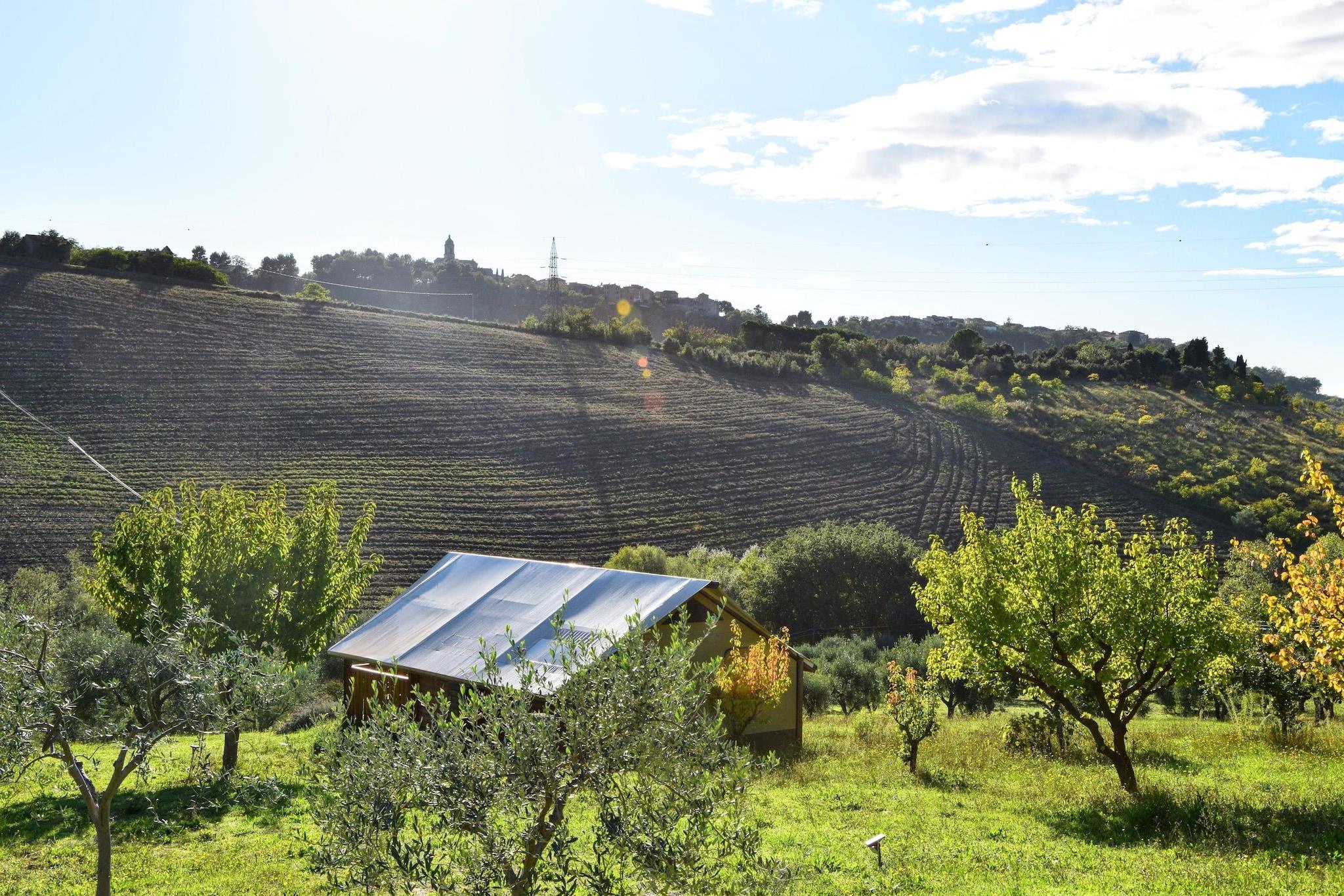 Et perfekt sted for en ferie mellem hav, bakker, natur, midt i de bølgende bakker i Marche blandt frugtplantager og olivenlunde. Lejligheden er beliggende i stueetagen, med en selvstændig indgang og kan rumme op til 5 personer, med 1 soveværelse med dobbeltseng og en mezzanin med enkeltsenge Klimaanlægget vil holde dig kølig selv på de varmeste dage. Stuehuset tilbyder gæsterne en stor swimmingpool med liggestole. Der er også et udendørs fitnesscenter og et legeområde for børn. De lange sandstrande ved Adriaterhavet kan nås i bil på mindre end 10 minutter, mens der i det omkringliggende område er snesevis af små historiske landsbyer at besøge og opdage.