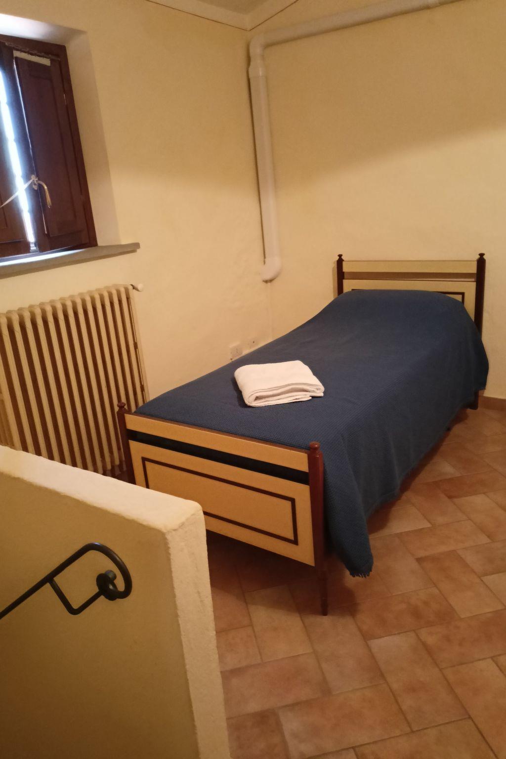 On the ground floor you find: Entrance from the garden shared with the owner, a large kitchen/living room with fireplace, equipped with all comforts, and the bathroom with shower, WC, bidet and sink. An internal staircase leads to the first floor where you will find: 1 bedroom with a double bed, 1 bedroom with 2 single beds, a small living room with a sofa bed for 1 child. All bedrooms are air-conditioned.