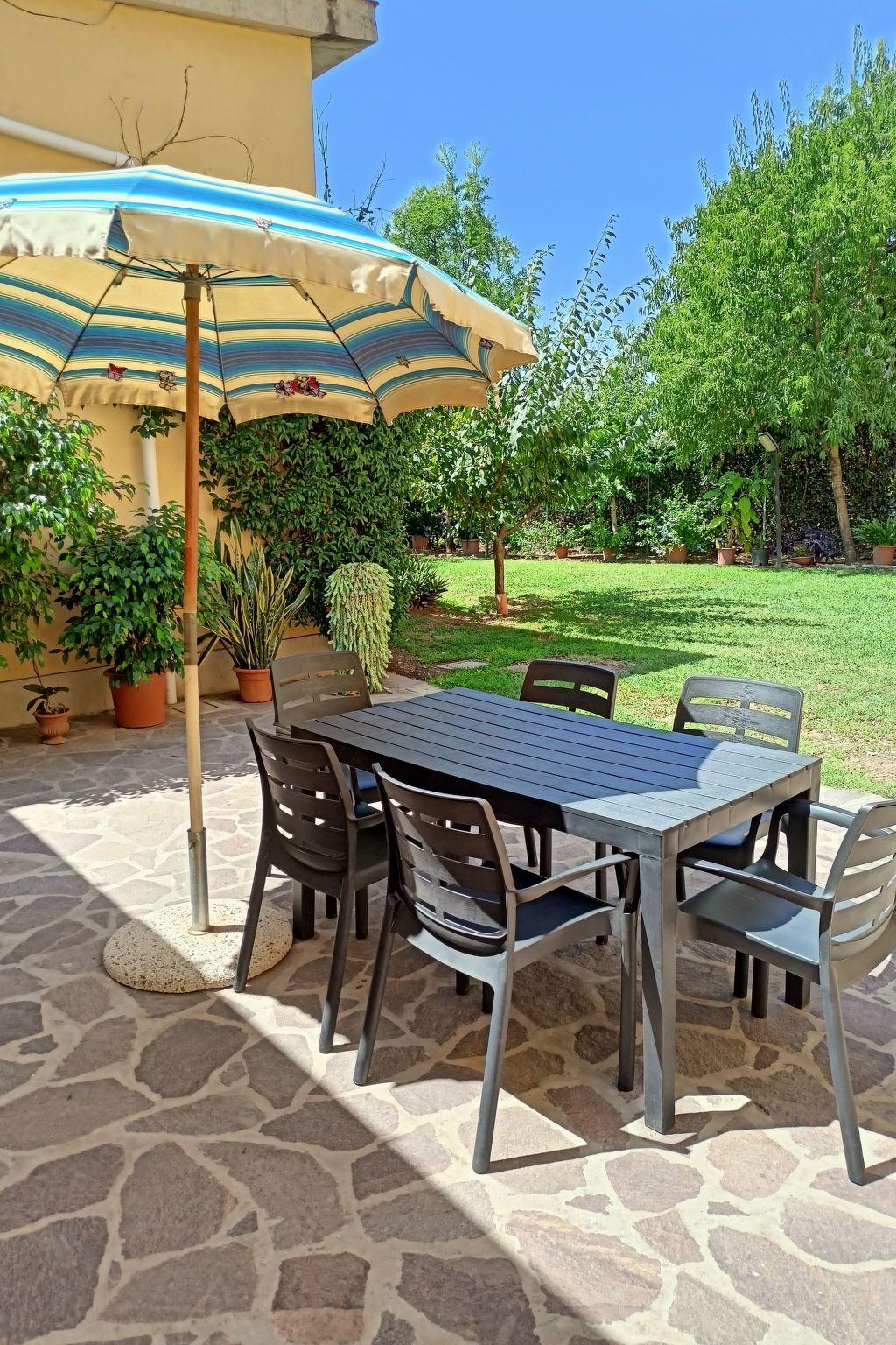 Private courtyard with sunshade, table and chairs, also shared garden with the owner. Reserved parking space outside.