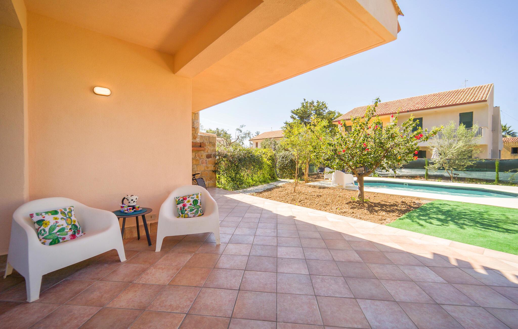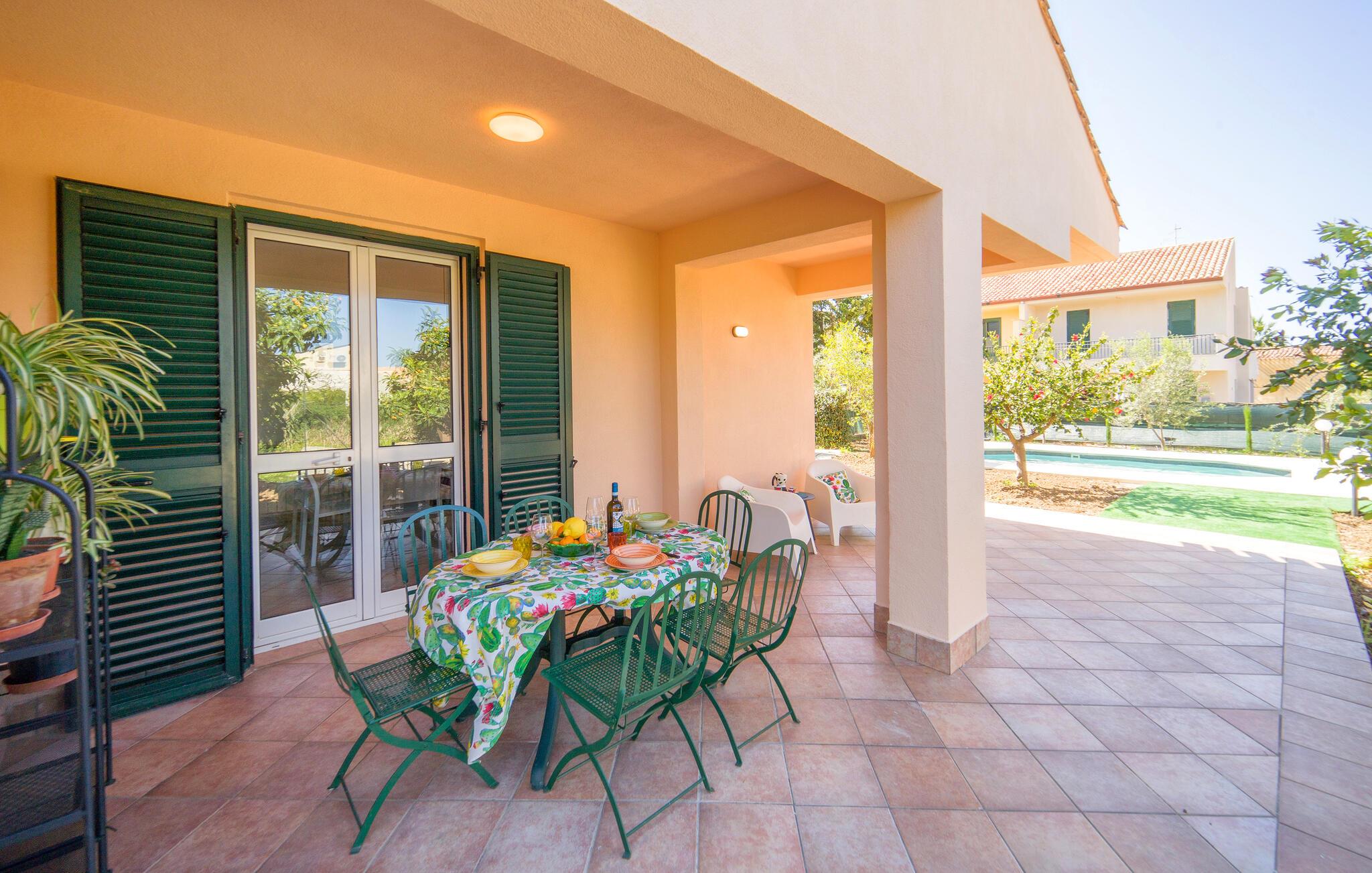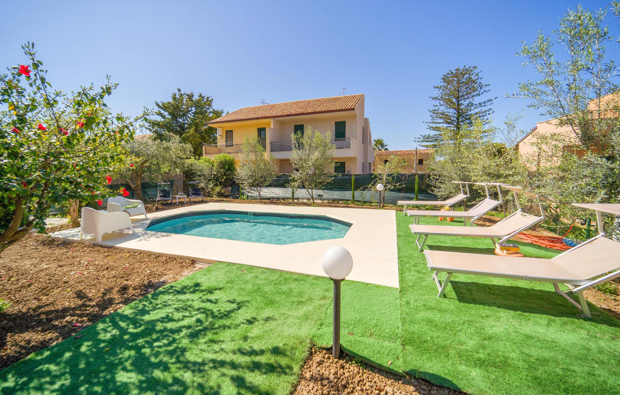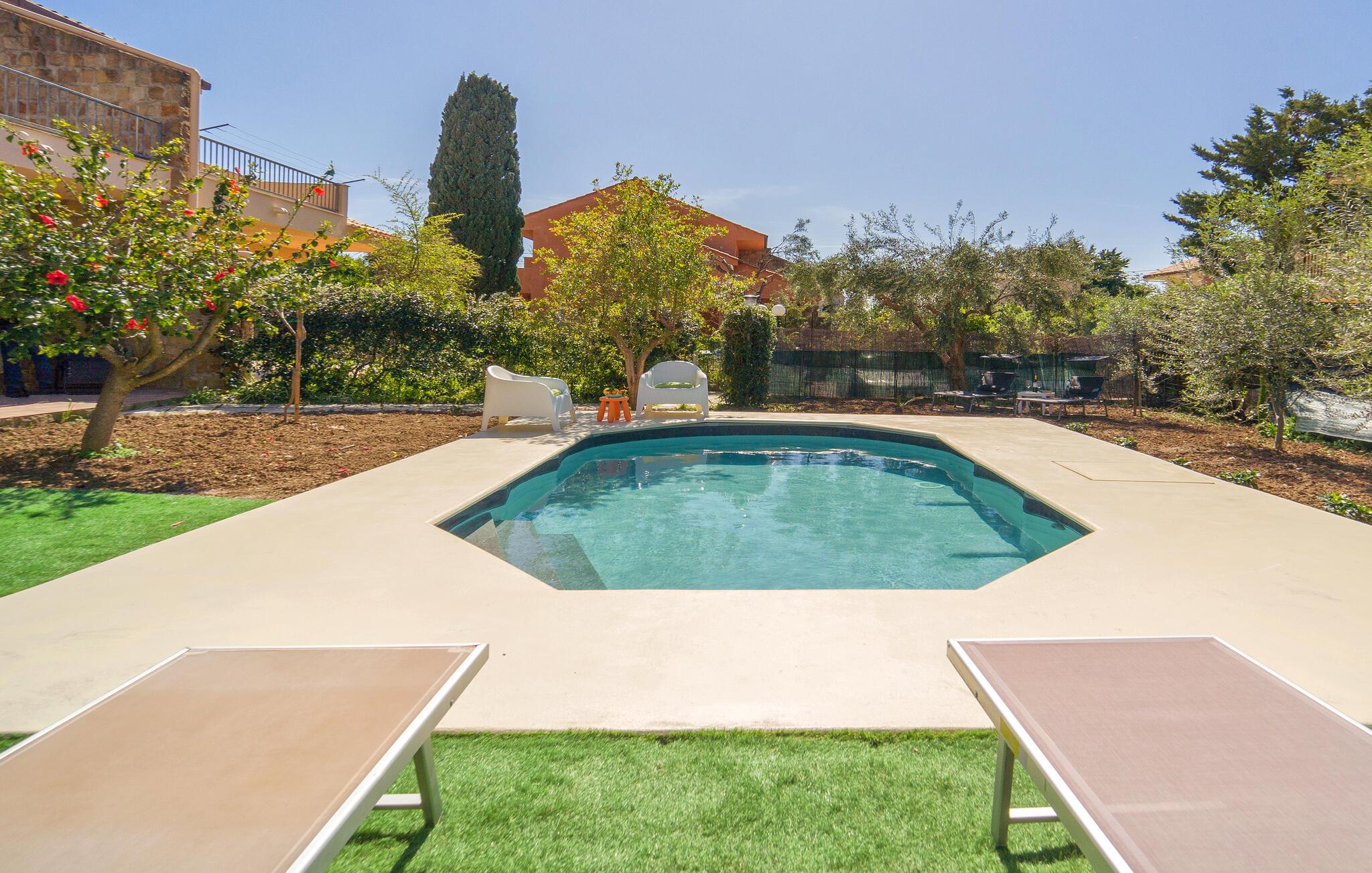 Gå den lille tur ned til stranden fra dette herlige hus, som også har pool.