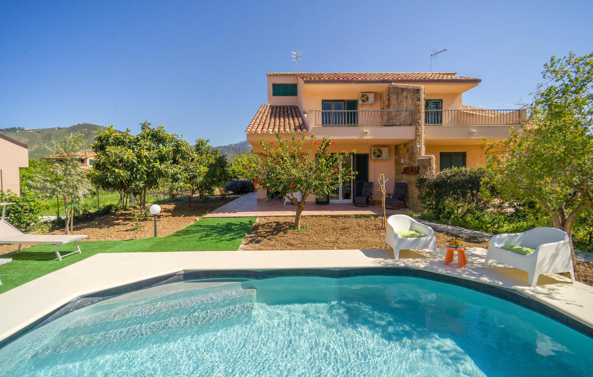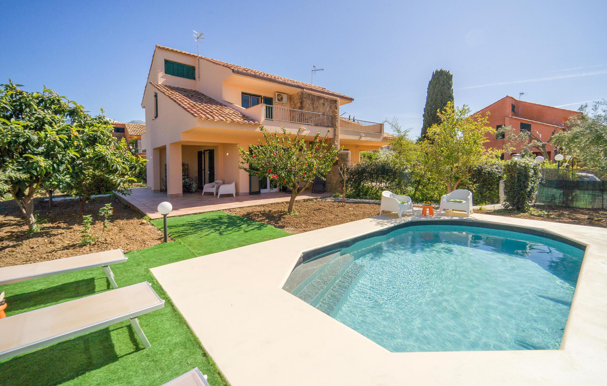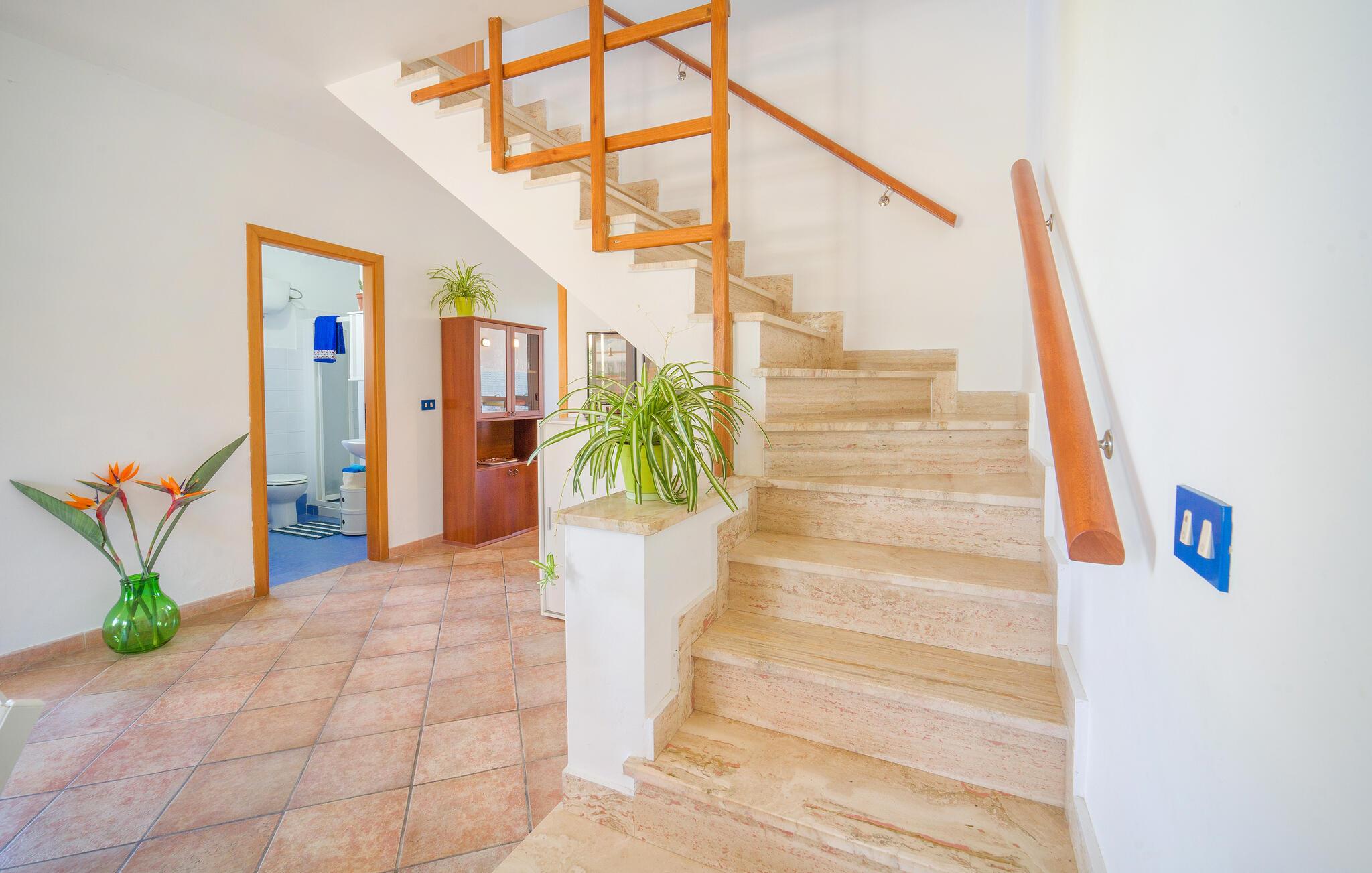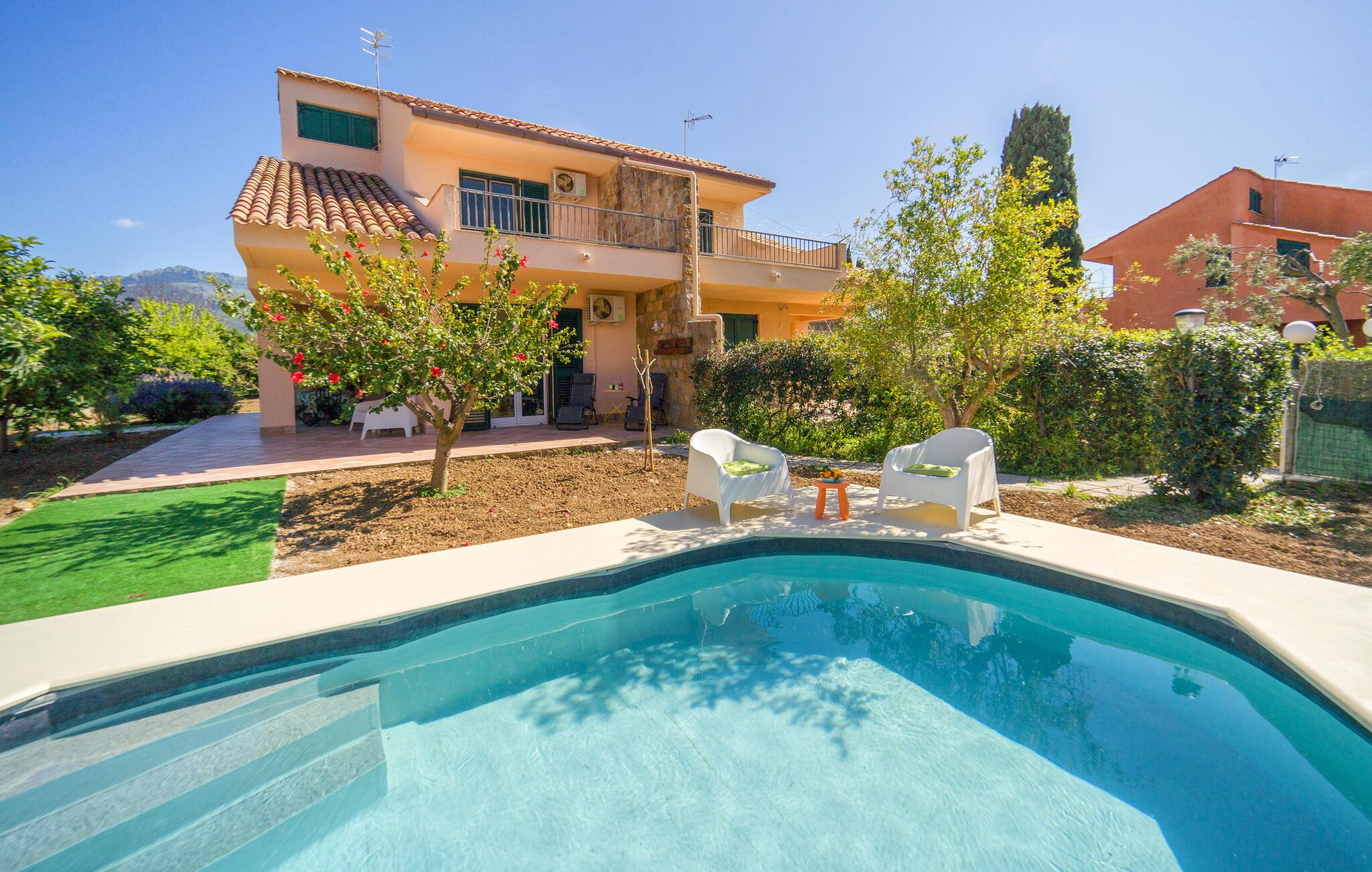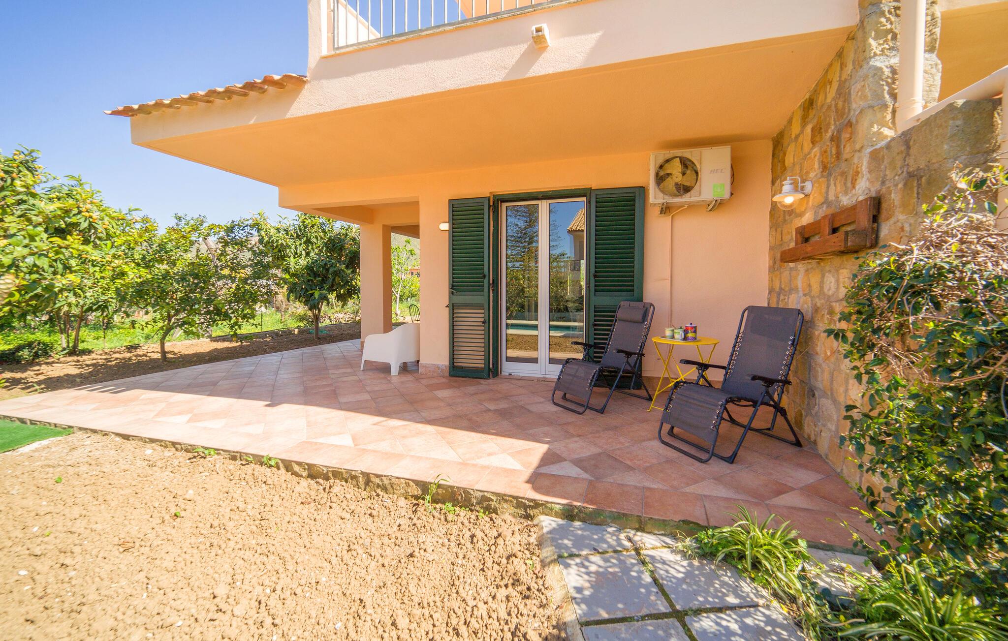 Gå den lille tur ned til stranden fra dette herlige hus, som også har pool.