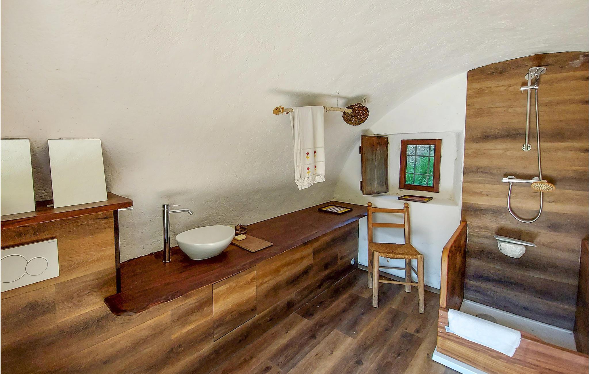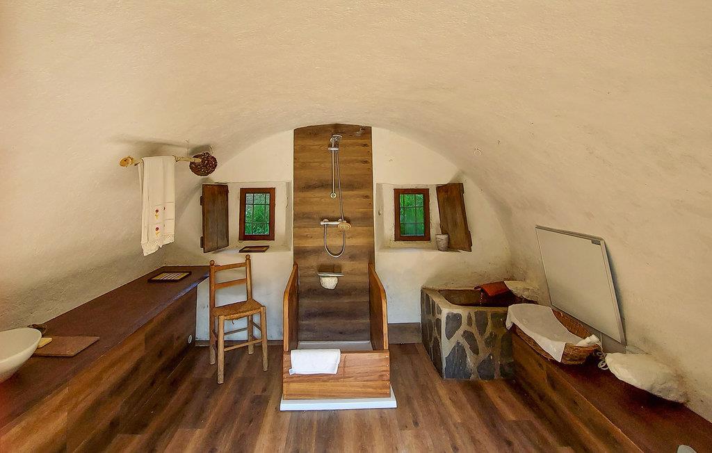 Dit feriehus er inspireret af traditionel lokal arkitektur og går et skridt videre ved at bruge lokale materialer, der smelter problemfrit sammen med de naturlige omgivelser. Hvis I har en svaghed for historiske bygninger, vil dette hus med sine lave trælofter og rustikke stenvægge betage jer fra det øjeblik, I træder ind. Badeværelset, der oprindeligt blev brugt til opbevaring af ost og smør, har en naturlig kilde. Vandet er rent og fremragende at drikke. De fleste møbler og tekstiler er antikke og lavet af naturlige materialer. Selv den originale nøgle og lås er bevaret.